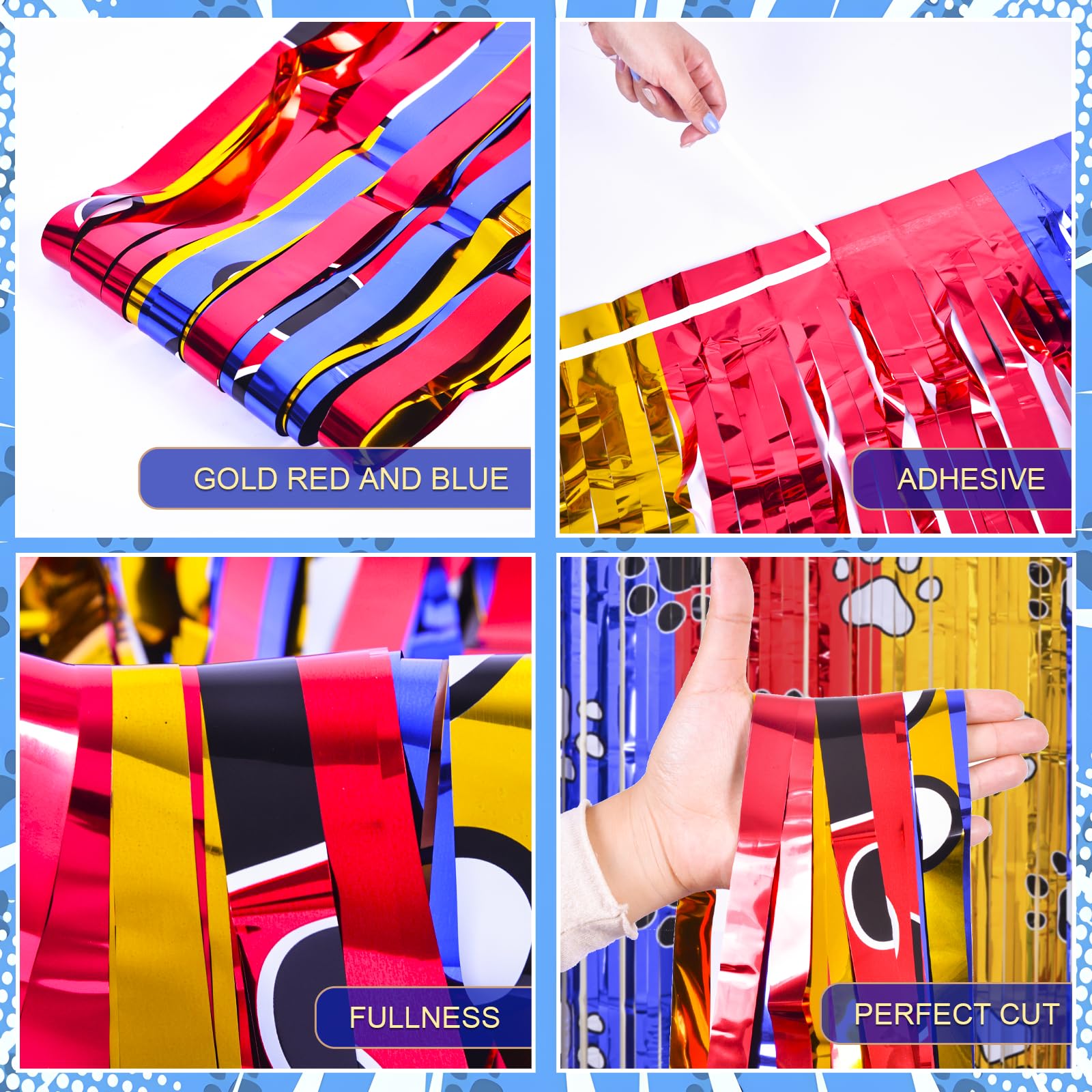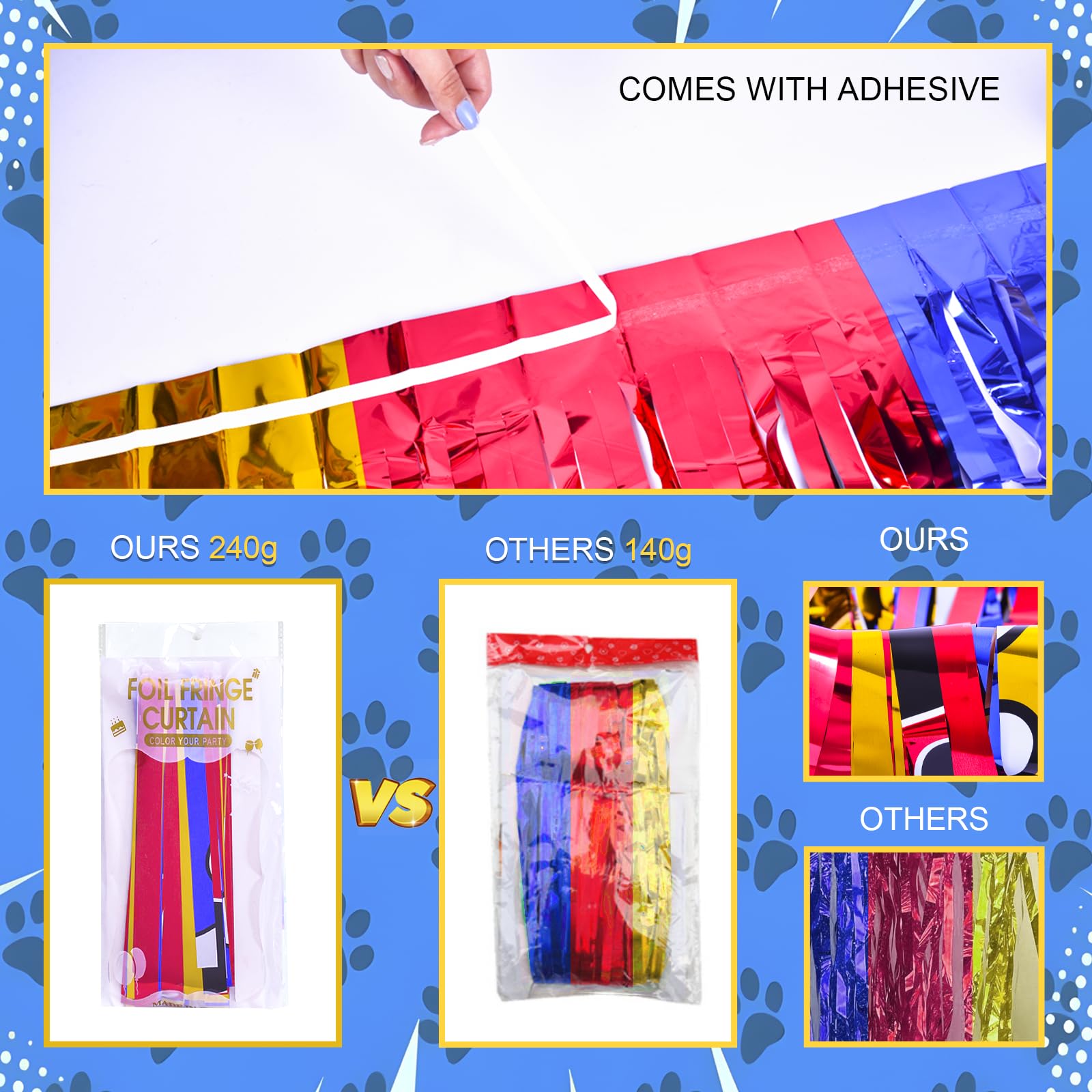 🐾 【 PAW BIRTHDAY PARTY SUPPLIES 】: Our unique tinsel foil fringe curtains are the perfect photo backdrop for every kids party decoration and room decor. You will be amazed at the colorful atmosphere and view they create.