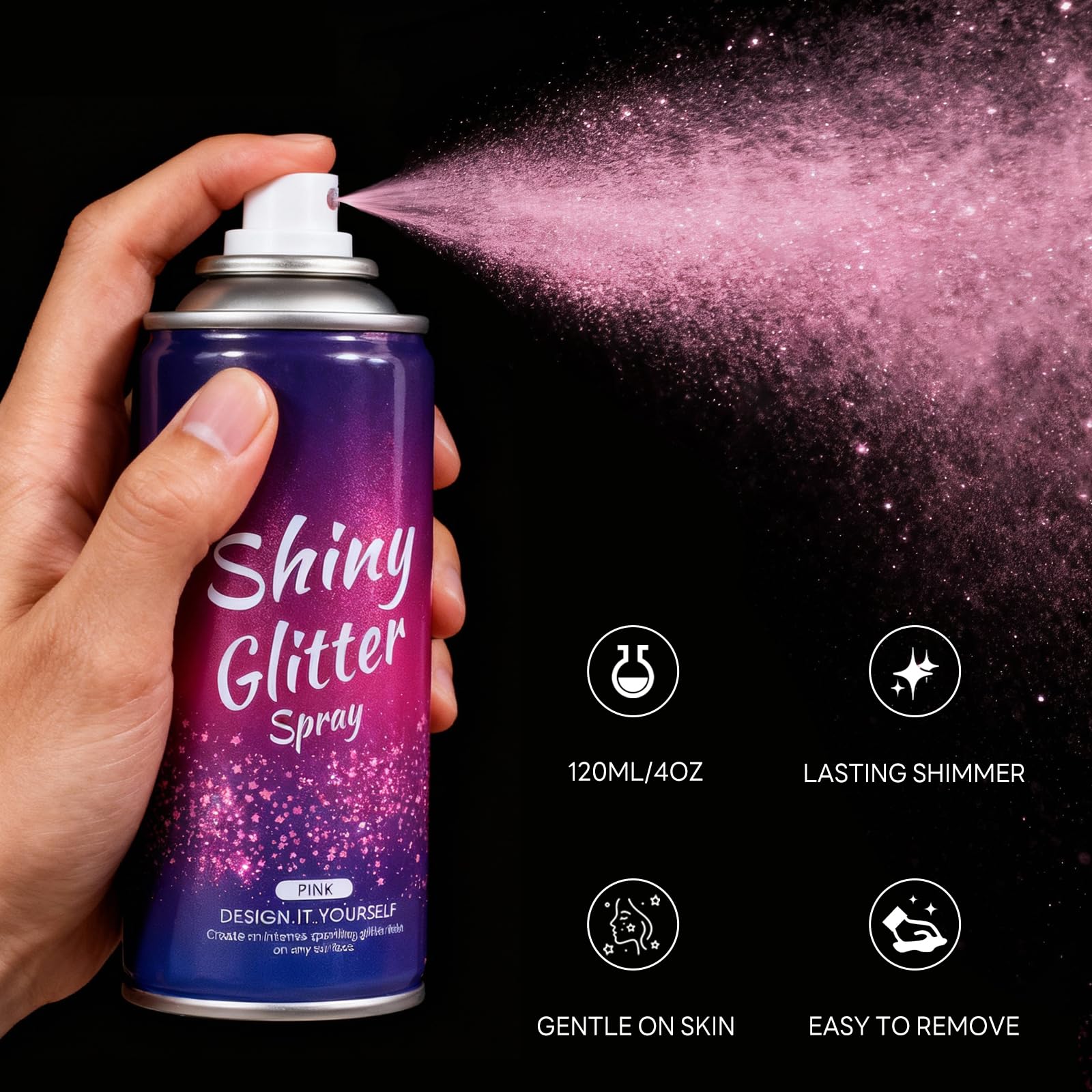 PREMIUM FORMULA : The glitter spray is made with gentle and skin-friendly glitter and a stable and compliant formula. It has no harm to skin, hair or clothes, and will not have a negative impact on the environment. It is suitable for all skin types, allowing you to shine without burden!