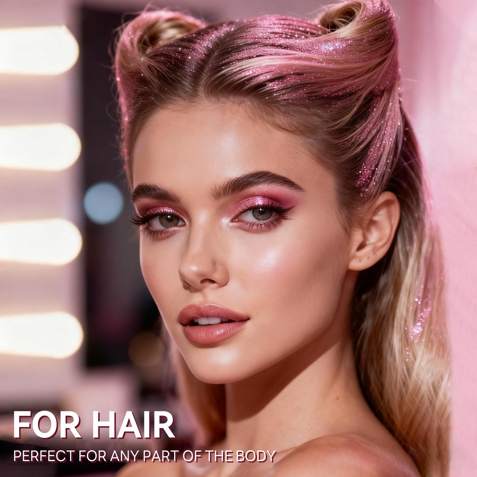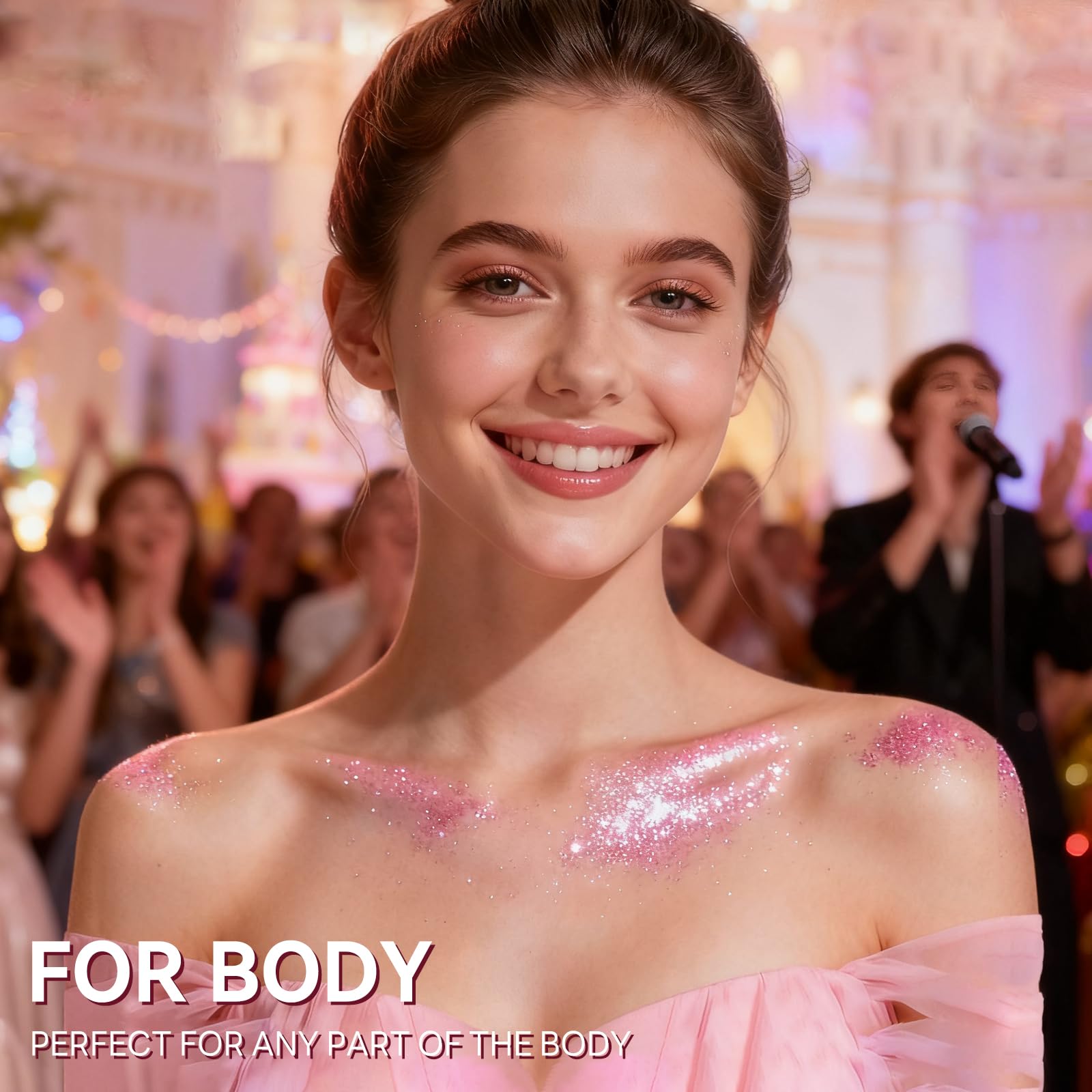 HOW TO USE : Shake well before for a few seconds before use, then keep a distance of 30 cm to spray on your hair, body or clothing. The long-lasting, quick-drying formula allows these glitter to adhere instantly to skin, hair, or clothing, creating a captivating, sparkling effect.