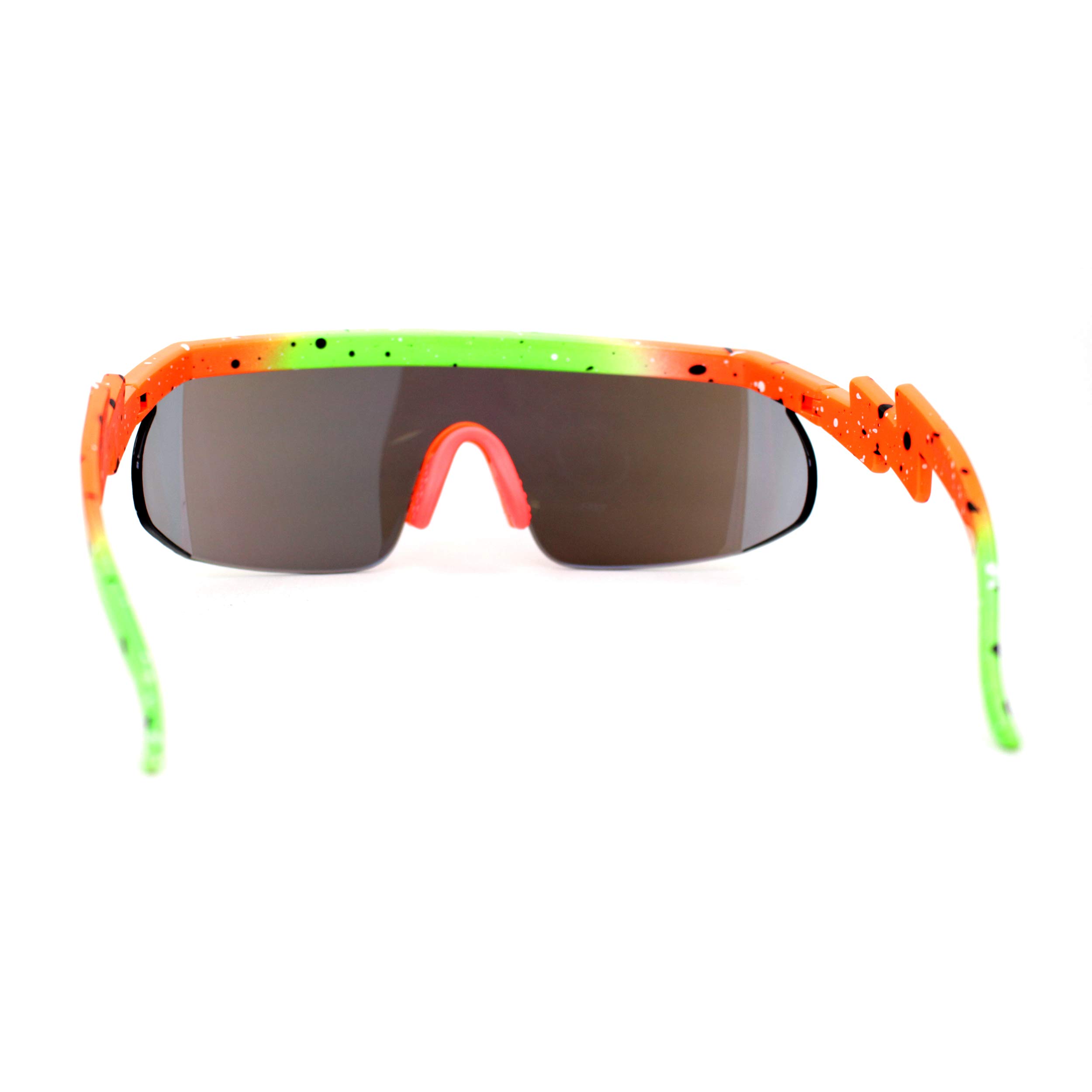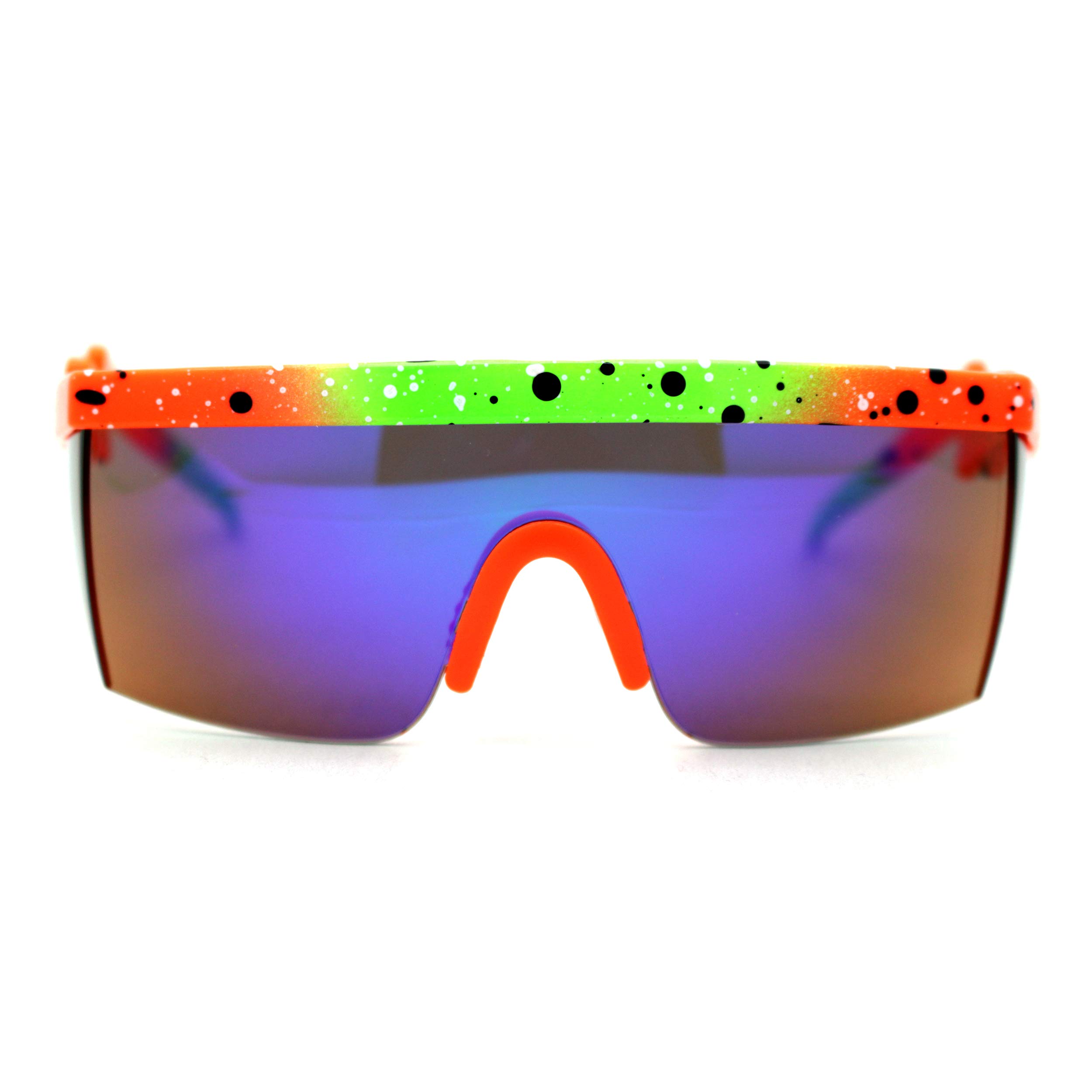 Description Unisex funk plastic safety goggle style rectangular side visor exposed lens half rim large sunglasses. (ss7379rv)