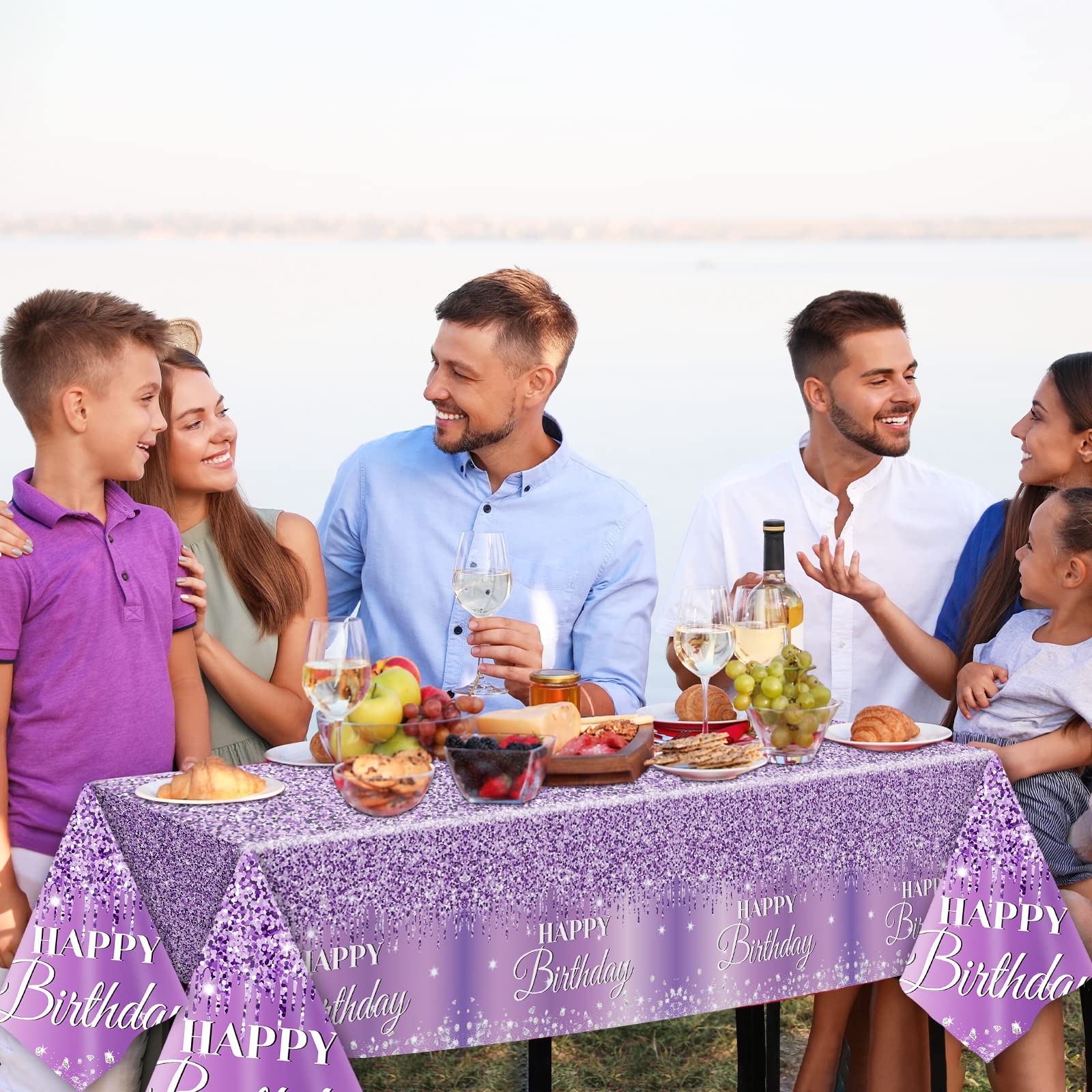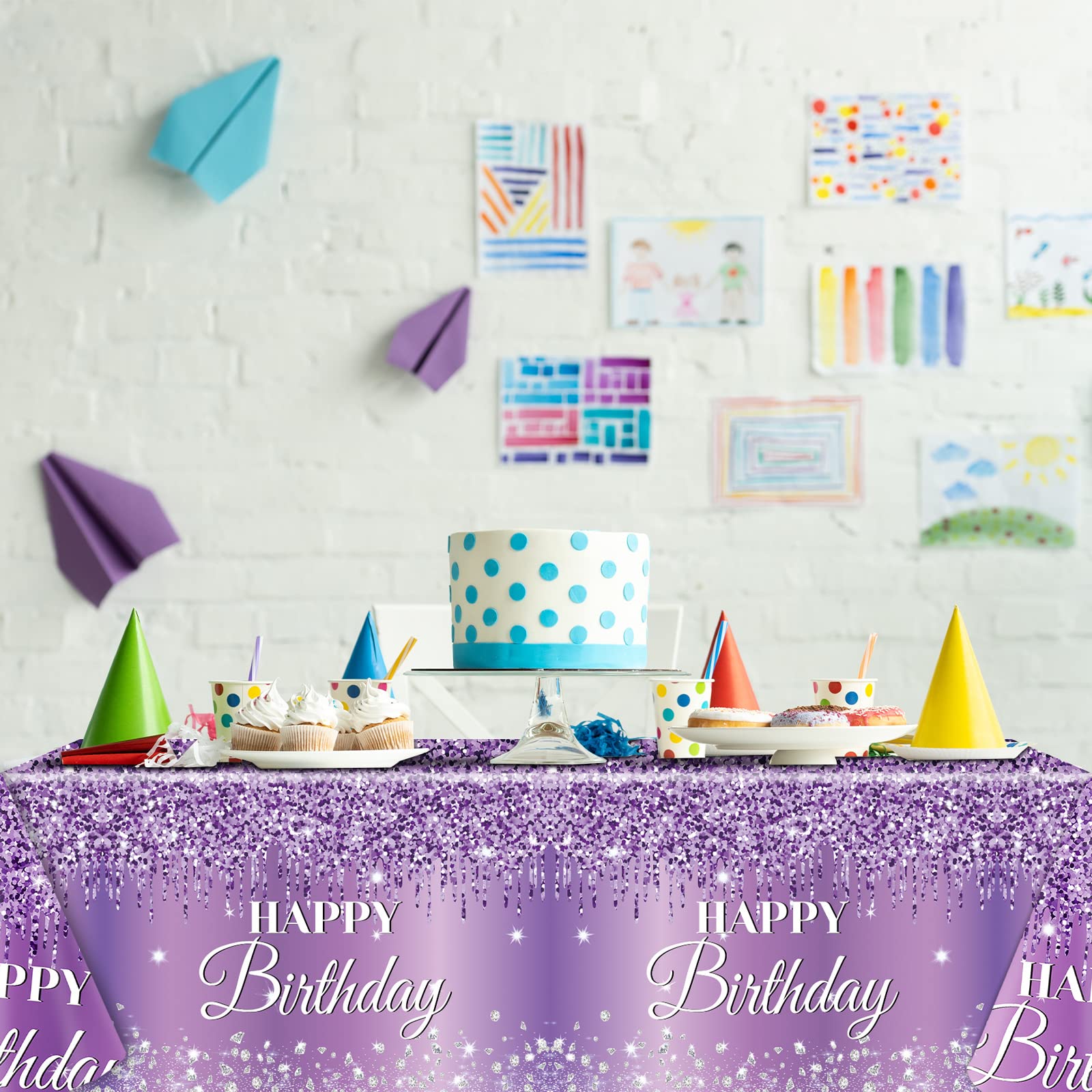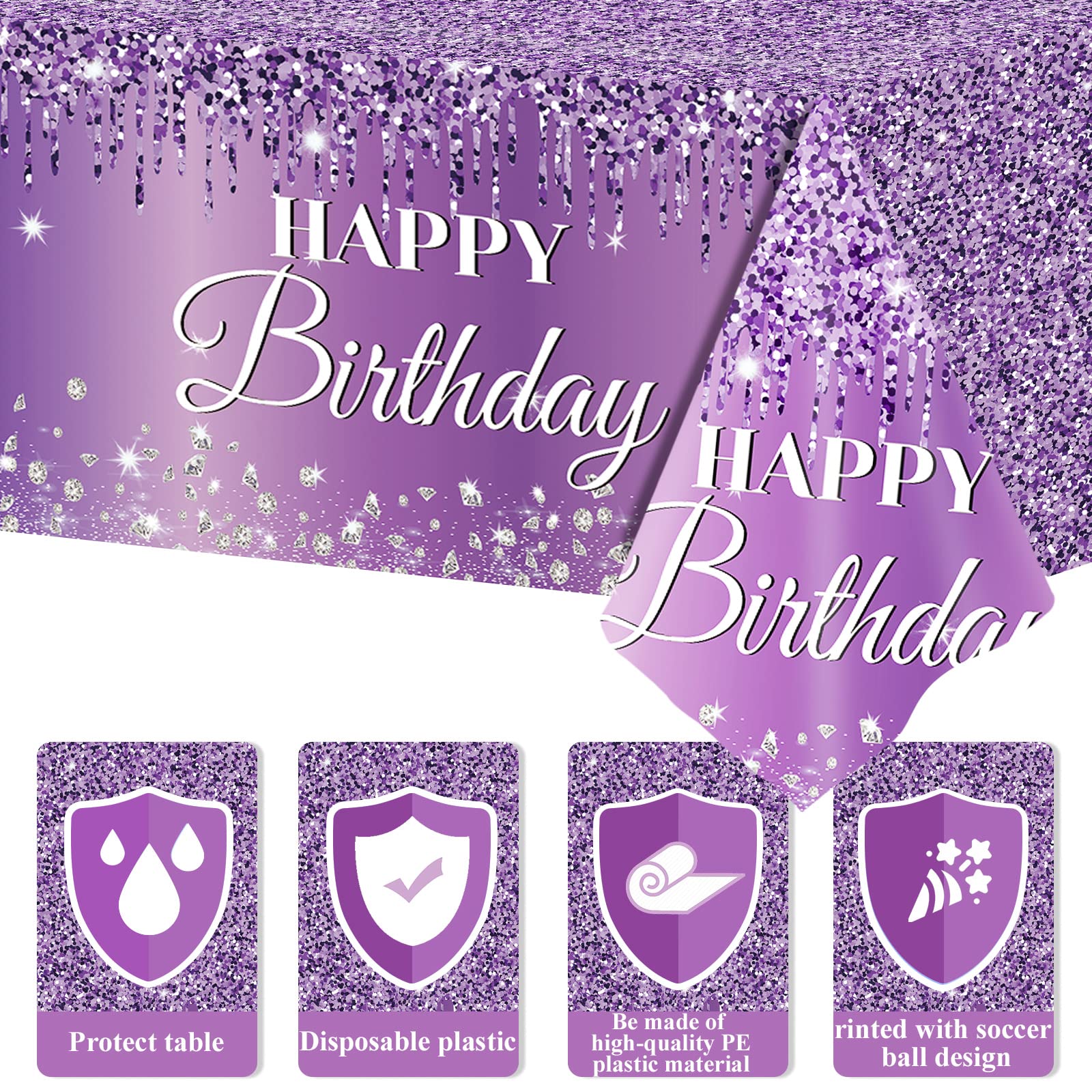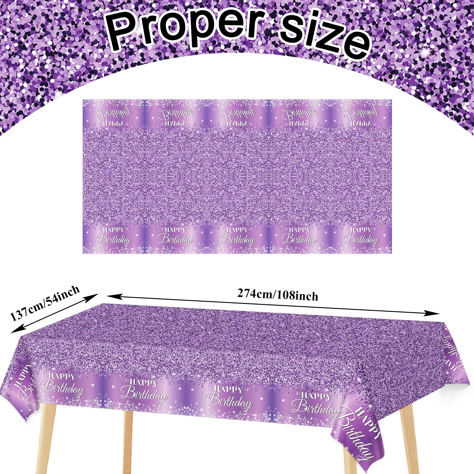 Perfect Size: The Purple Silver birthday party tablecloth measures 137 x 274 cm/54 x 108 inches, large enough to cover any standard 8-foot rectangular table, suitable for birthday party table decoration. Birthday party tablecloths can be easily folded or cut into small tables; two or three can be put together to allow more people to come to the party.