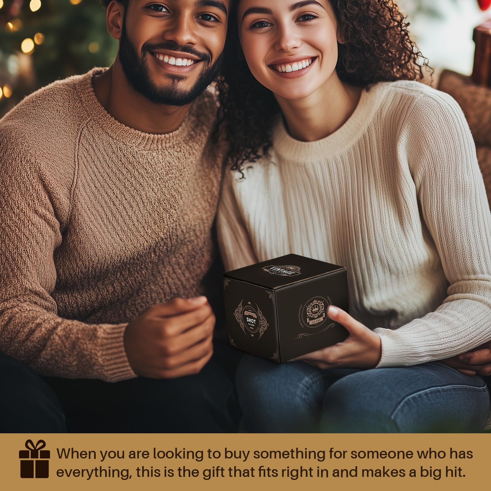 Full Package Gift Set - The gift set includes 1 handmade wooden box, 1 thick base 1.7oz shot glass and 1 small gift card. All part of the gift set will be delivered in a delicate designed gift package.