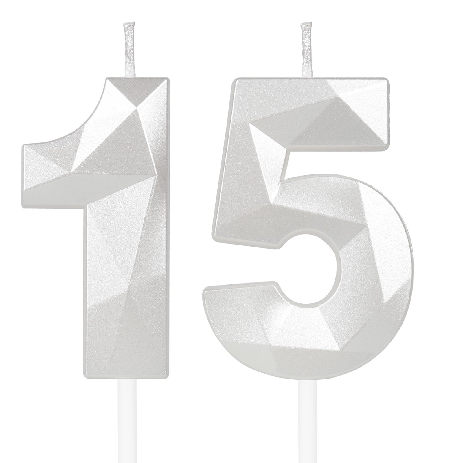 Number 15 Candles,15th Birthday Candles,White Happy Birthday Candle for Cake,3D Design Cake Topper Decorations for Girl Women Pet Birthday Party Wedding Anniversary Celebration Supplies Features: 3D Delicate appearance: The happy birthday cake candles are meaningful for you to celebrate your birthday and nice cake topper decoration for embellishing your cake and cupcake,creating romantic atmosphere and adding a touch of elegant. Adapt to the venue: Ideal cake decoration for many occasions, such as birthdays, pet birthdays, baby showers, anniversaries, retirement parties, family reunions, weddings, Hawaiian parties, even Christmas, must-have items for party cake, bring you memorable and meaningful party. Specifications: Quantity: 2 piece Material: wax, plastic Candle length: approx. 5 cm/ 1.97 inch Total length: approx. 15.5 cm/ 4.5 inch Color: as pictures shown Package includes: 1 x White Number 1 and 5 Numeral Cake Candles Warm notices: Please allow little error on the size due to manual. Do not leave the lighted candles unattended. Please place candles out of reach of children. And please do not light candles on or near flammable materials. Please keep the candle away from the fire when not in use, when burning, adult's supervision is needed.
