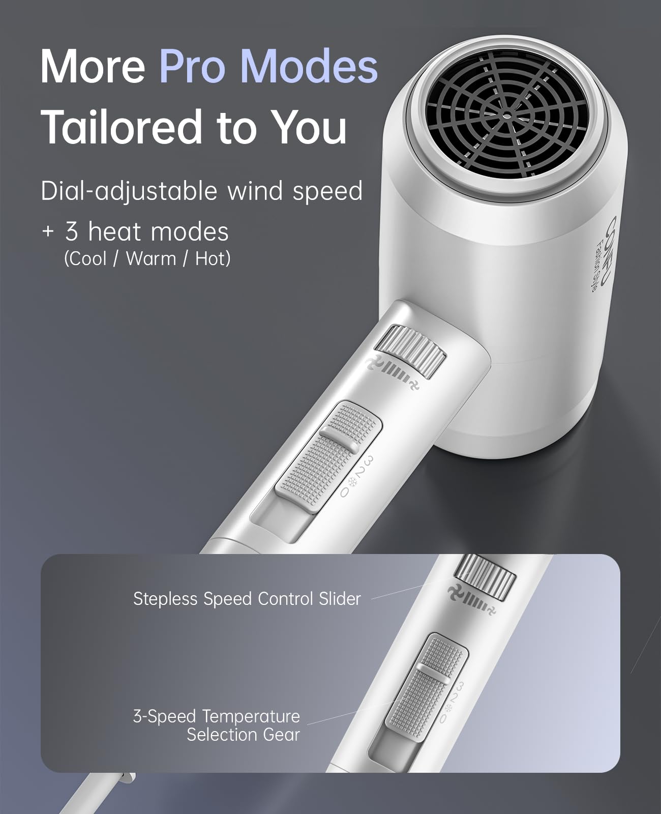 【Blow Dryer with 3 Heat Settings & Roller Type Temperature Slide Adjustment】 Cool /Warm/Hot, and there is a Roller Type Temperature Slide adjustment button, which can adjust the wind speed arbitrarily, with infinite wind speed setting, easy to control the temperature and wind speed to make your favorite hairstyle at home.