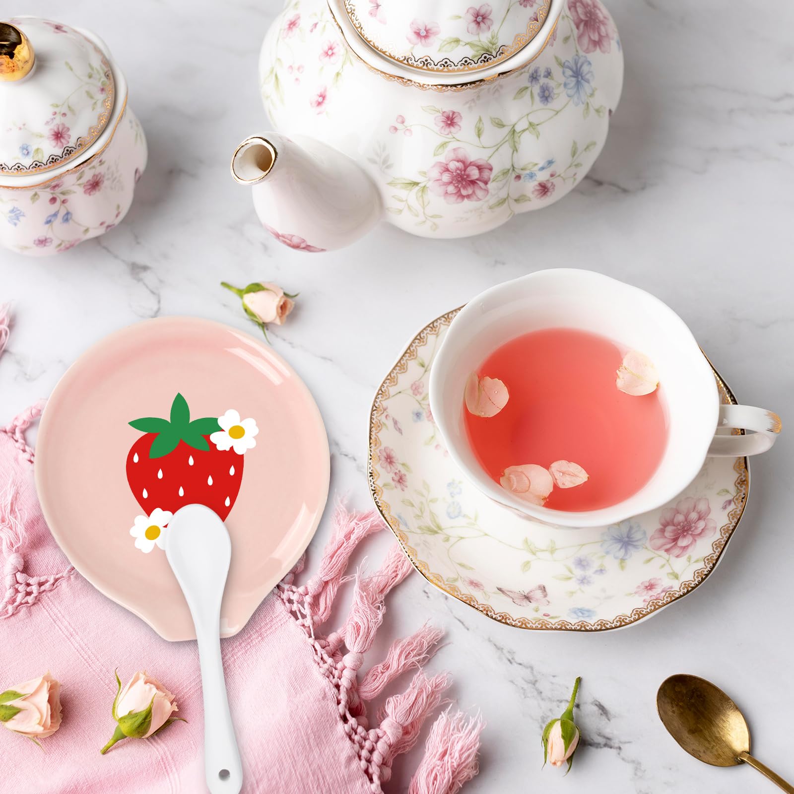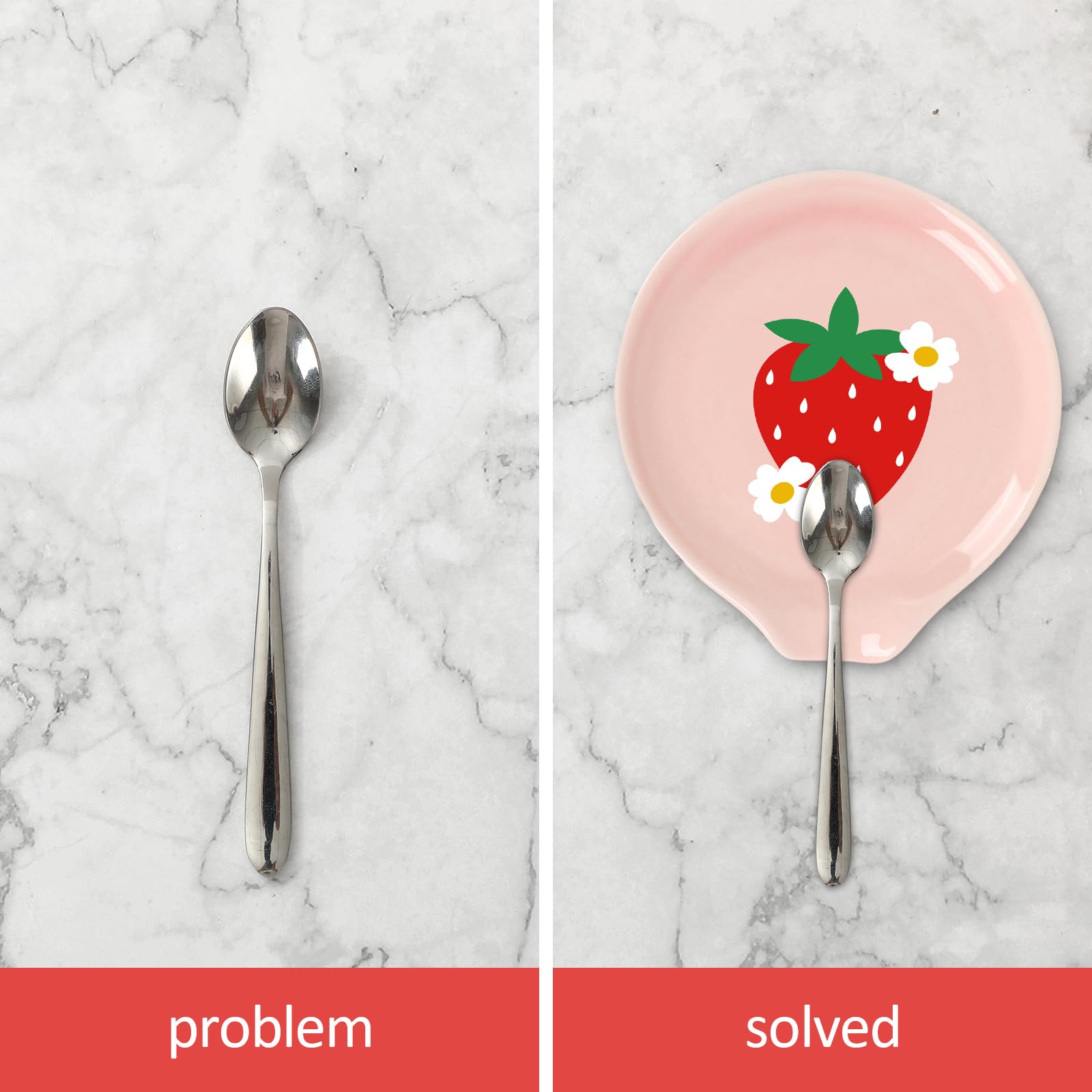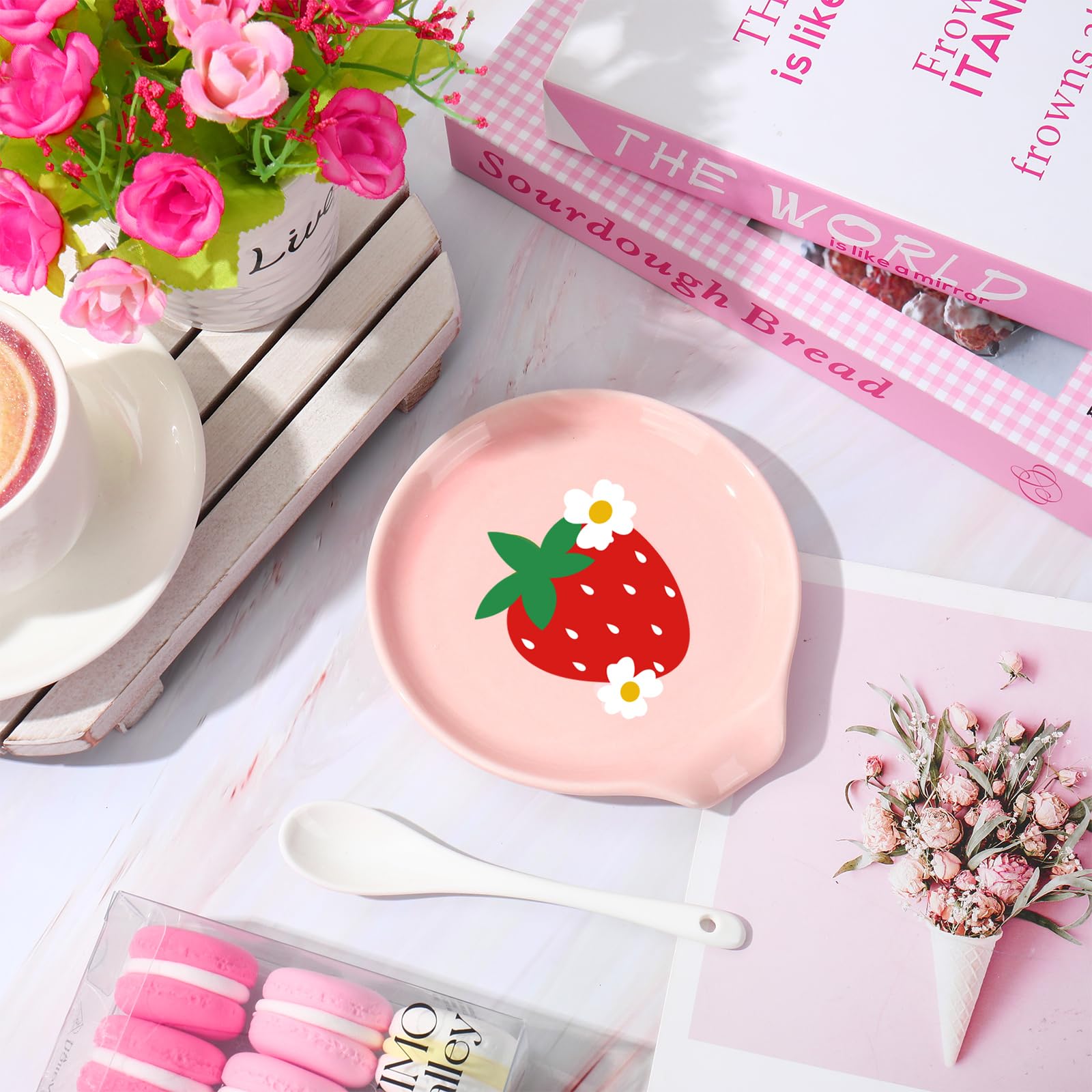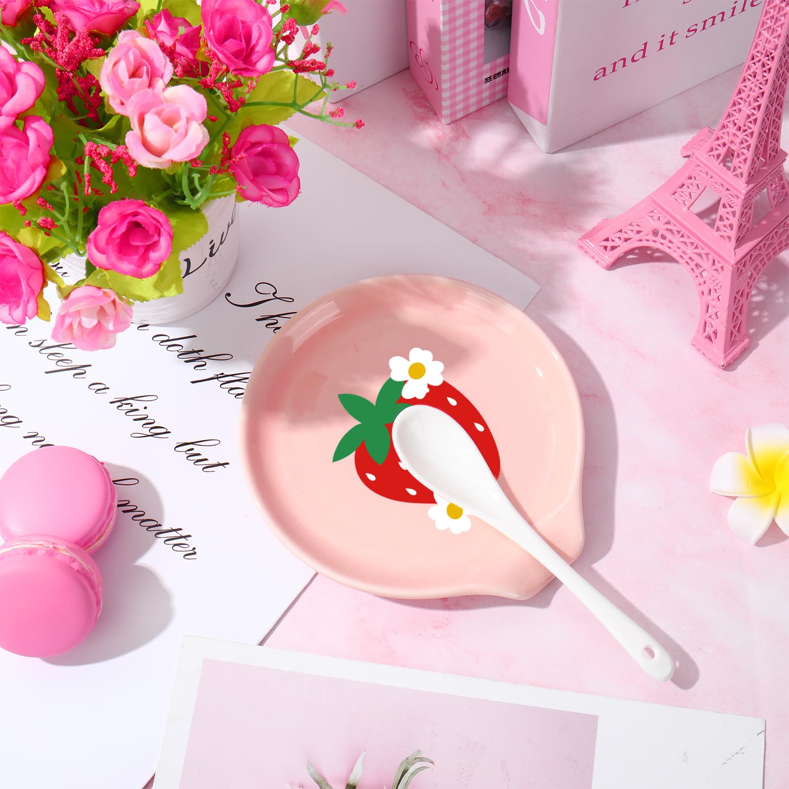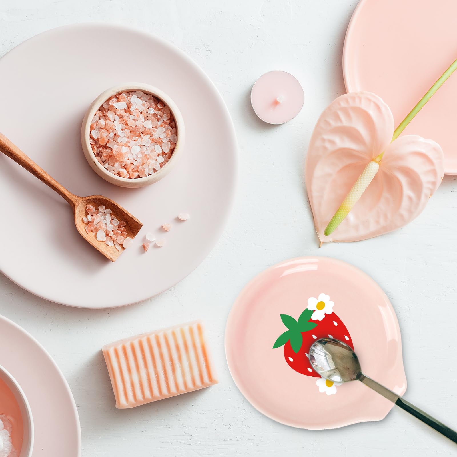 STRAWBERRY DESIGN: These spoon rest is mainly in pink and red colors, printed with strawberry and flower patterns, sweet and adorable, great decoration accessory for you