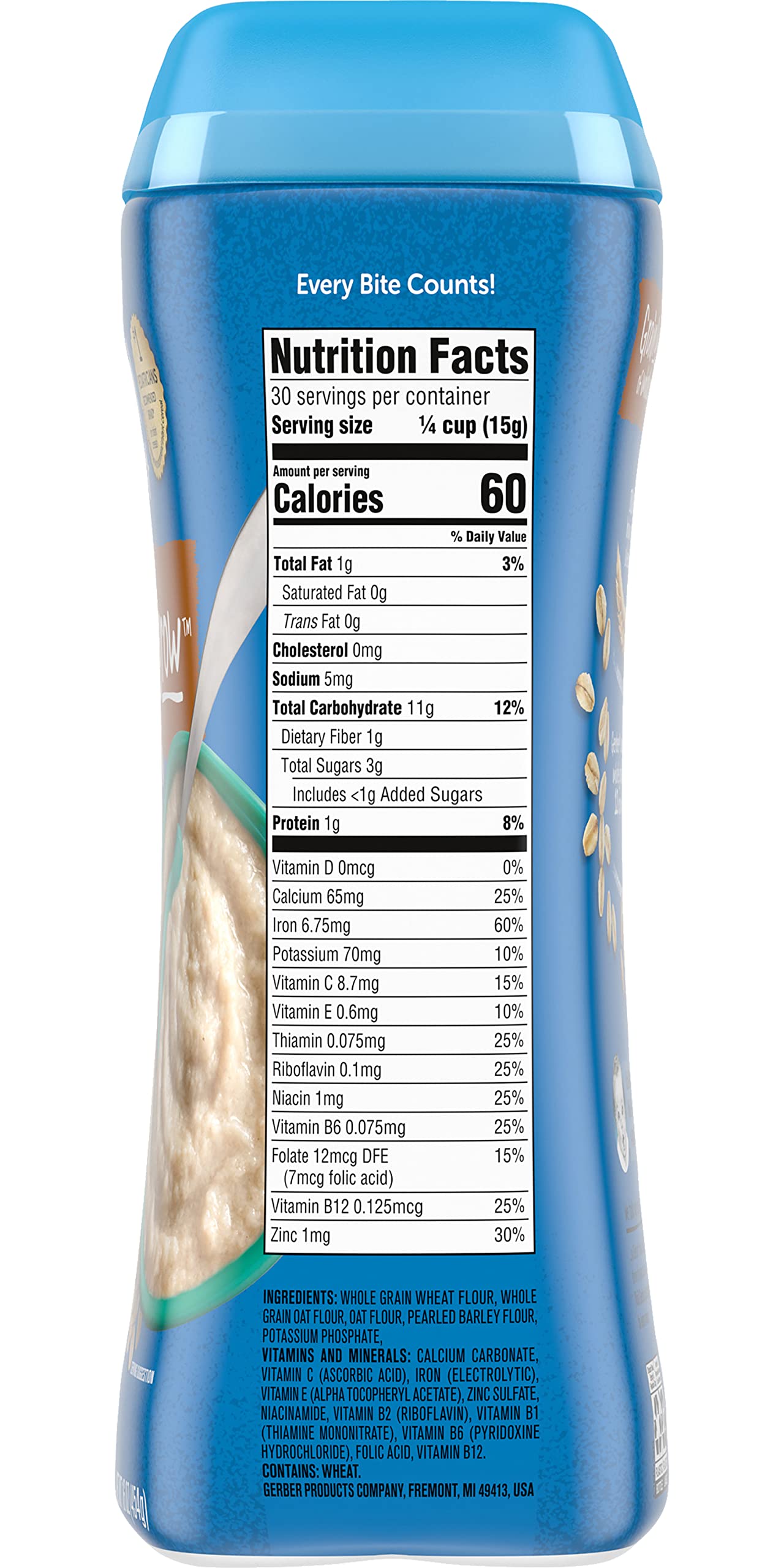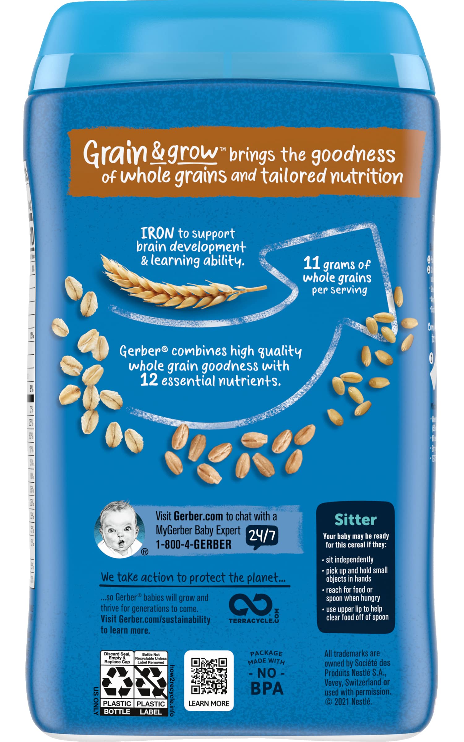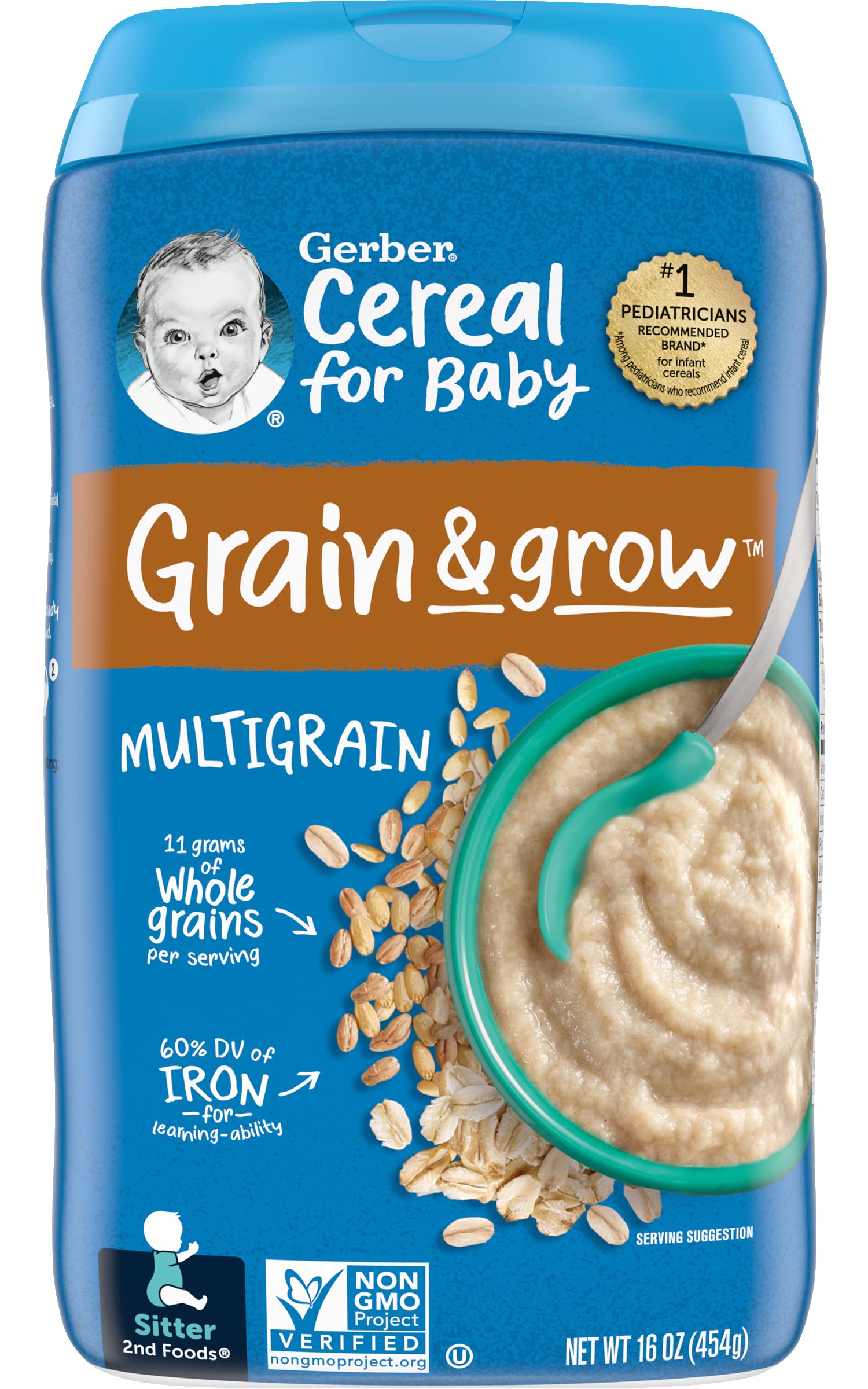Gerber 2nd Foods Cereal for Baby Grain & Grow Cereal, Multigrain, Made with Whole Grains & Essential Nutrients, Non-GMO Baby Cereal, 16-Ounce Canister (Pack of 2)