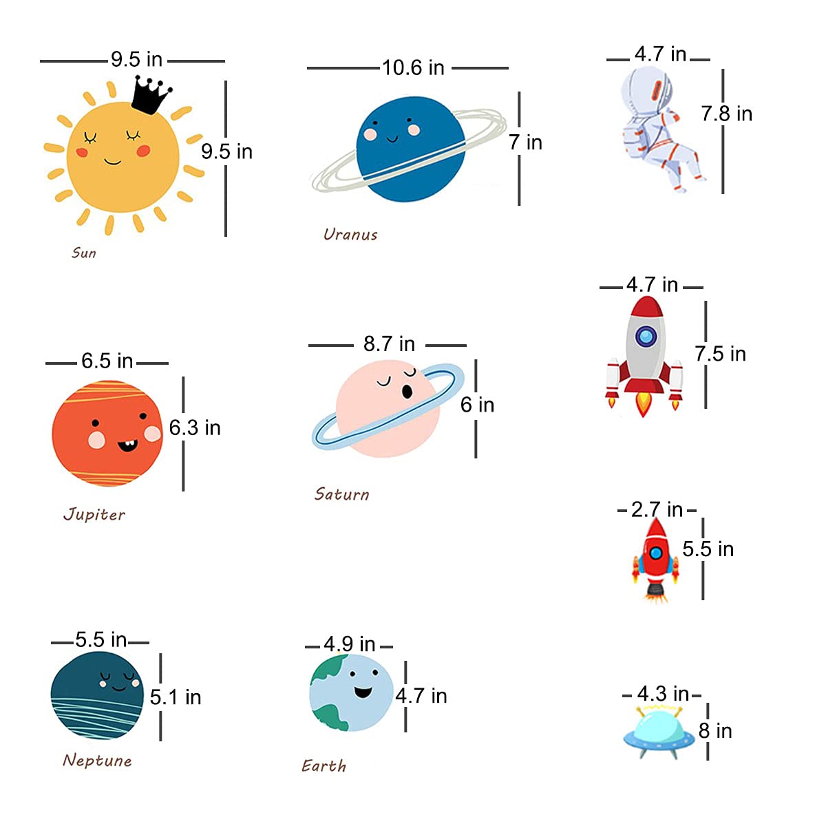 1,Lovely kids wall stickers:Our cute solar system wall decals are perfectly for your girls and boys room.These kids wall stickers are suitable for bedroom, playroom, living room, nursery room, kindergarten, school, classroom, etc.
