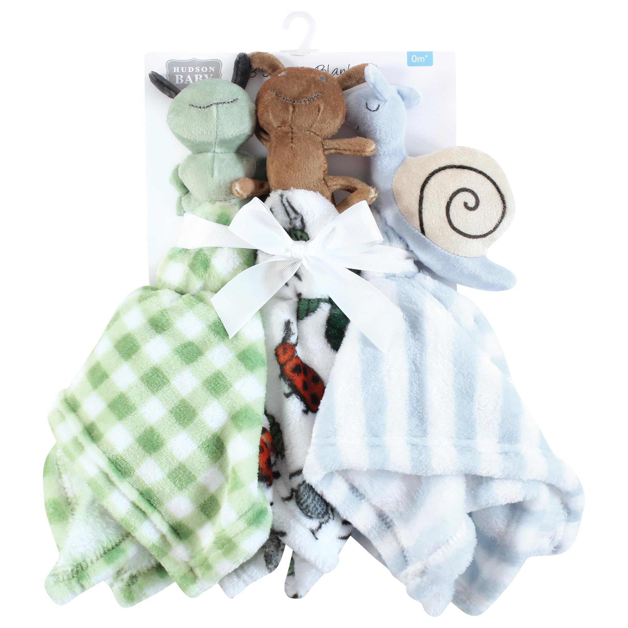 Hudson Baby animal face security blanket will keep baby calm and content with their favorite animal friend. Our security blanket features super soft and luxurious fabric, with a fun animal creature to play and snuggle to their little heart's desire. Our security blanket will surely become a baby favorite.