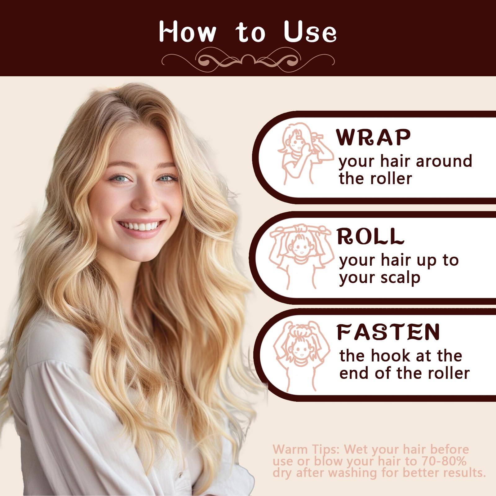 【Easy to Use】Just divide your hair into sections and secure with a curling rod and a satin square. No need to plug in or heat treatment, safer and more convenient to use, no need to worry about overheating. Three simple steps: WRAP, ROLL, FASTEN, you can easily create a professional hairstyle at home.