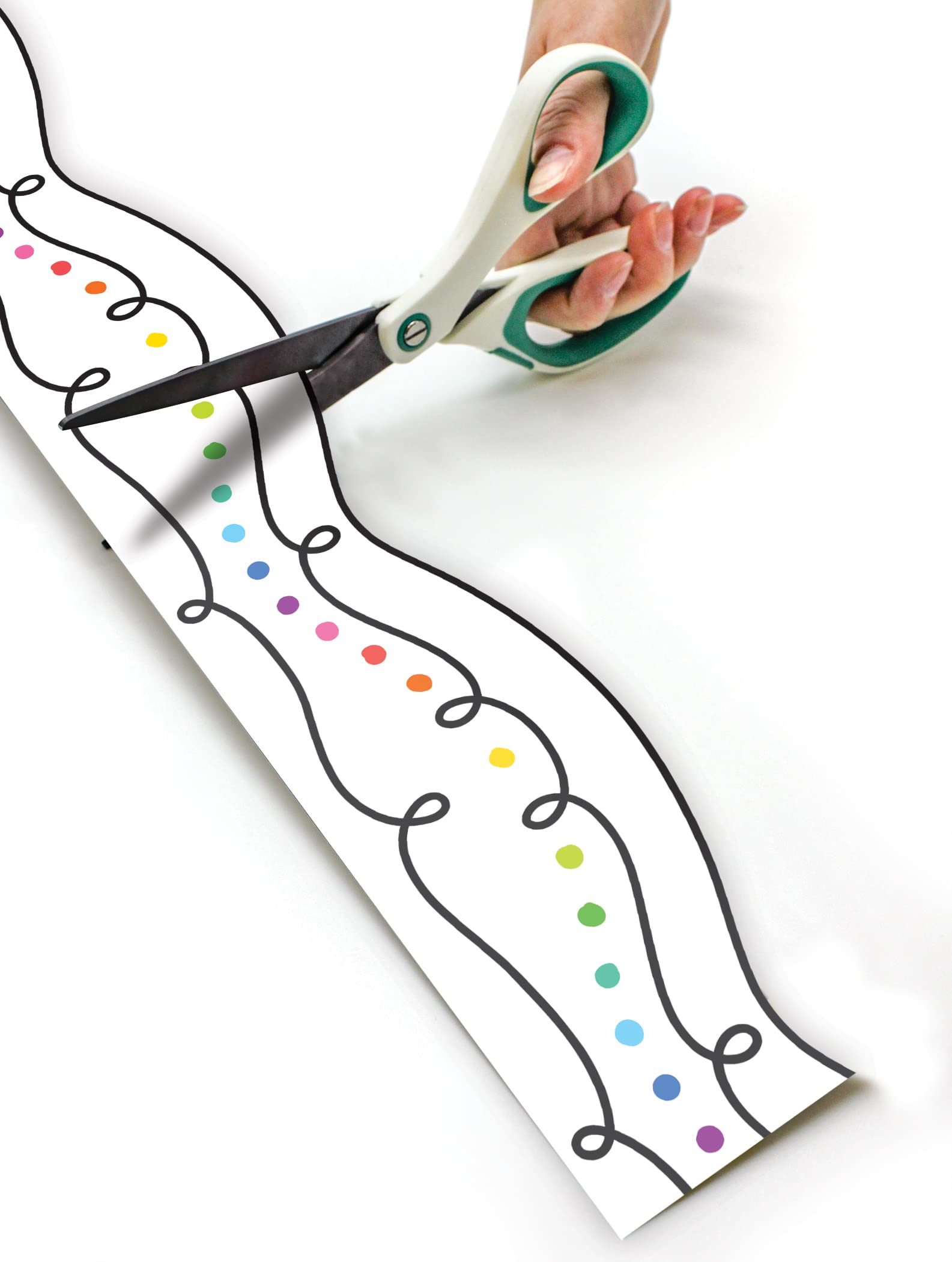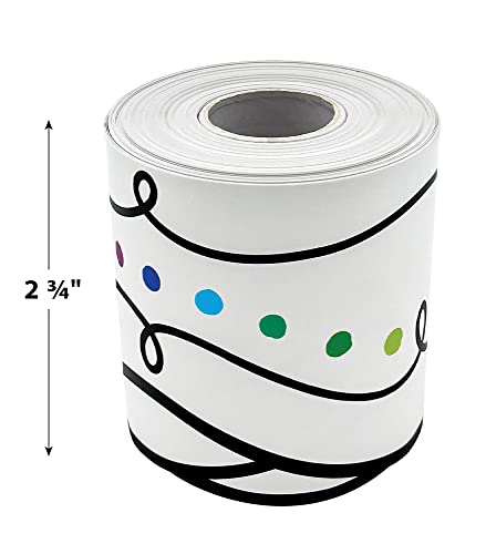 Use this rolled border trim to liven up your classroom! Create fresh looks for bulletin boards, windows, walls, and class projects. Mix and match with coordinating products for a classroom theme. 50 foot continuous roll of vibrant border trim made of durable paper. Cut each border to your desired length. Each rolled border measures 2-3/16" x 50".