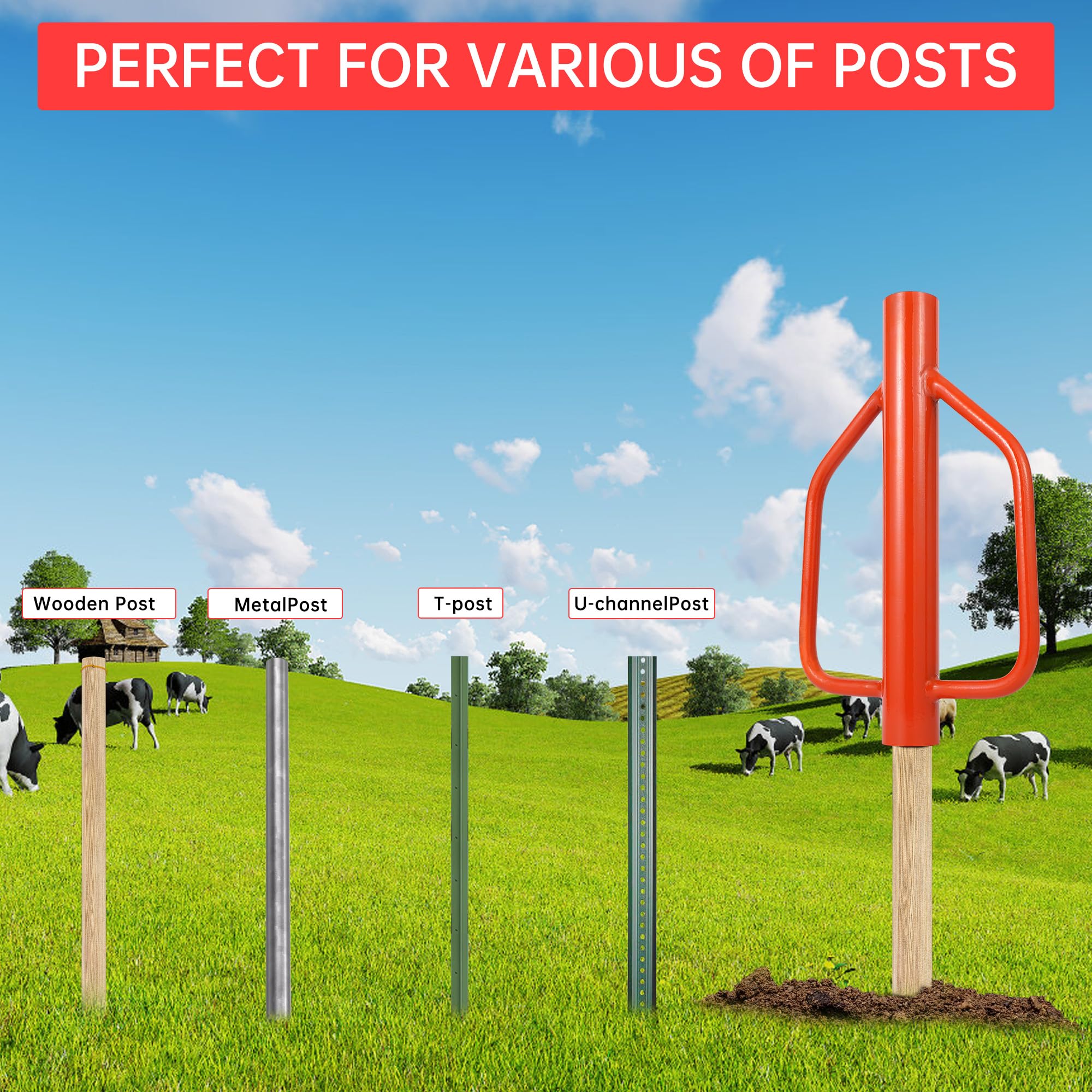 ✔ FIVE OPTIONS:We offer five type post pounder options:① 30LB post driver ② 37LB t-post driver ③ 18LB post pounder ④ 12LB post pounder driver⑤ 8LB fence post hammer; it easily sinks fence posts in red clay. Solid, weighty, and should last forever. Much easier and less strenuous than the hand sledge.