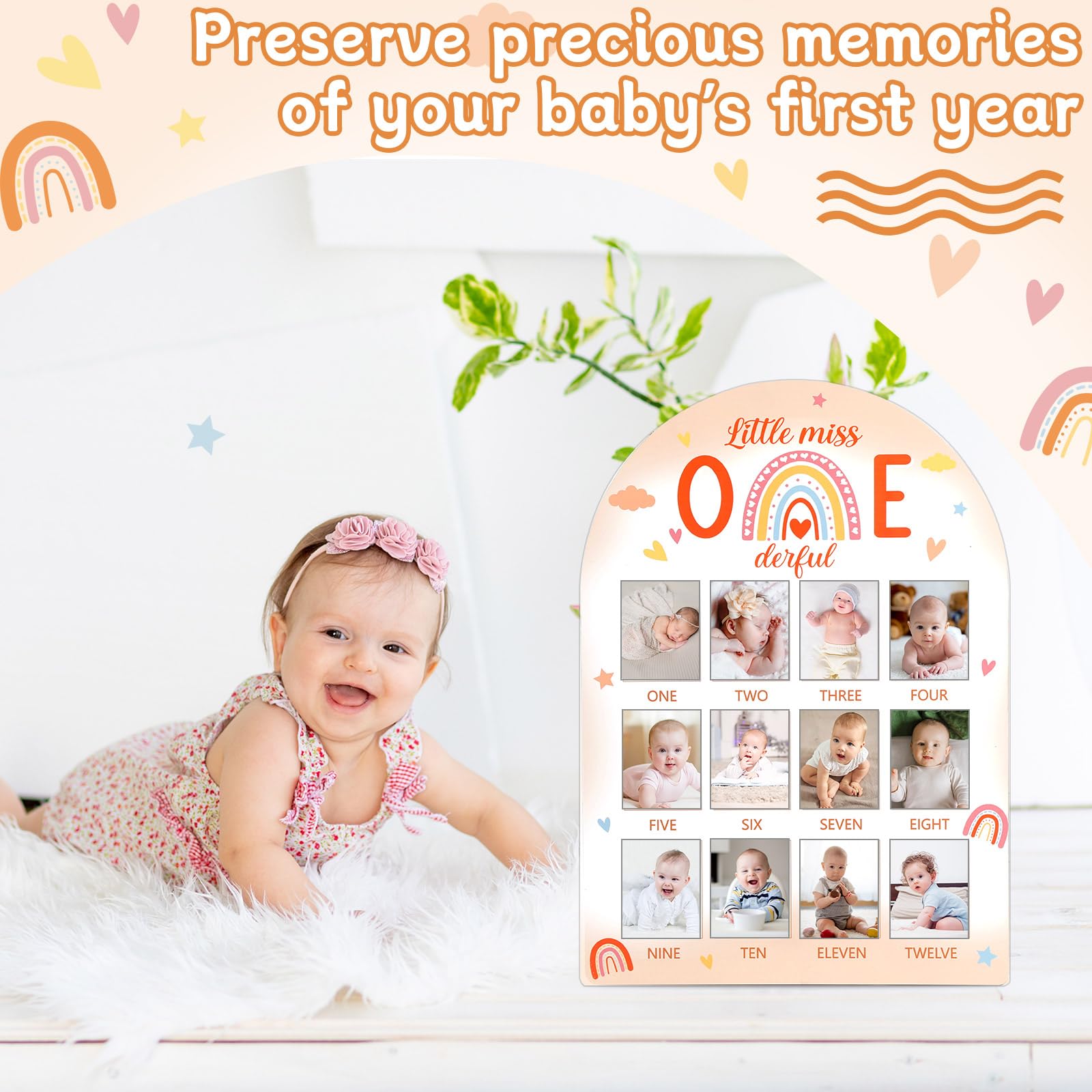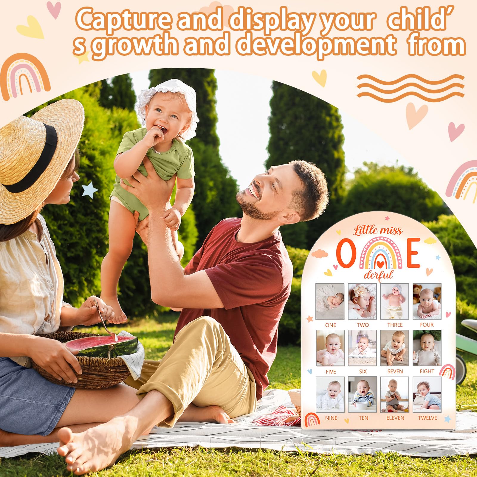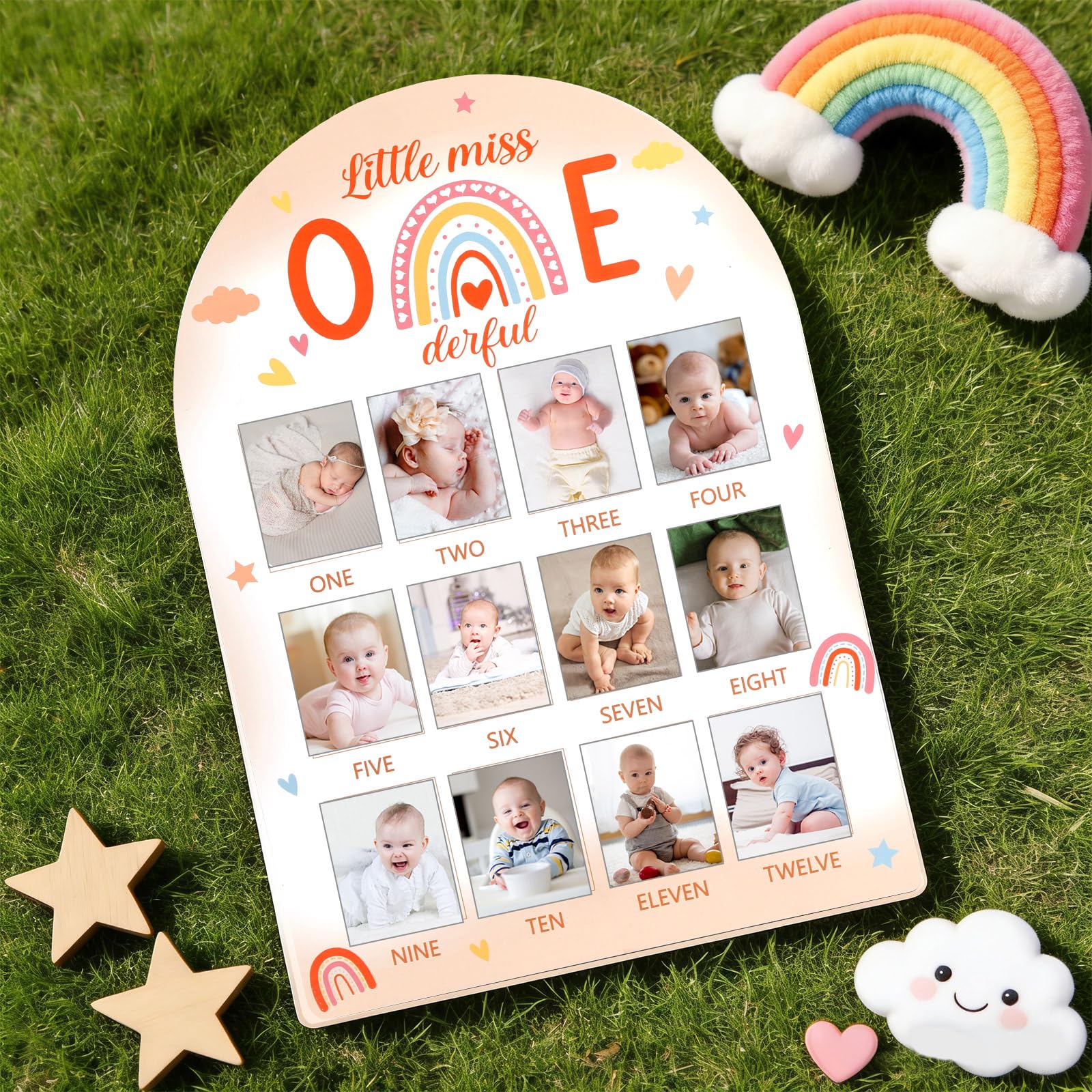 Little Miss One Derful Photo Board Boho Rainbow First Birthday Party Decor Wooden Board 12 Monthly Milestone Picture Frame One Year Old Wood Sign 1st Bday Photo Banner for Baby Keepsake Gift Supply This Little Miss One Derful Rainbow First Birthday Photo Board is a beautifully printed wooden milestone display designed to celebrate your baby’s first year in a warm boho style. Measuring 17 x 12 x 0.4 inches, it features smooth rounded corners, vibrant rainbow artwork, and space for 12 monthly photos to highlight your baby’s growth. Specifications: Material: wood Size: 16.9 x 12 x 0.4 inches Color: colorful Package Includes: 1 x boho rainbow themed milestone board 2 sheets of adhesive dots Each board includes two sheets of adhesive dots for easy photo mounting, making it ideal for birthday parties, memory books, nursery décor, or a long-lasting keepsake that captures your little one’s sweetest moments.