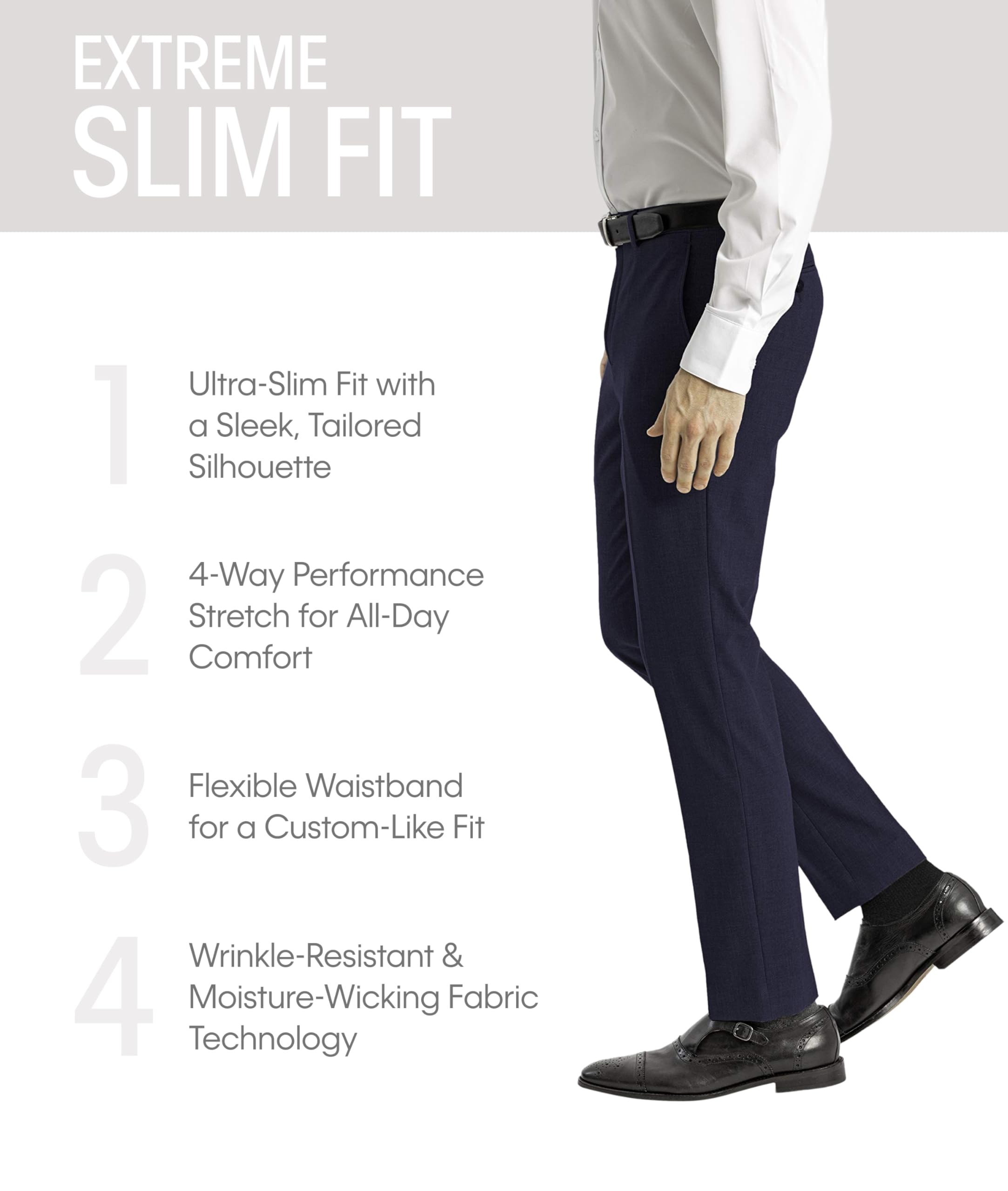 Tapered Slim Fit: Designed with Calvin Klein’s most fitted silhouette, these tapered dress pants feature an ultra-tailored leg for a sleek, contemporary profile.