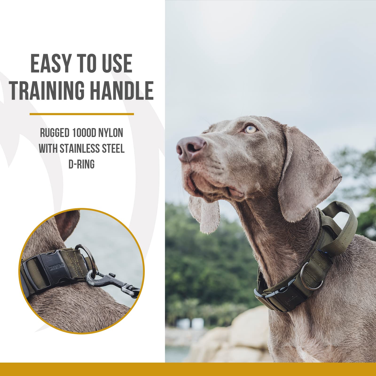 【Practical Design】Military Training Nylon Dog Collar has special control handle, can efficiently control your dog when training, patrol, hiking, jogging, hunting, camping, working, running, jumping, traveling, camping. Fits lots of medium and large dogs