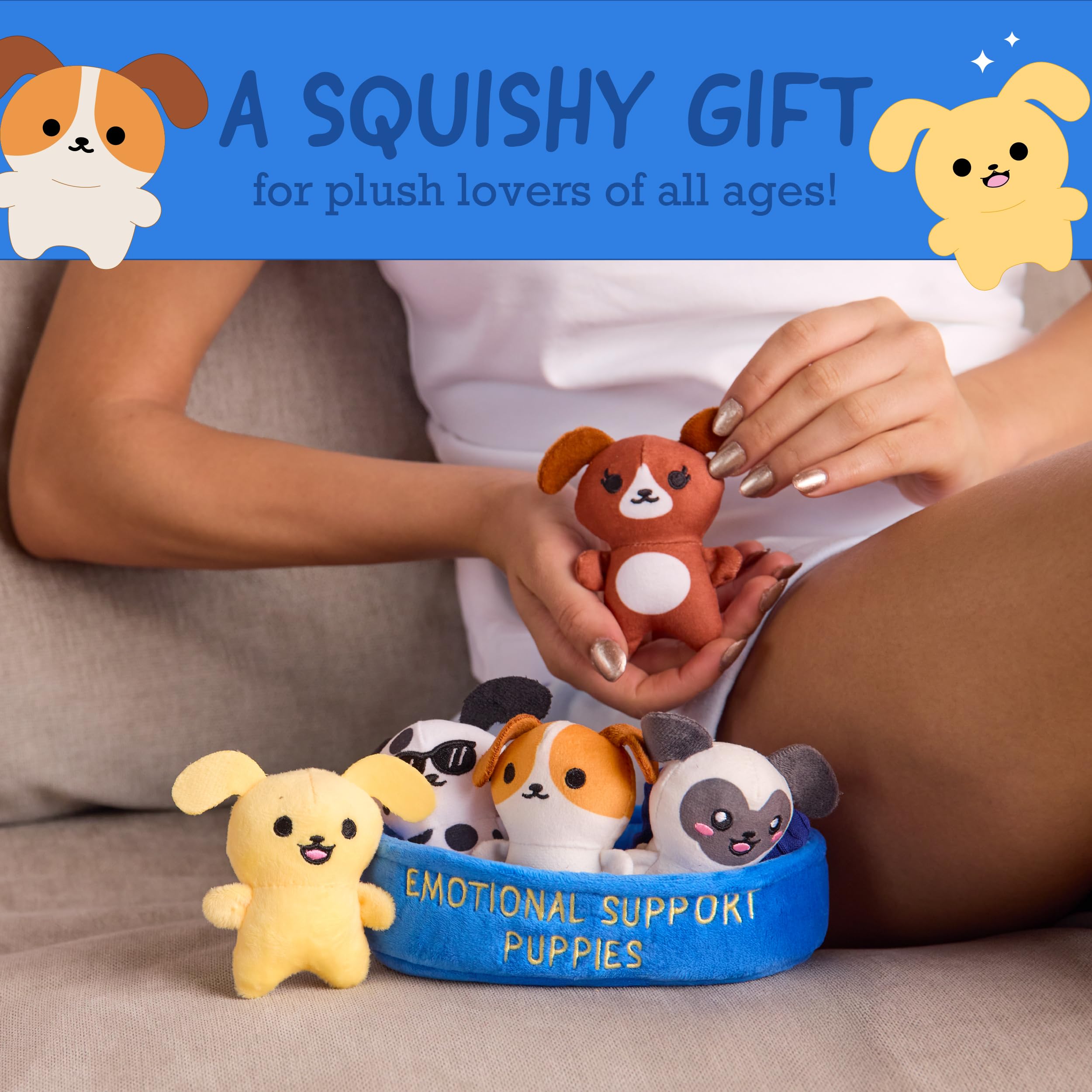 Looking for the perfect gift to brighten someone's day? Whether it’s for a birthday gift, a special occasion, or just because, the Emotional Support Puppies are the cute gifts you didn't know you needed! These adorable stuffies are more than just cuddly companions—they’re a delightful blend of cute things, random cool stuff, and mini plushies, guaranteed to bring smiles. The perfect stuffed animal toys, Emotional Support Puppies are both cute and hilarious. Their snuggly details and expressive faces make them the perfect plush pals for stuffed animal lovers. These little puppies aren't just for teens, though—they make great funny birthday gifts, therapist gifts, and thinking of you gifts for anyone who could use a lift. Need gag gift ideas that are sure to get a laugh? The Emotional Support Puppies are just the thing! Their quirky, over-the-top personalities make them great funny plushies, birthday party favors, funny gifts for women, cool room decor, and funny gifts for coworkers. Whether you're looking for something unexpected for a best friend or a surprise for your favorite coworker, these pups are up for the task. But they're not just about laughs. These plush toys are travel toys in disguise, offering a squish and an added touch of joy wherever you are. Whether you want to add to your collection or simply bring a little more fun to your life, these cute plushies are cuddly and irresistibly fun. Looking for something that’s both practical and adorable? Emotional Support Puppies also double as interesting finds, bringing a little bit of lighthearted support to your loved ones. Their softness and hilarious expressions serve as a reminder that it’s okay to laugh . So, whether you need a cute gift for your best friend, a quirky addition to your toy animals collection or just something extra fun to have around, the Emotional Support Puppies are the mini stuffed animals that have your back!