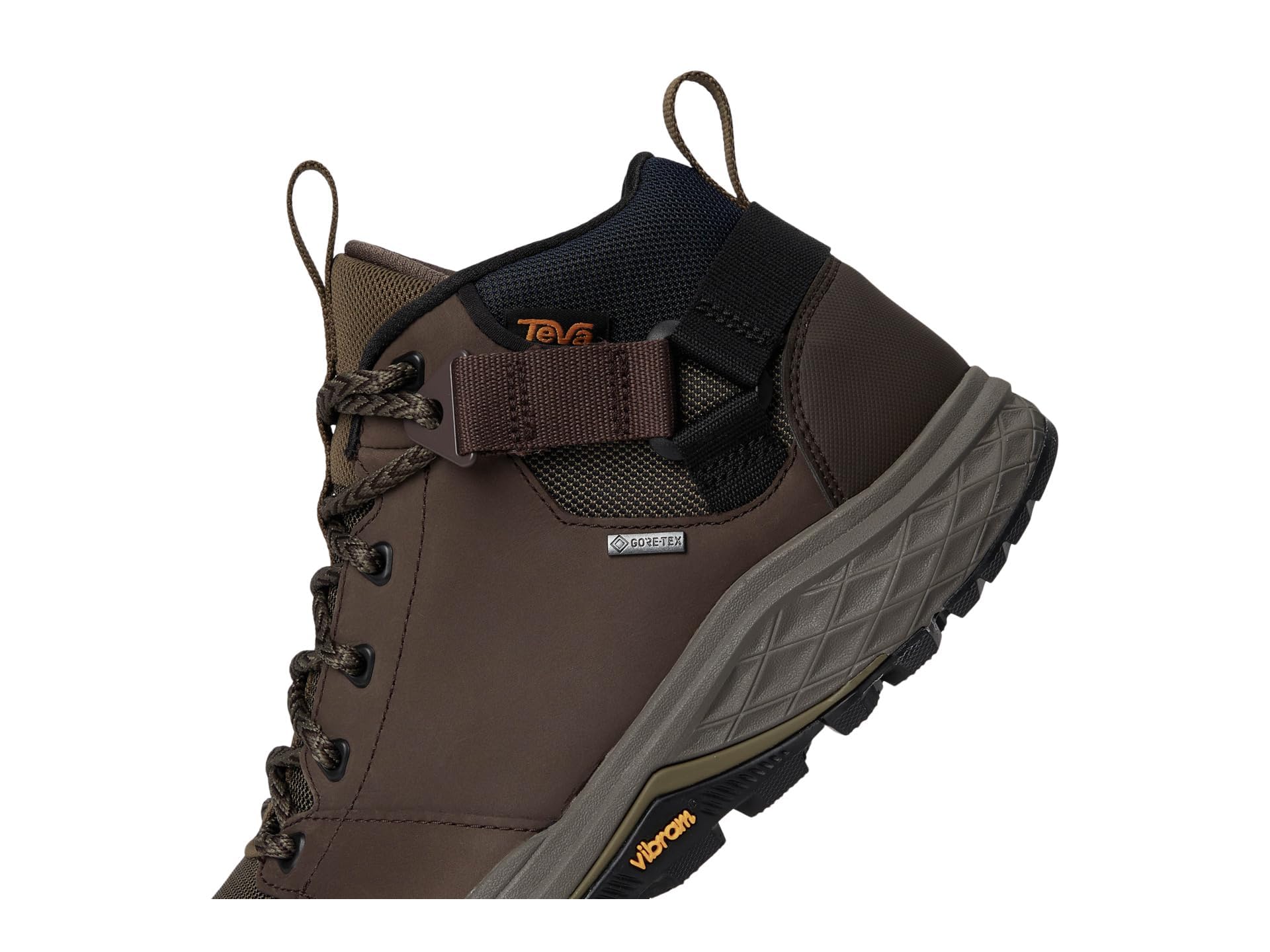 Description Tackling day hikes and weeklong excursions with the same rugged dependability, the Grandview GTX combines waterproof leather and quick-dry mesh with a GORE-TEX bootie to seal out the elements. A wider toe-box frees toes while an adjustable Universal Heel Lock System keeps your foot in place for minimal toe pressure during downhill treks. The Vibramâ„¢ Megagrip outsole provides traction and stability for wherever the trail takes you.