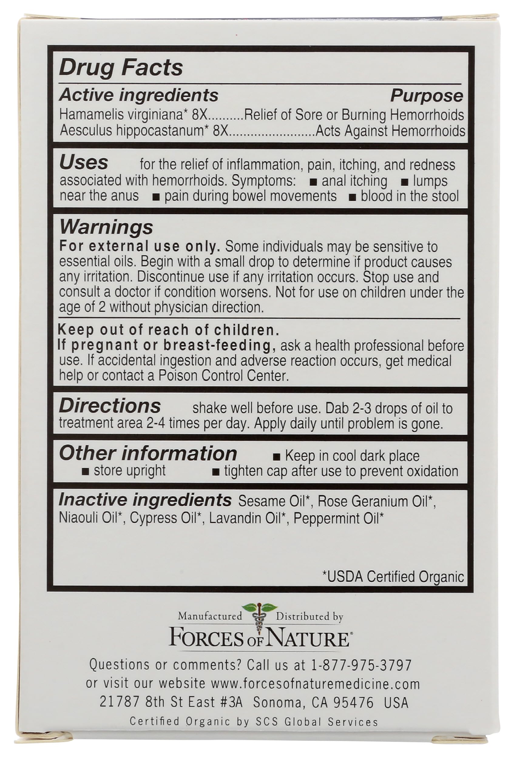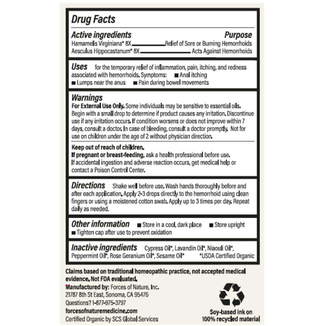 WHY WE'RE DIFFERENT: Forces of Nature strives to provide safe, organic products for families in search of healthier solutions to their well-being. Our Hemorrhoid Control is proudly made in the USA with globally sourced ingredients. We manufacture in an FDA-registered facility, meeting the highest standards of quality and safety. Certified USDA Organic, Non GMO Project Verified, and Leaping Bunny Certified, this product is both highly effective and ethically produced.