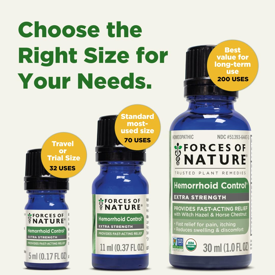 FORCES OF NATURE HEMORRHOID CONTROL: Developed with proven ingredients to relieve both acute and chronic hemorrhoids, our Extra Strength formula blends essential oils and homeopathic ingredients to consistently shrink hemorrhoids and provide soothing comfort with every use.