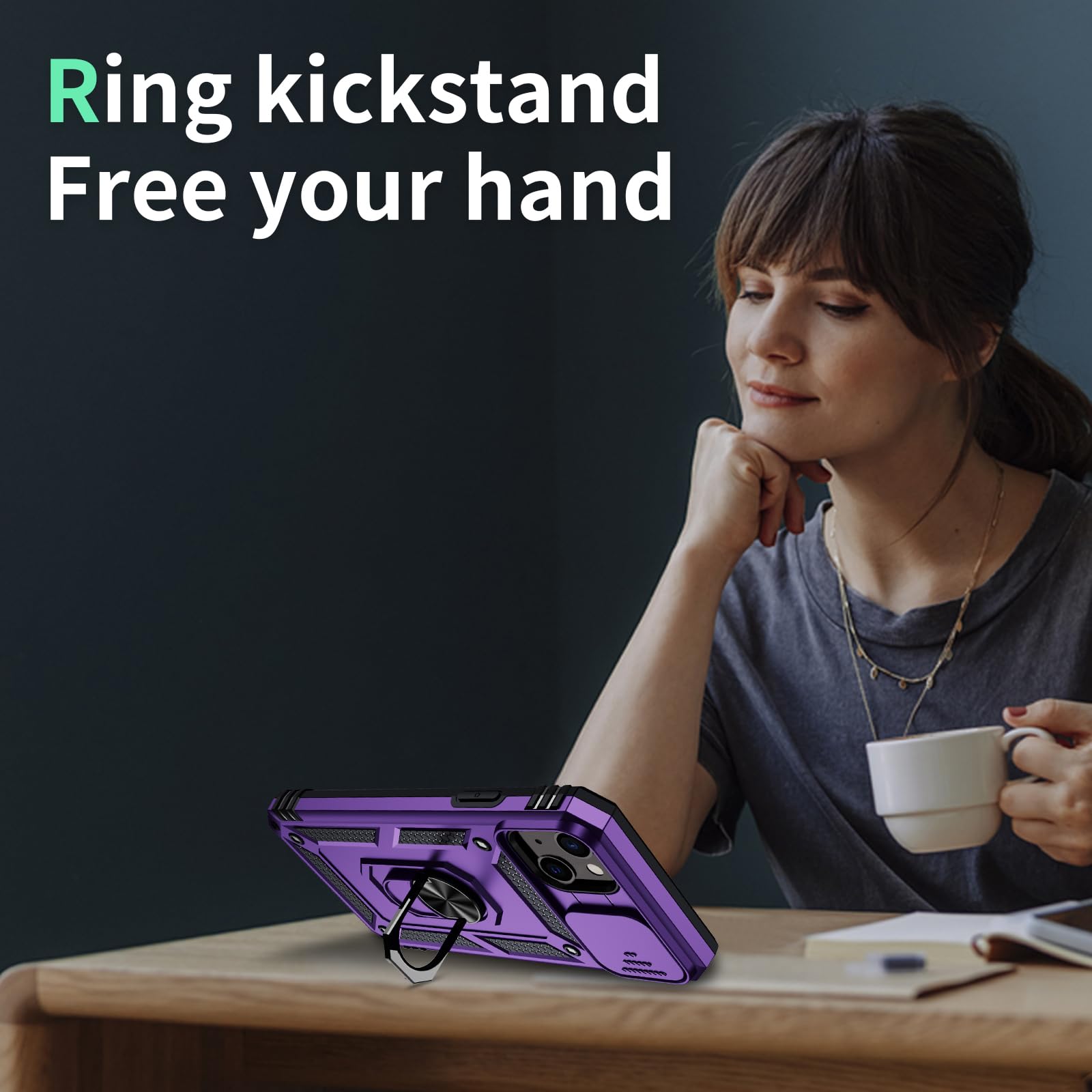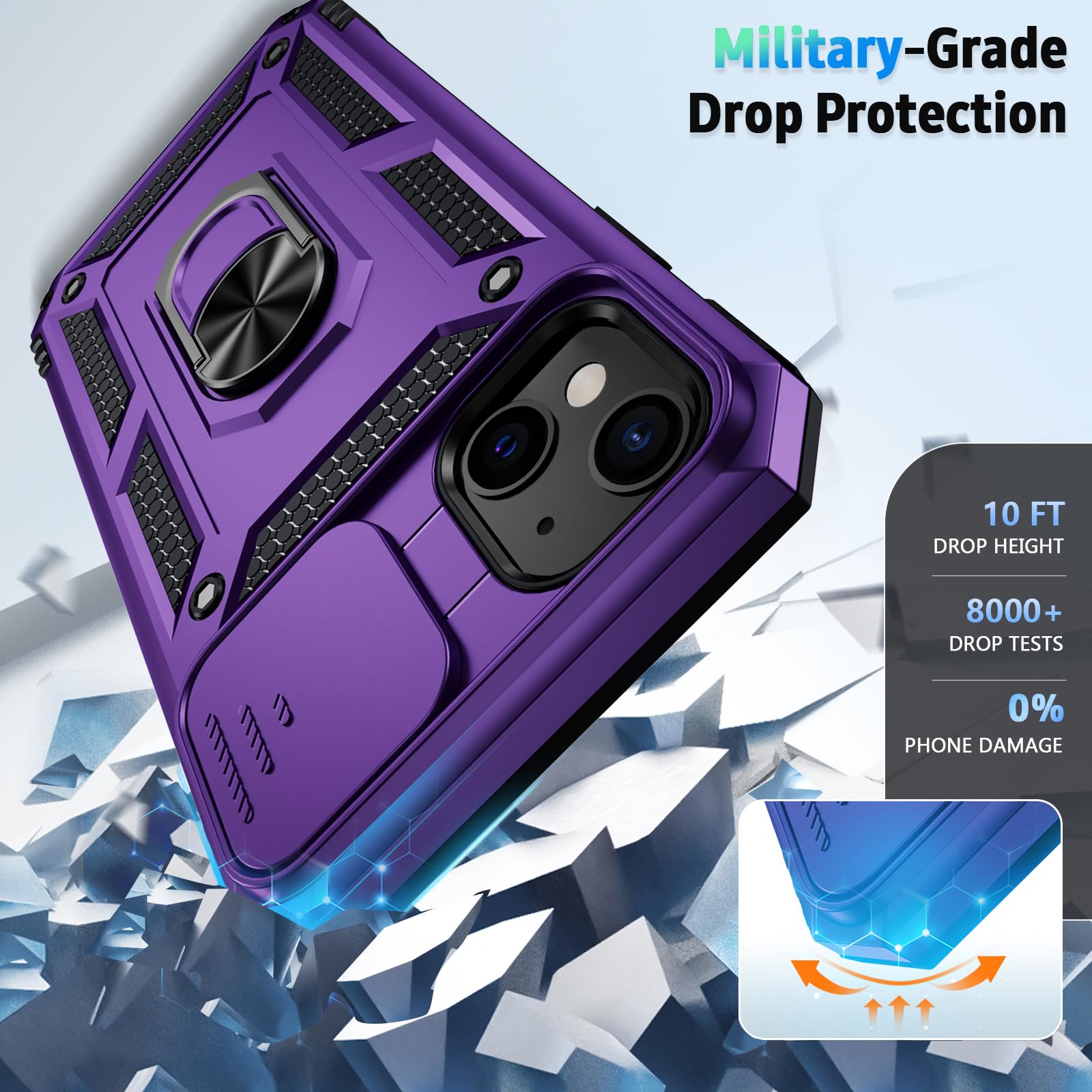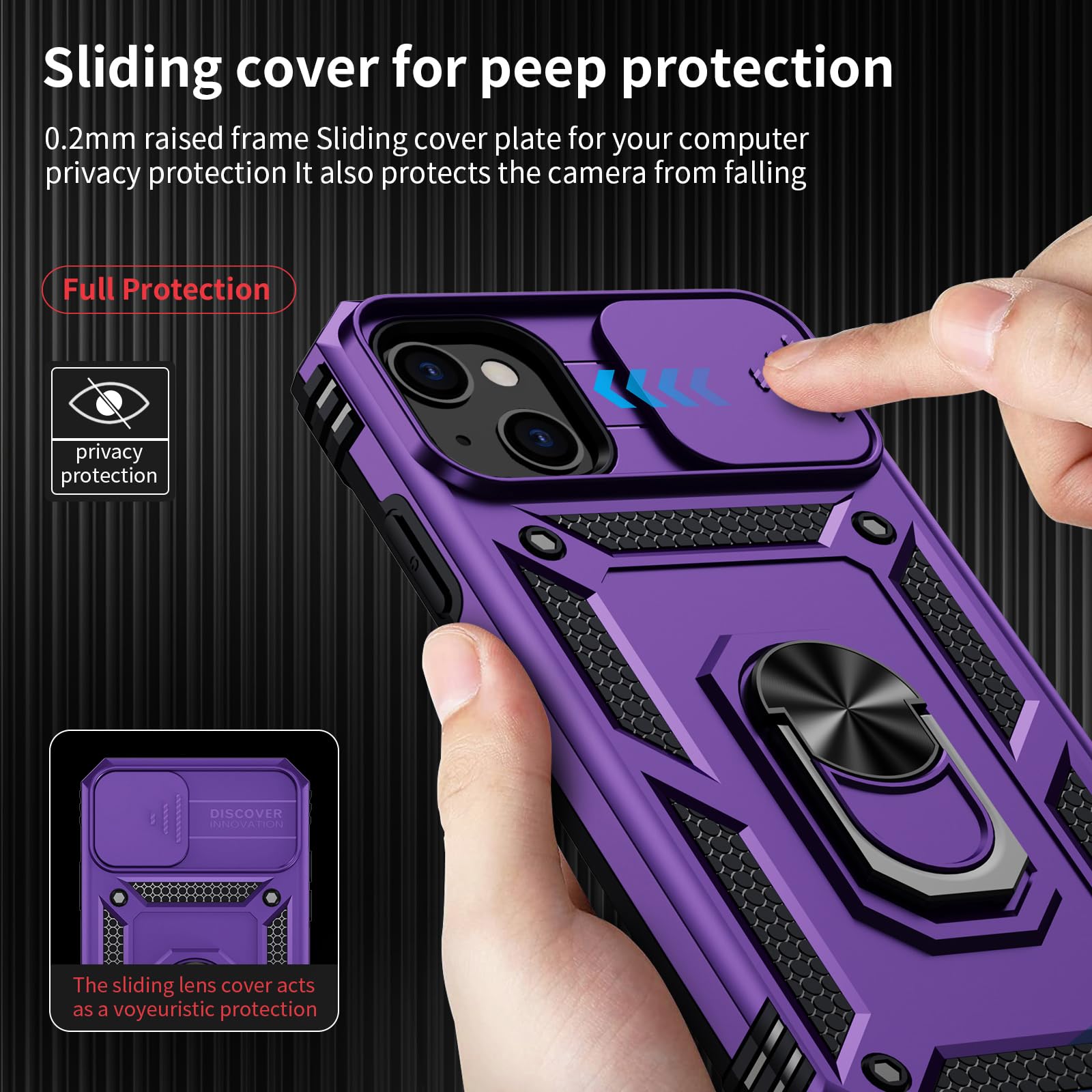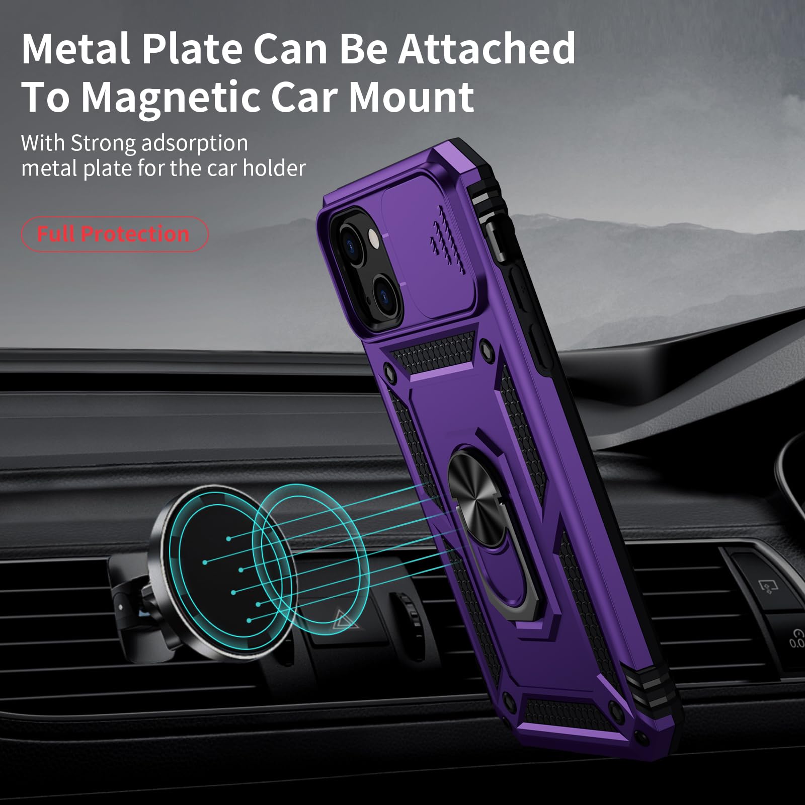 [Durable Case with Delicate Design]: Armor Case with sliding camera cover specially designed for with iPhone 13 mini . The package includes 1 phone case and 1 PET HD screen protector (Plastic) ⚠️ Please note that the case is not compatible with wireless charging due to the presence of a metal ring on the back.