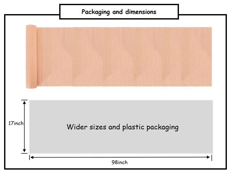 Length: 8.2 feet/2.5 meters; Width: 17 inches/43 cm; Compared with our peers, we will use OPP bags for packaging to ensure that the product is delivered to your hands without wrinkles