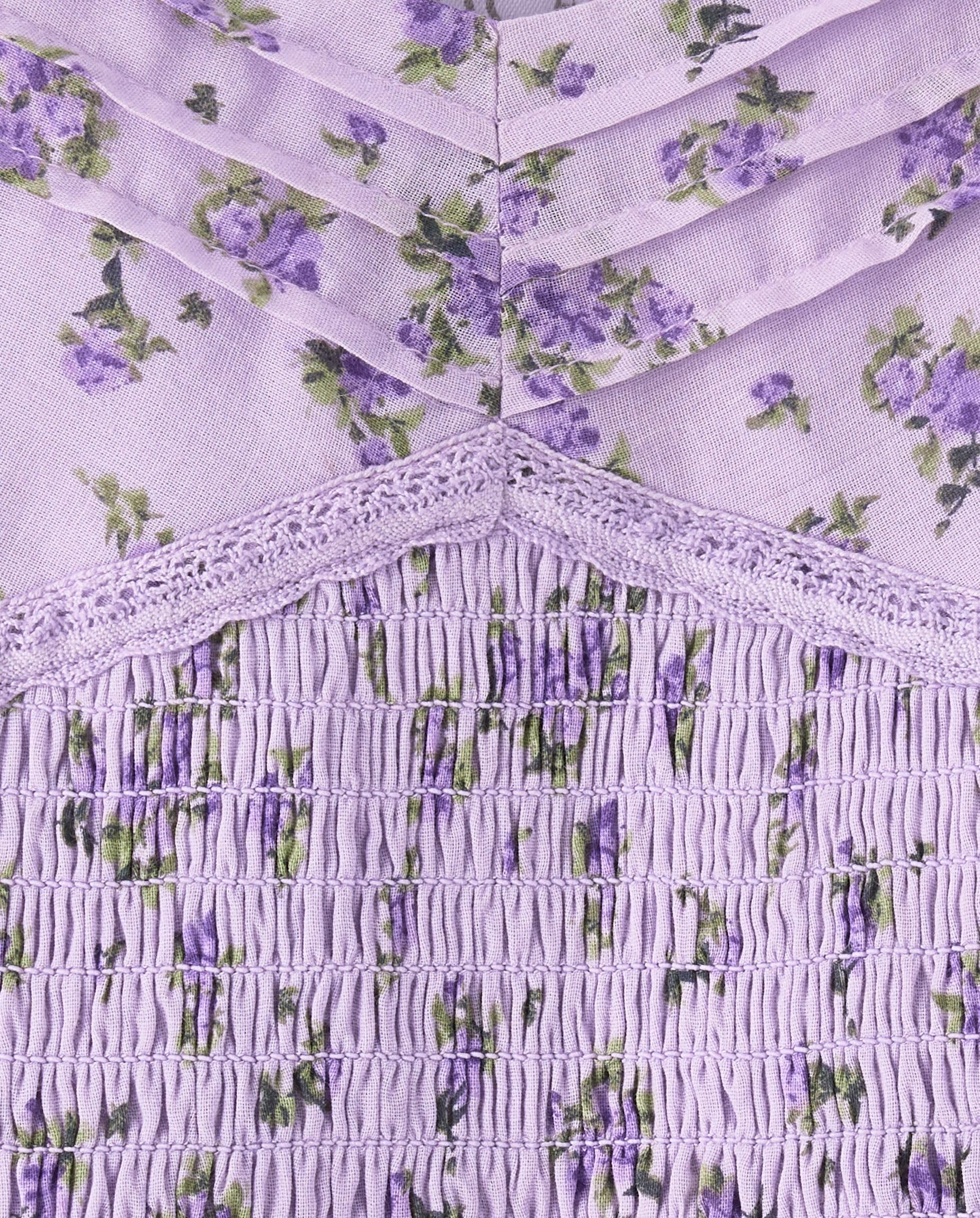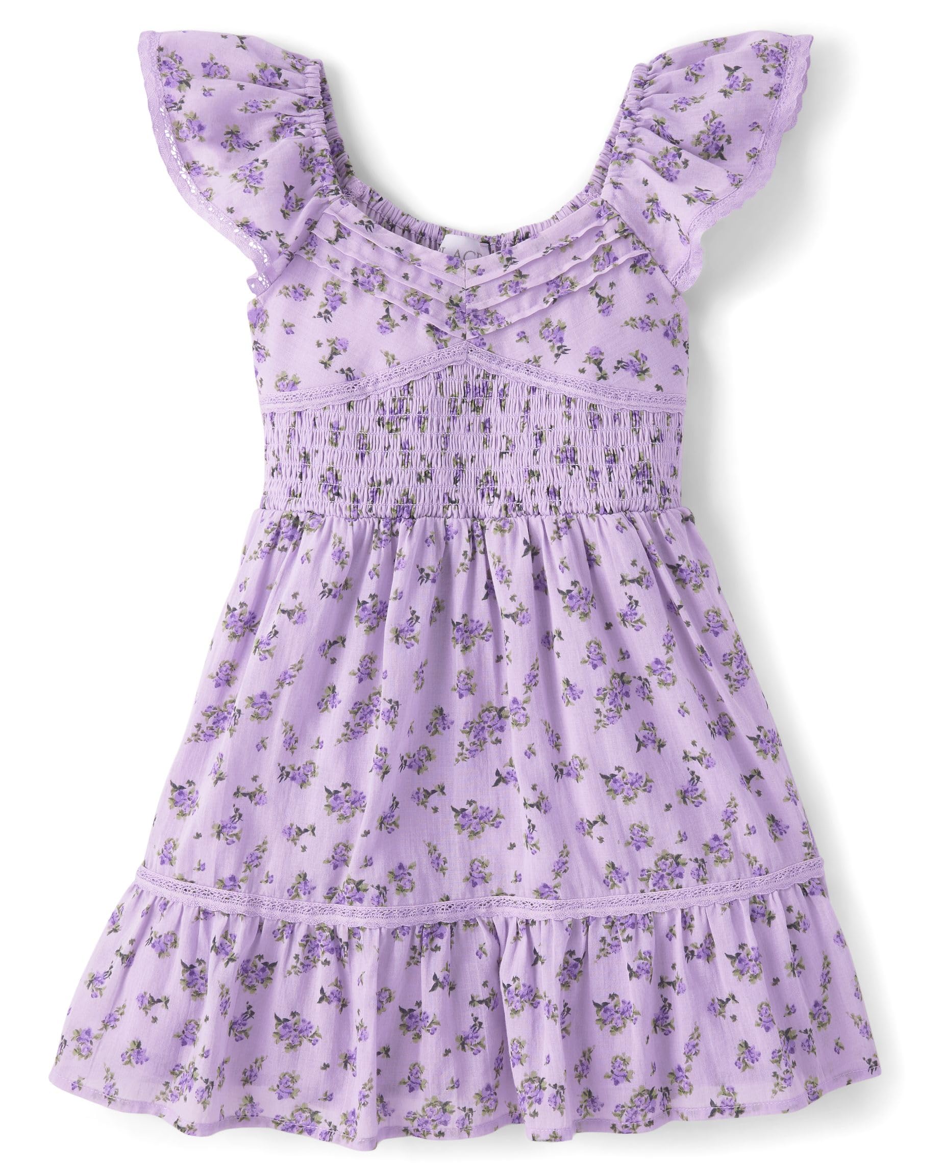 FEATURES: Fully lined, elasticized back neck, smocked front & back bodice panel, lace detail at skirt, fabric finished for added softness & to reduce shrinkage