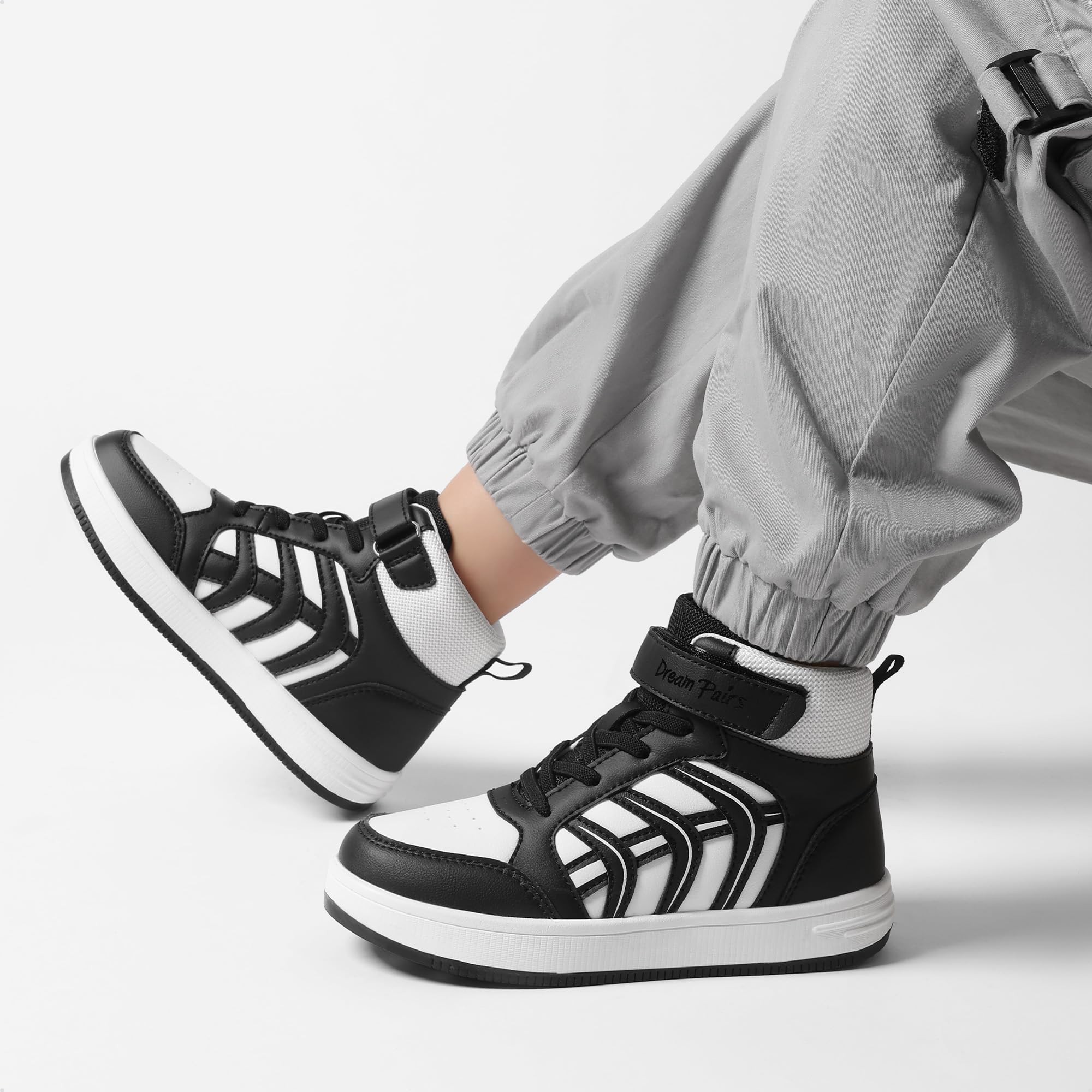 Quick And Easy Wear: Convenient hook-and-loop design saves time, ideal for busy school mornings or transitioning between sports practice. These basketball shoes for kids are perfect for toddlers and kids, ensuring a hassle-free experience for parents and children alike.