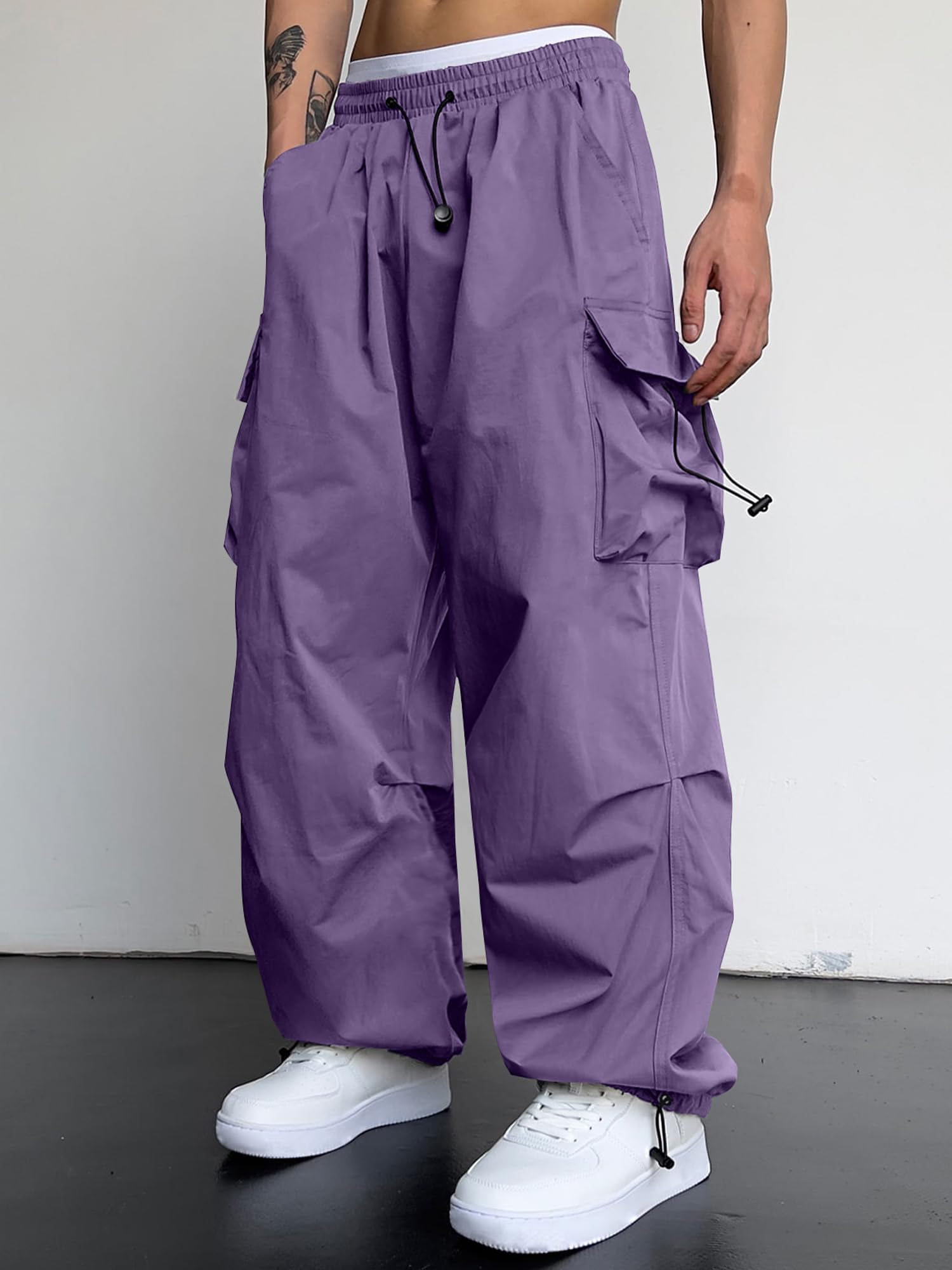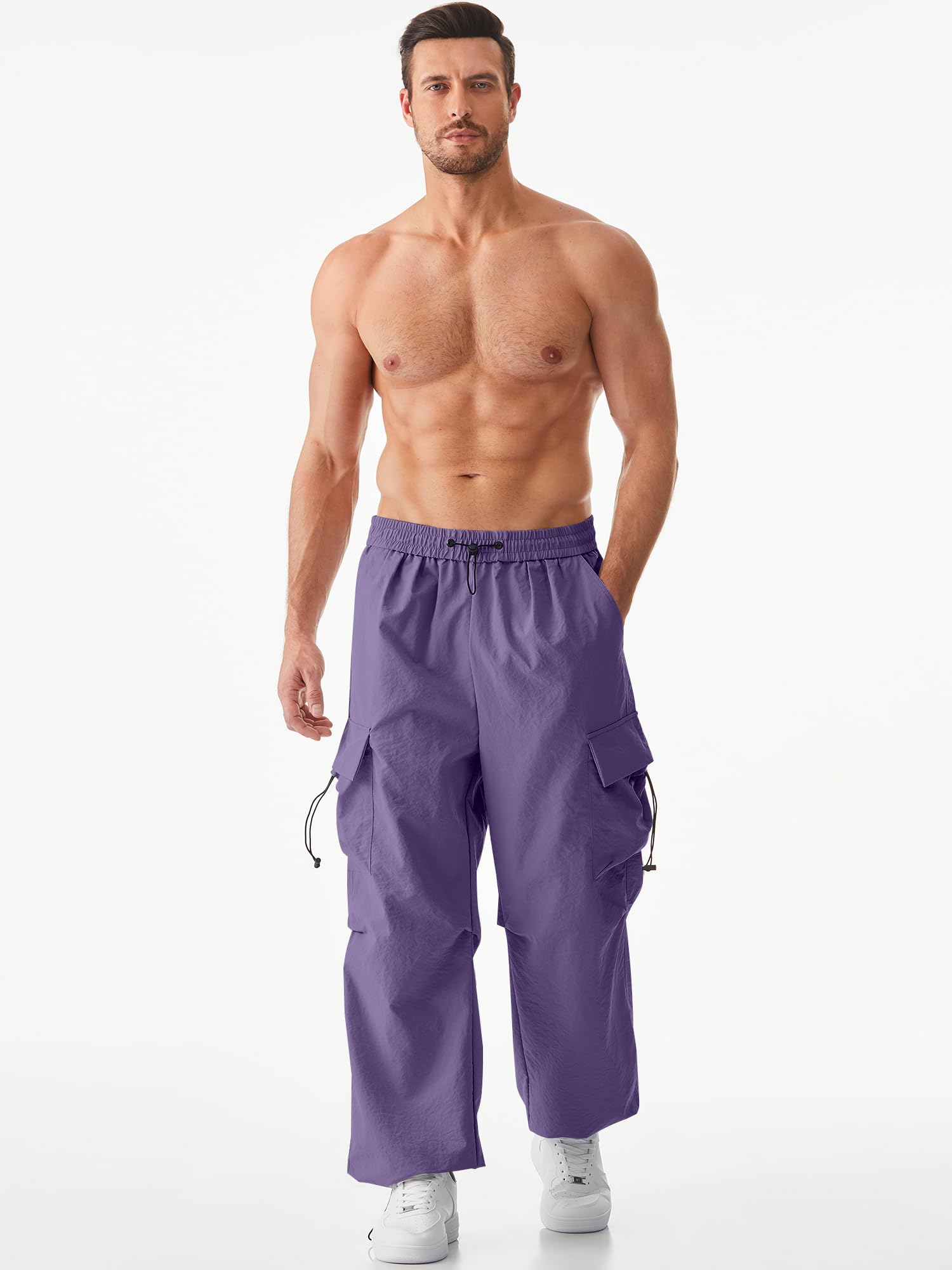 Trendy Design: JMIERR's men's cargo pants blend parachute pants design with a wide flare leg, reminiscent of 90s hippie grunge style. Featuring a unique and bold look, these pants include an elastic waistband, adjustable drawstrings, and 4 pockets, making them a super chic addition to any stylish men's wardrobe.
