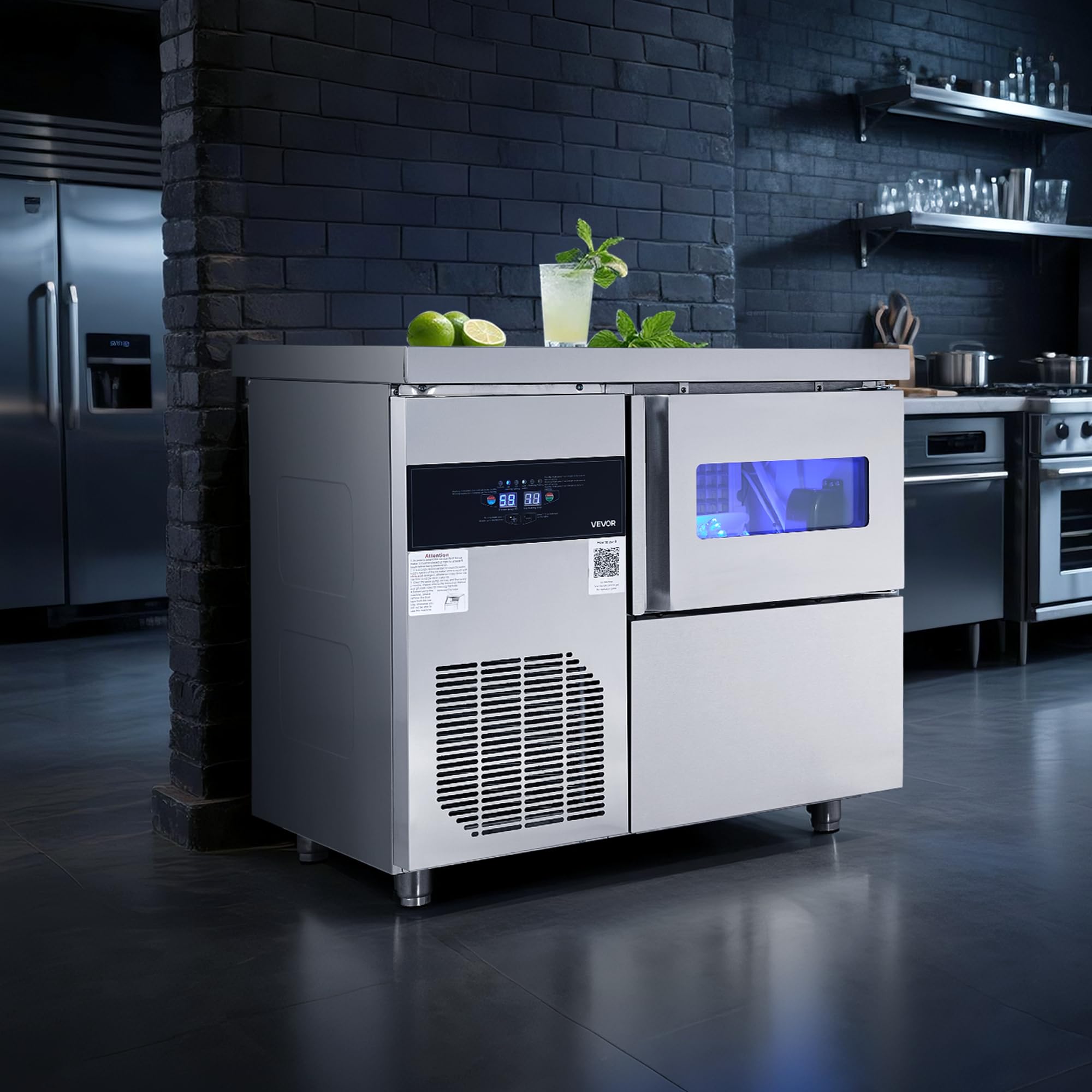 Reliable Storage and Insulation: This worktable ice maker is built with a thick insulation layer and a sealed bin, which slows melting and keeps ice solid longer. It ensures steady ice availability during peak dining hours, supporting stable and continuous commercial operation
