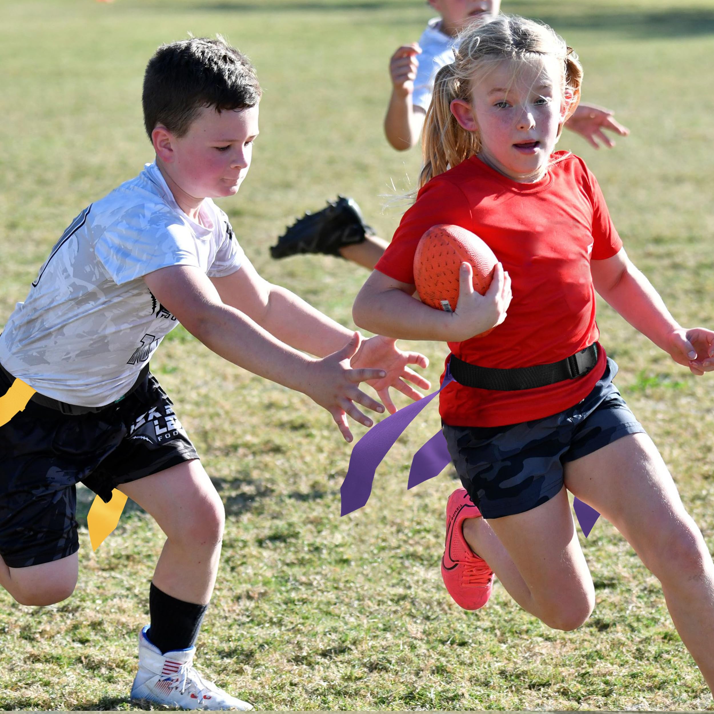 Belt of football flags have an elastic loop keeper so that you can tuck in any extra portion of the belt without affecting defensive use in any organized flag football games