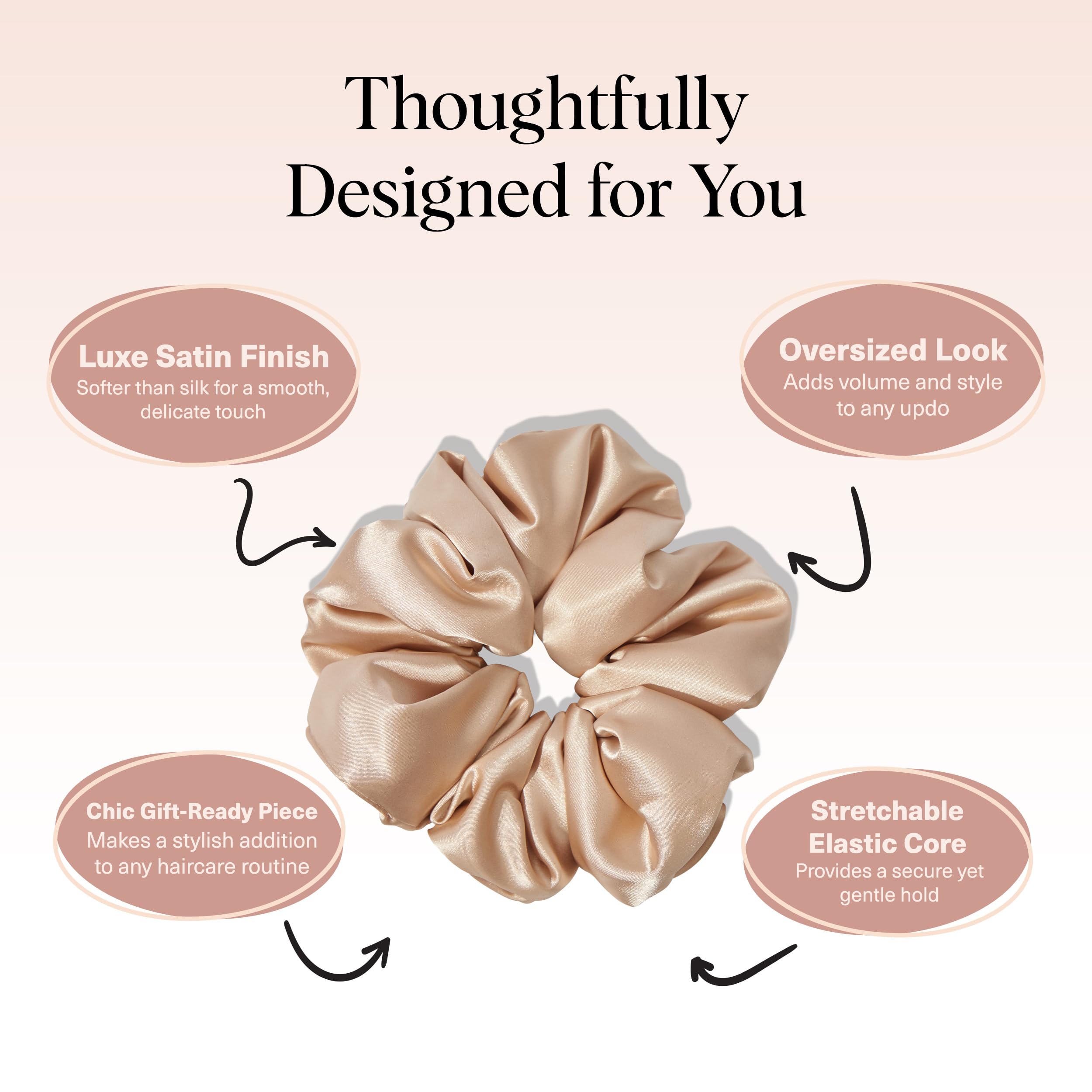YOUR EVERYDAY HAIR SCRUNCHIE: This large scrunchie offers a secure hold without leaving dents or creases, making it perfect for everyday wear and active lifestyles. The versatile Champagne color easily complements any outfit.