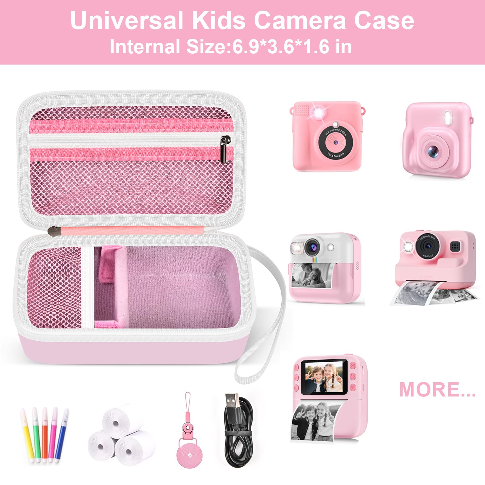 Photo camera bag with superior protection: Crafted with premium quality materials, instant film cameras carrying case offers the ultimate protection for your boy and girls camera instant print and accessories. Pink camera travel box is shock-proof and drop-proof, ensuring instant camera for boy and girl and equipment stays safe and secure. Let your tots explore their creativity without worrying about accidental spills, dust, or bumps