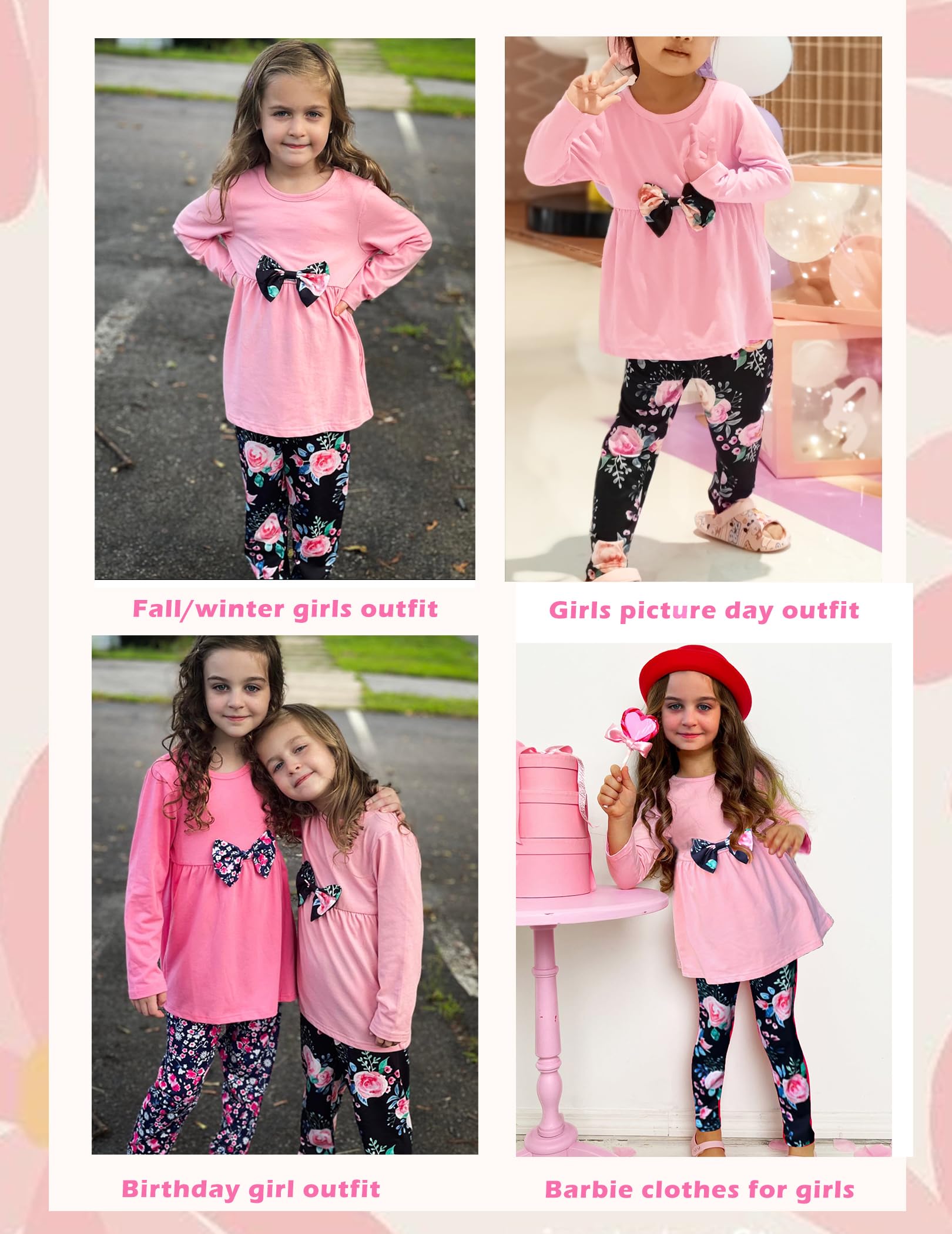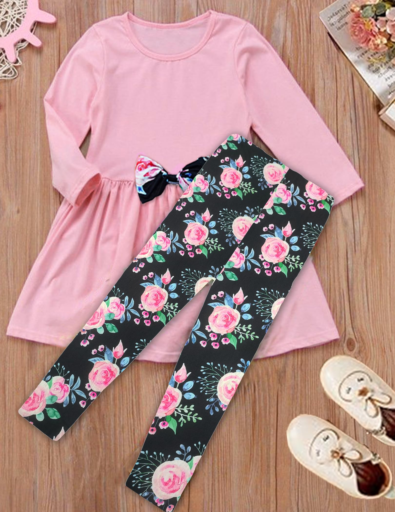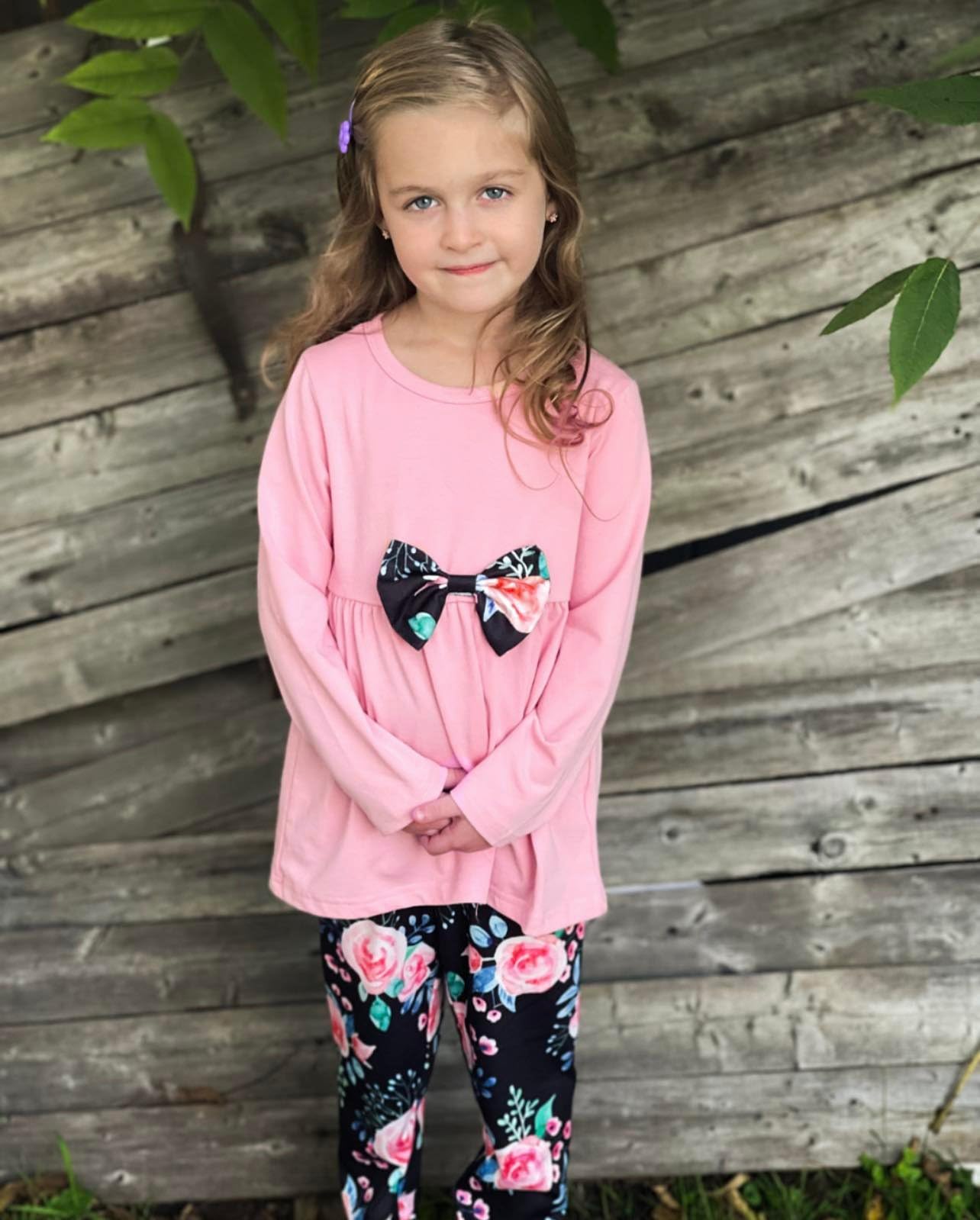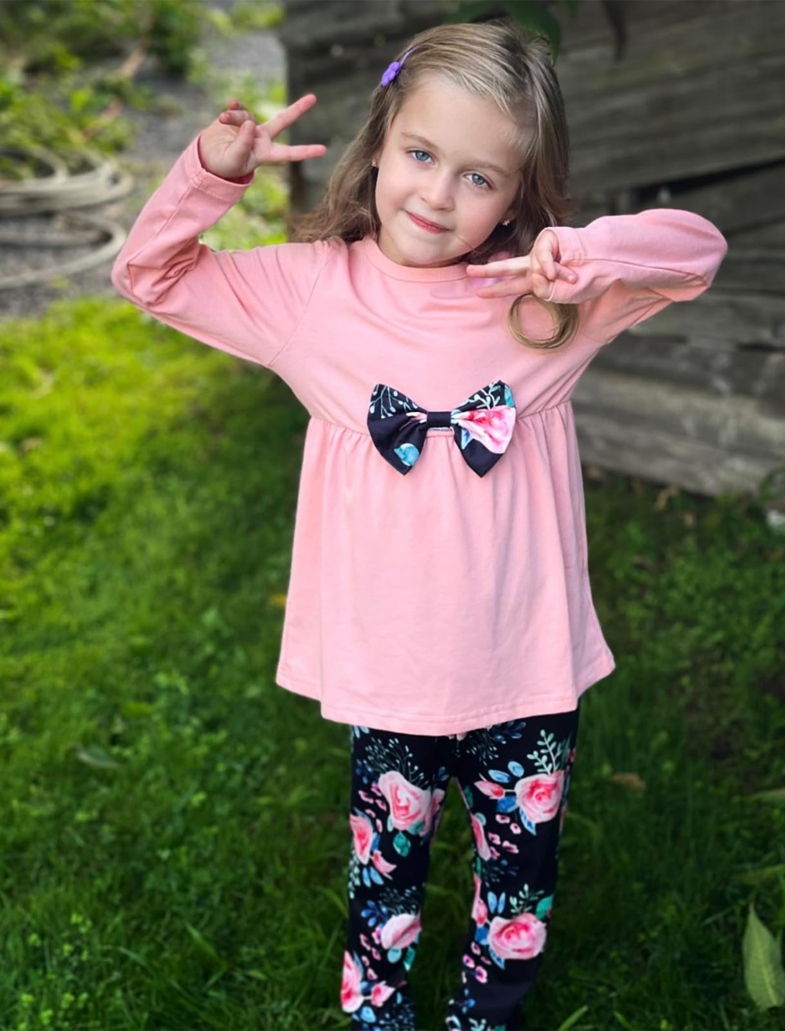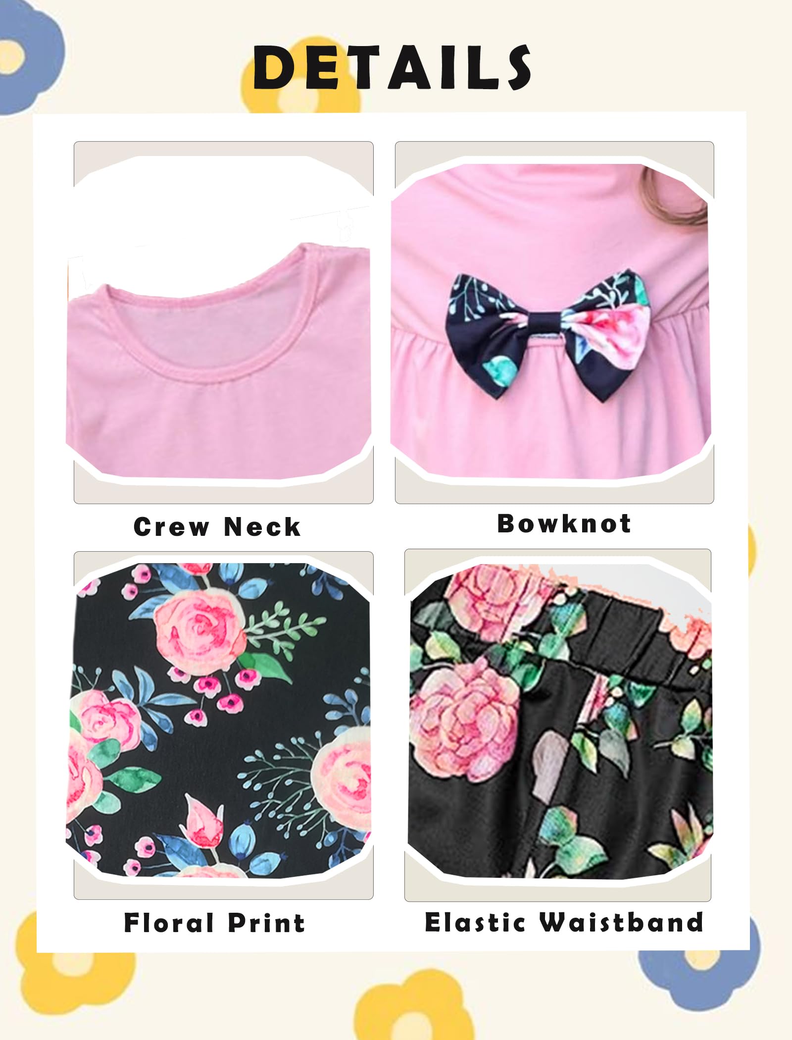 Bowknot Design--Girls outfits come with long sleeve shirts and cute floral pants. The girls tops are super cute with the classic round neck and added an little bow in the middle which is a nice touch and makes it even more classy and adorable, matching well with the floral leggings. The pants feature an elastic waistband that easily to put on/off.