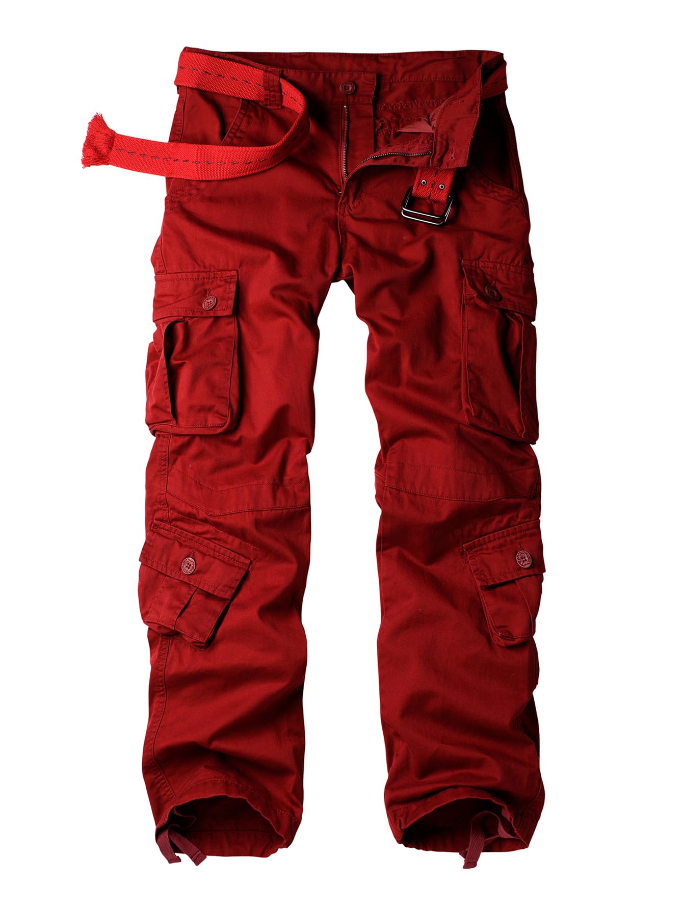 Product Design:Classic cargo pants with 8 pockets;they are all three-dimensional design,2 flat slant pockets for hands-free use and convenient access,4 cargo pockets provide secure equipment storage,2 back buttoned pockets provide deep, secure storage that makes it easier to carry additional personal things,also,one left front zipper fake pocket is a good decoration..Designed with a relaxed fit through the seat and thigh, these men's casual wear will keep you comfortable during any task.