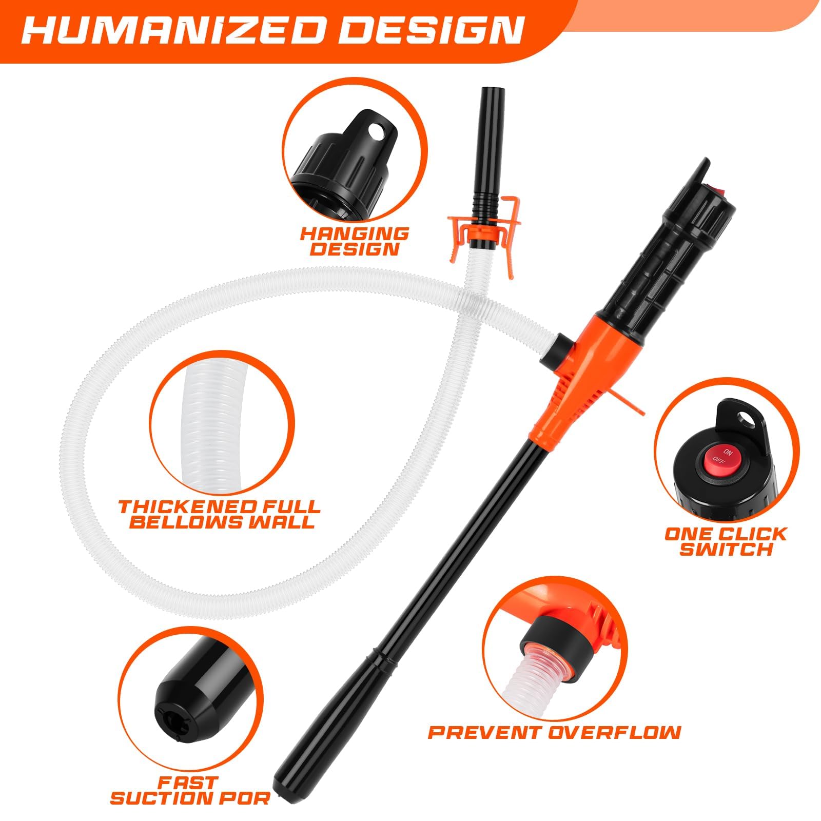 【Portable Electric Pump】:This transfer pump With a battery-powered design, this gas siphon pump is perfect for on-the-go fuel transfer. Our fuel transfer pump is a great investment for any DIY mechanic or outdoor enthusiast.