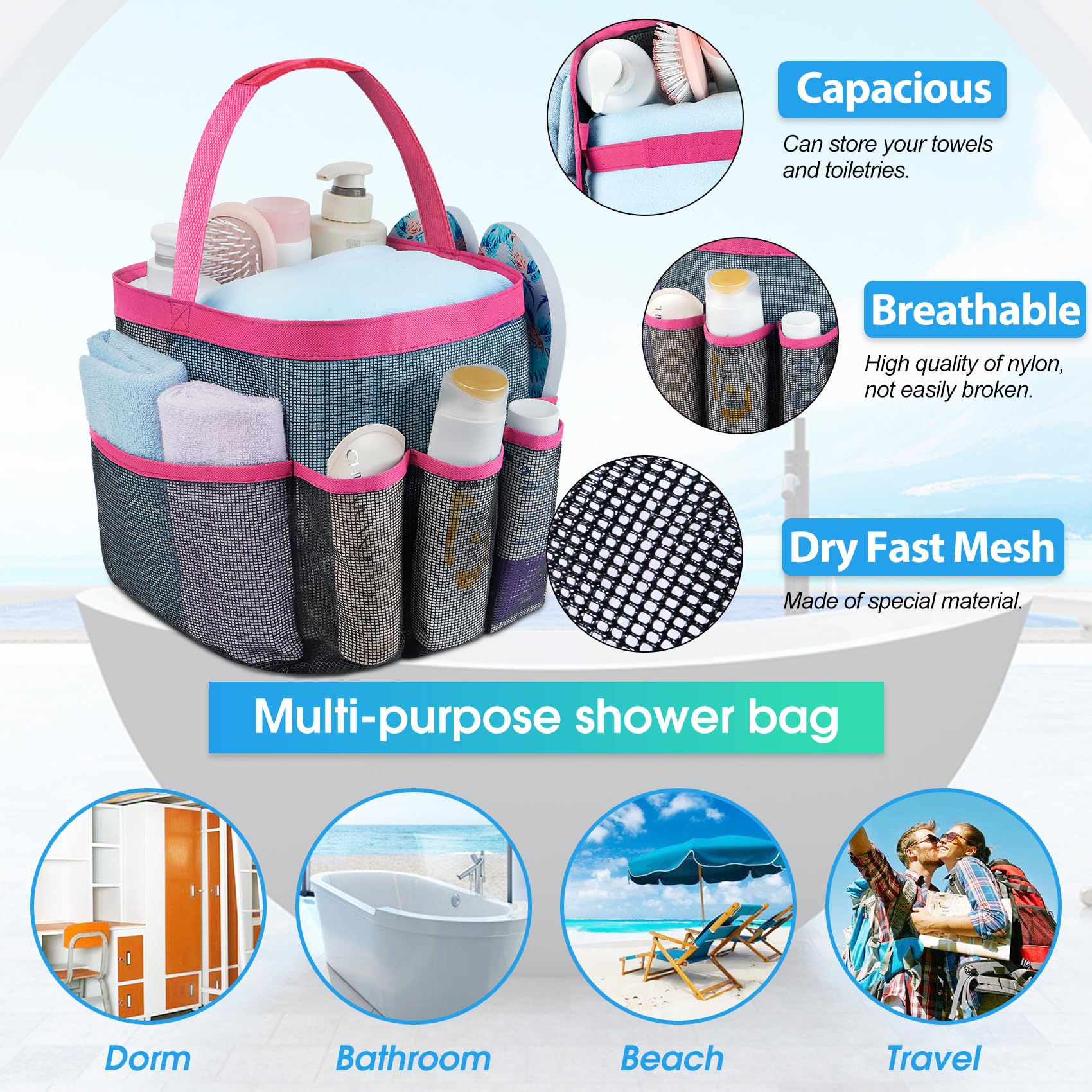 High Quality : The shower caddy portable is made of tough and sturdy mesh, the shower basket can holds many toiletries and doesn't tear, and the mesh at the bottom allows for quick water filtration and may keep the pocket upright