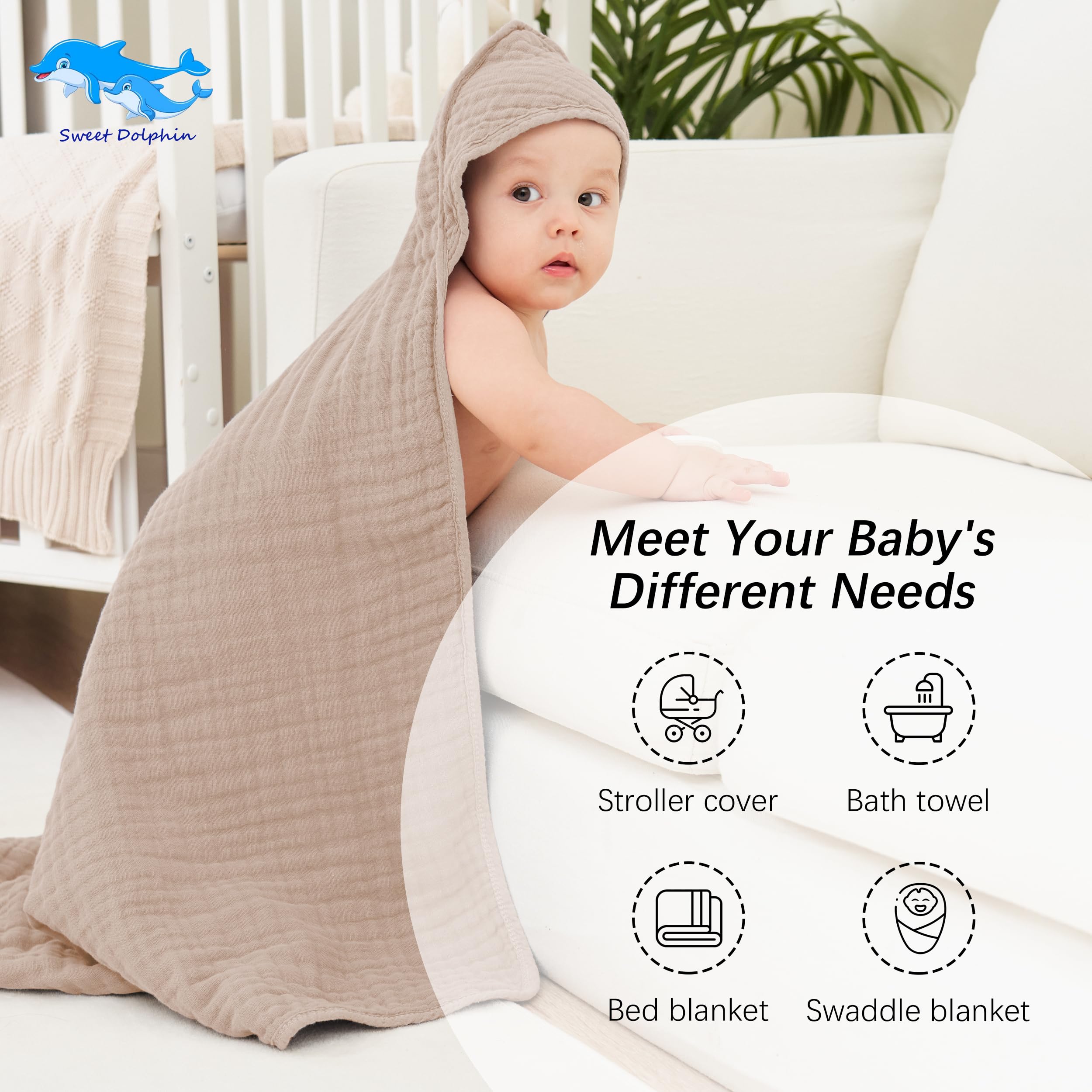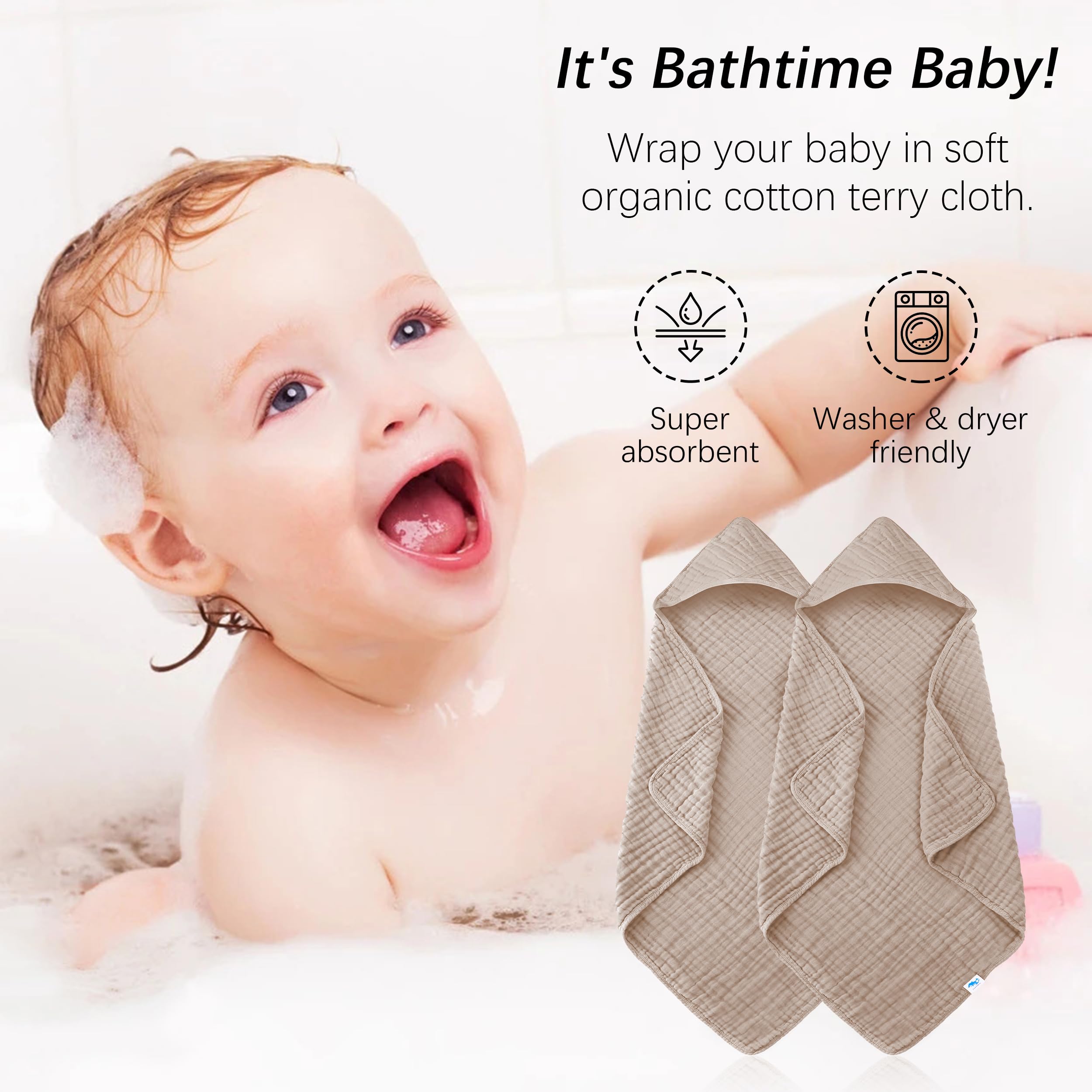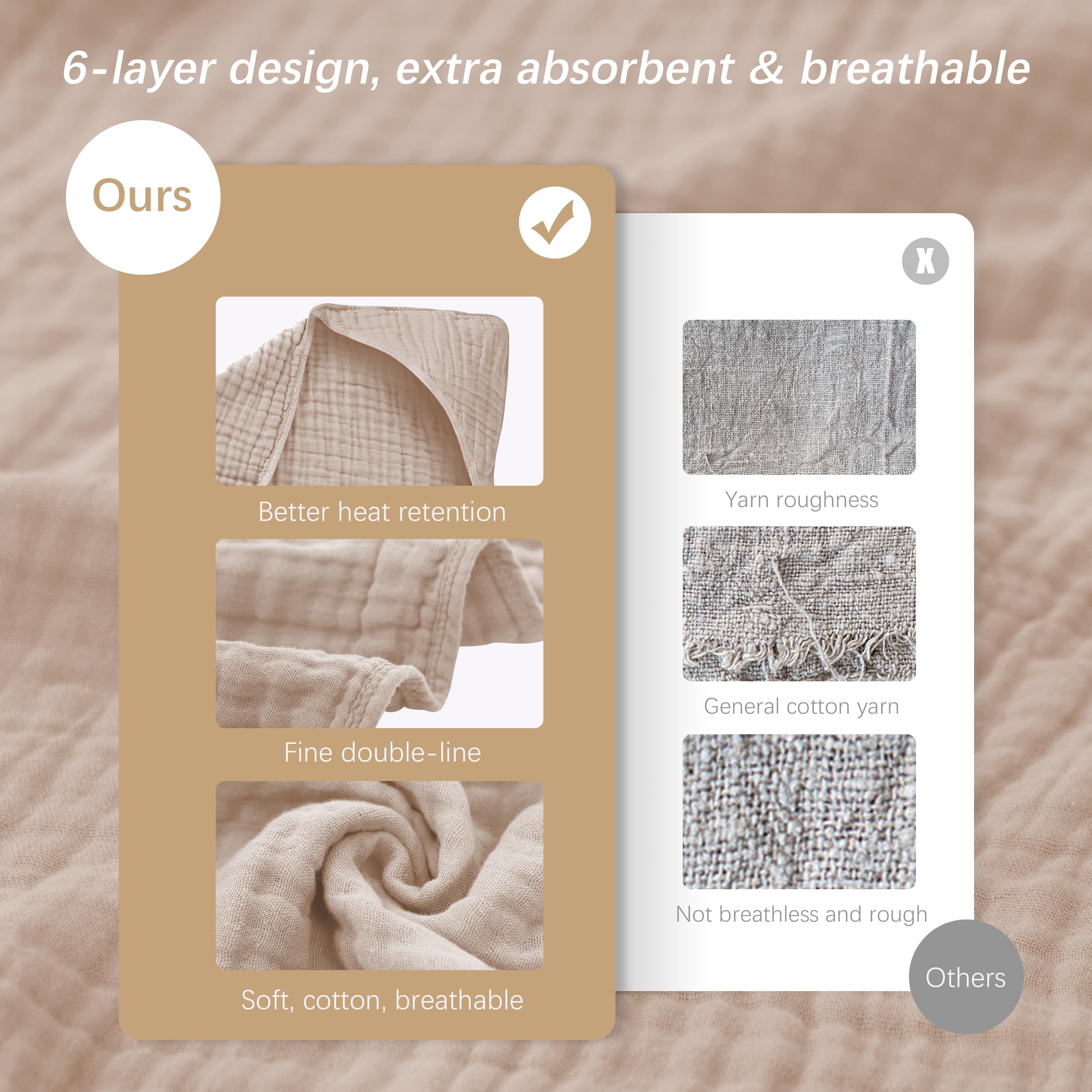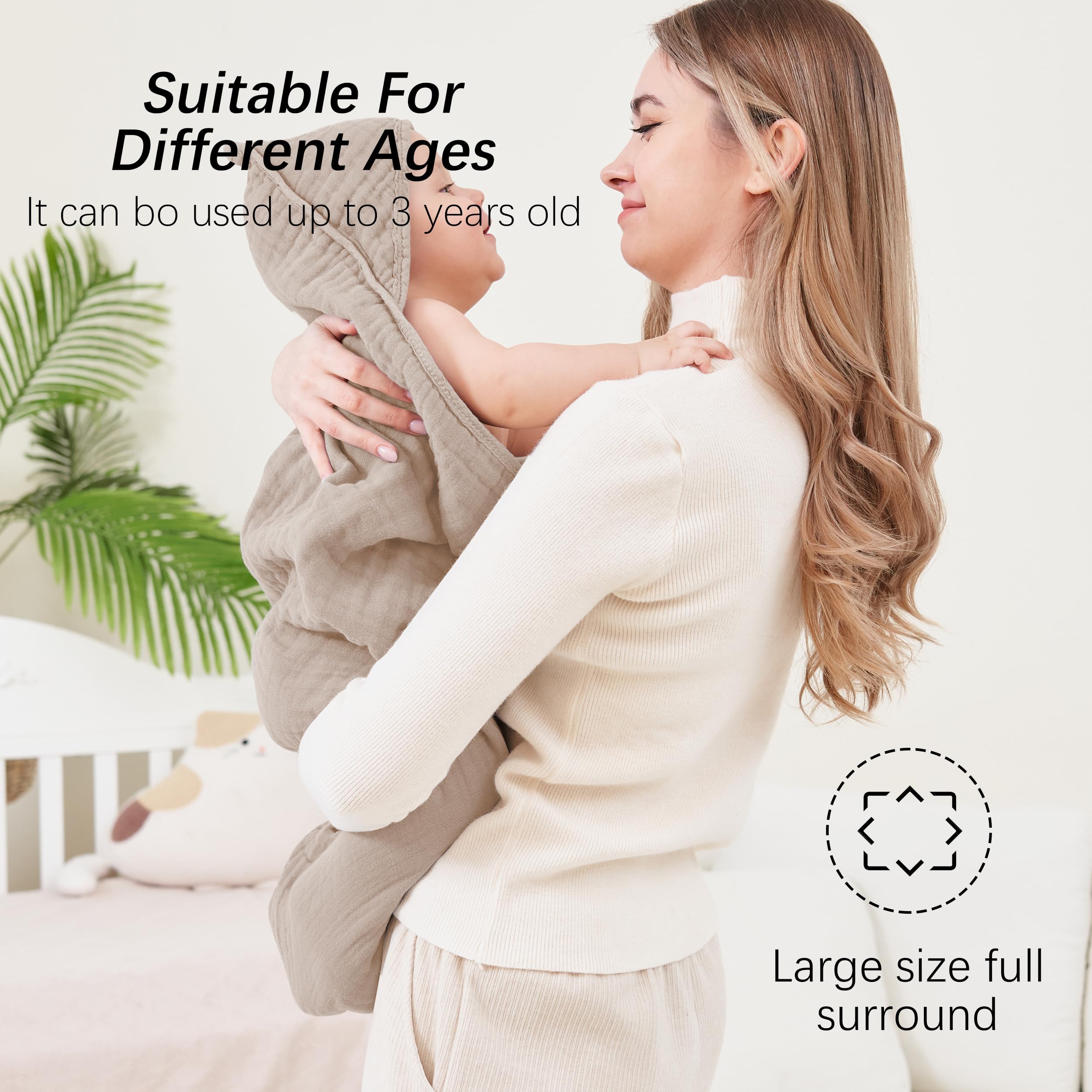 Exceptional Durability: Designed with your little one's needs in mind, our hooded baby towels feature a robust 6-layer muslin construction. This ensures they stand up to daily use, offering unparalleled quality and durability. Generously sized at 32 x 32 inches, they're perfect for newborns, infants, toddlers, and children up to 3 years old, ensuring your child remains snug and warm from infancy through their toddler years.