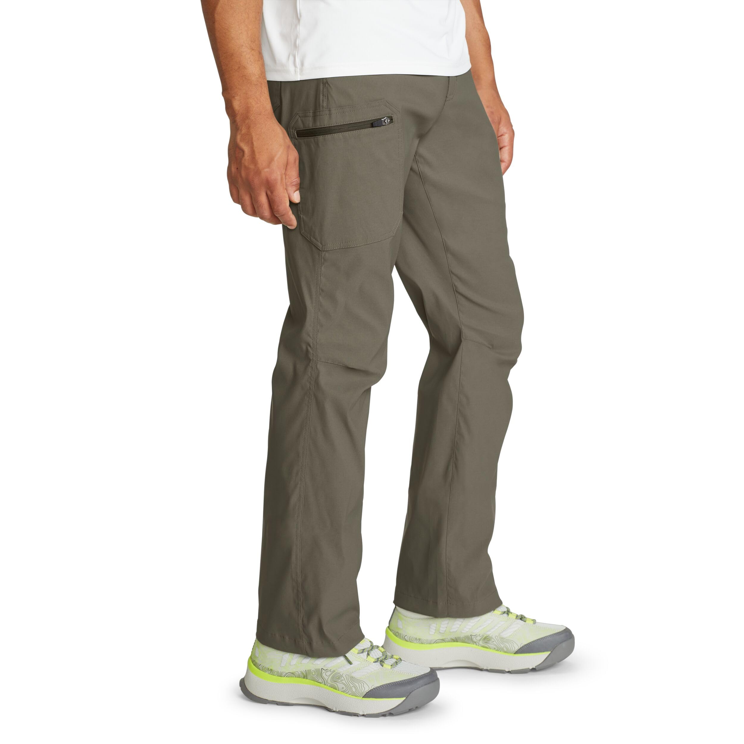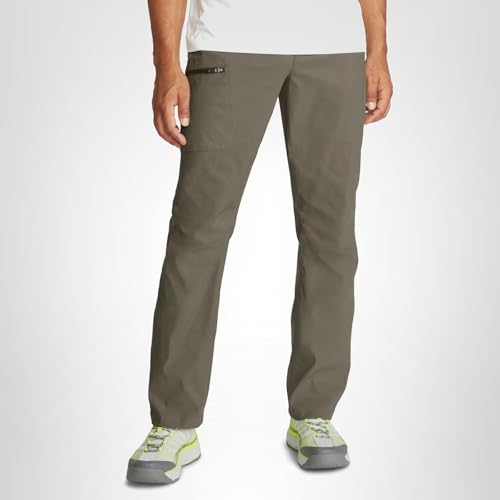 Description Built on a legacy of adventure-driven innovation, Eddie Bauer is committed to a sustainable and inclusive future for all. By utilizing materials and methods that minimize environmental impact, we strive to build an outdoor culture that is open, welcoming, and accessible to every explorer. This mission drives us to create high-performance apparel that respects the planet while empowering you to discover the great outdoors with confidence and purpose. Experience professional-grade performance with guide-tested ripstop fabric engineered for everything from alpine scrambling to backcountry climbing. This lightweight, bluesign® certified nylon-spandex blend features Flexion two-way stretch technology and articulated knees, ensuring exceptional mobility while taking anything you dish out on the trail. To keep you protected, these pants include a StormRepel® DWR finish to shed moisture and FreeShade® UPF 50+ sun protection to block harmful UV rays during long days in the sun. Discover a streamlined silhouette designed for high-intensity movement with an Active Fit that sits close to the body without restricting your range of motion. These moisture-wicking, quick-dry pants are equipped with a total of five pockets, including a zippered cargo pocket at the thigh to keep your phone and maps secure. Whether you are navigating a summit or traveling light, these pants pair perfectly with technical hiking boots or a performance sun hoodie, providing a secure, athletic profile for any adventure.