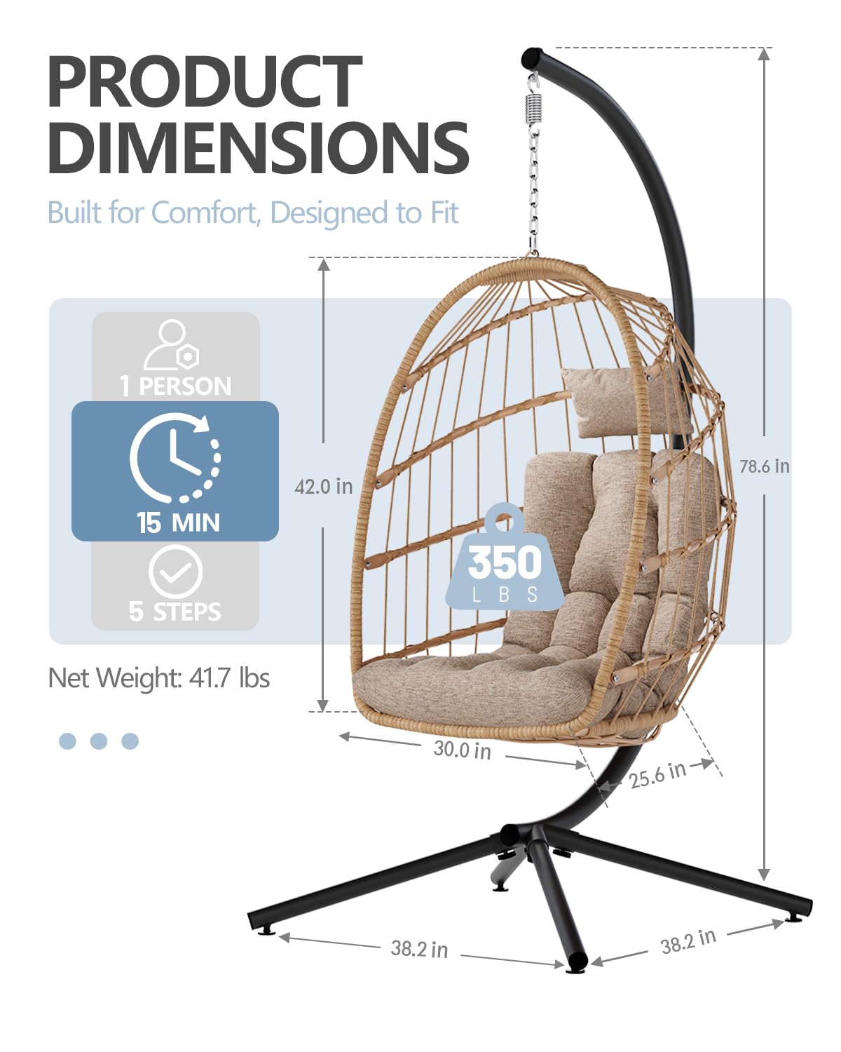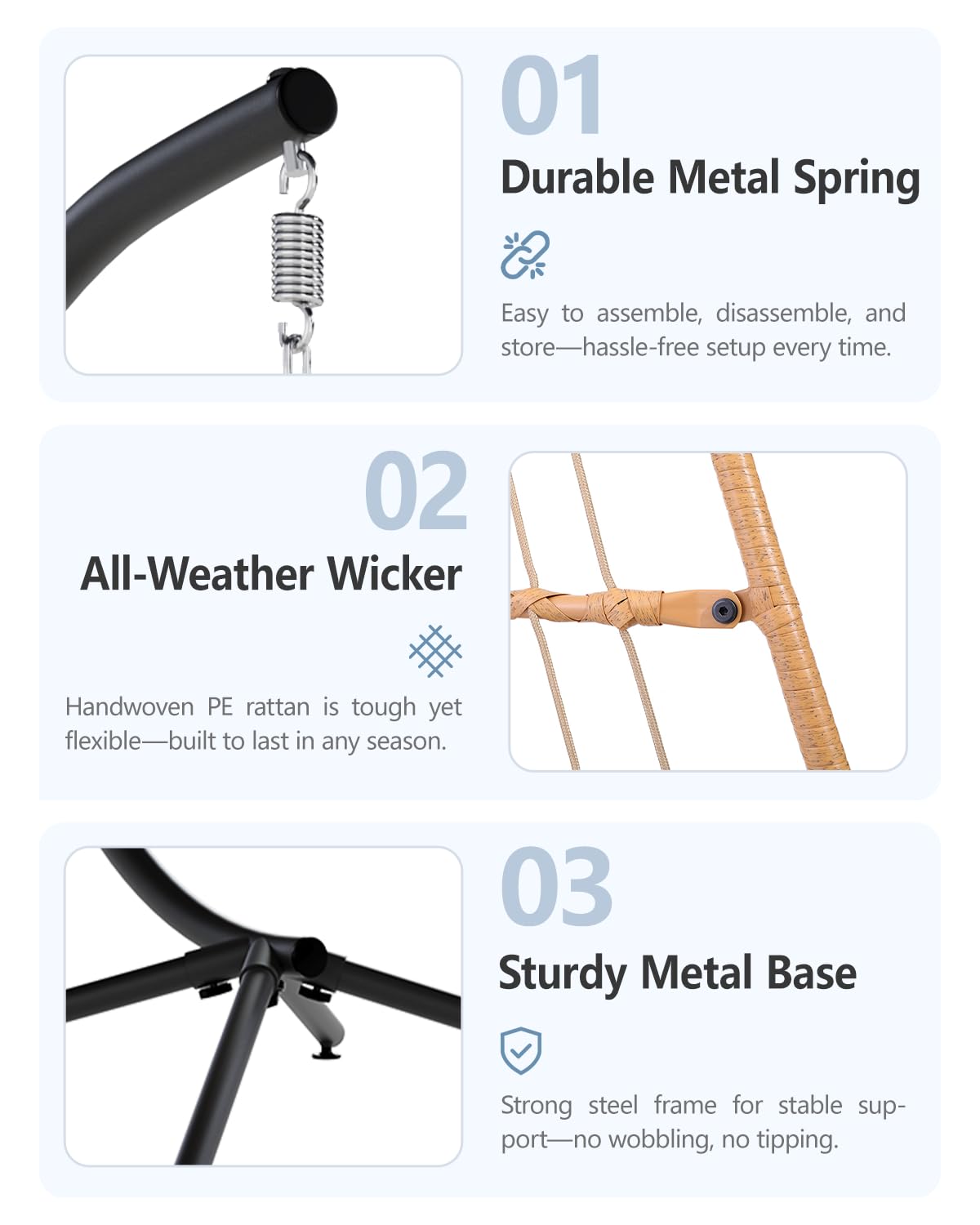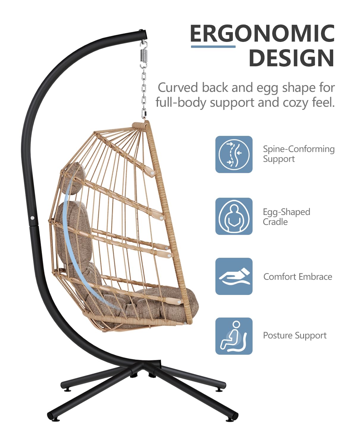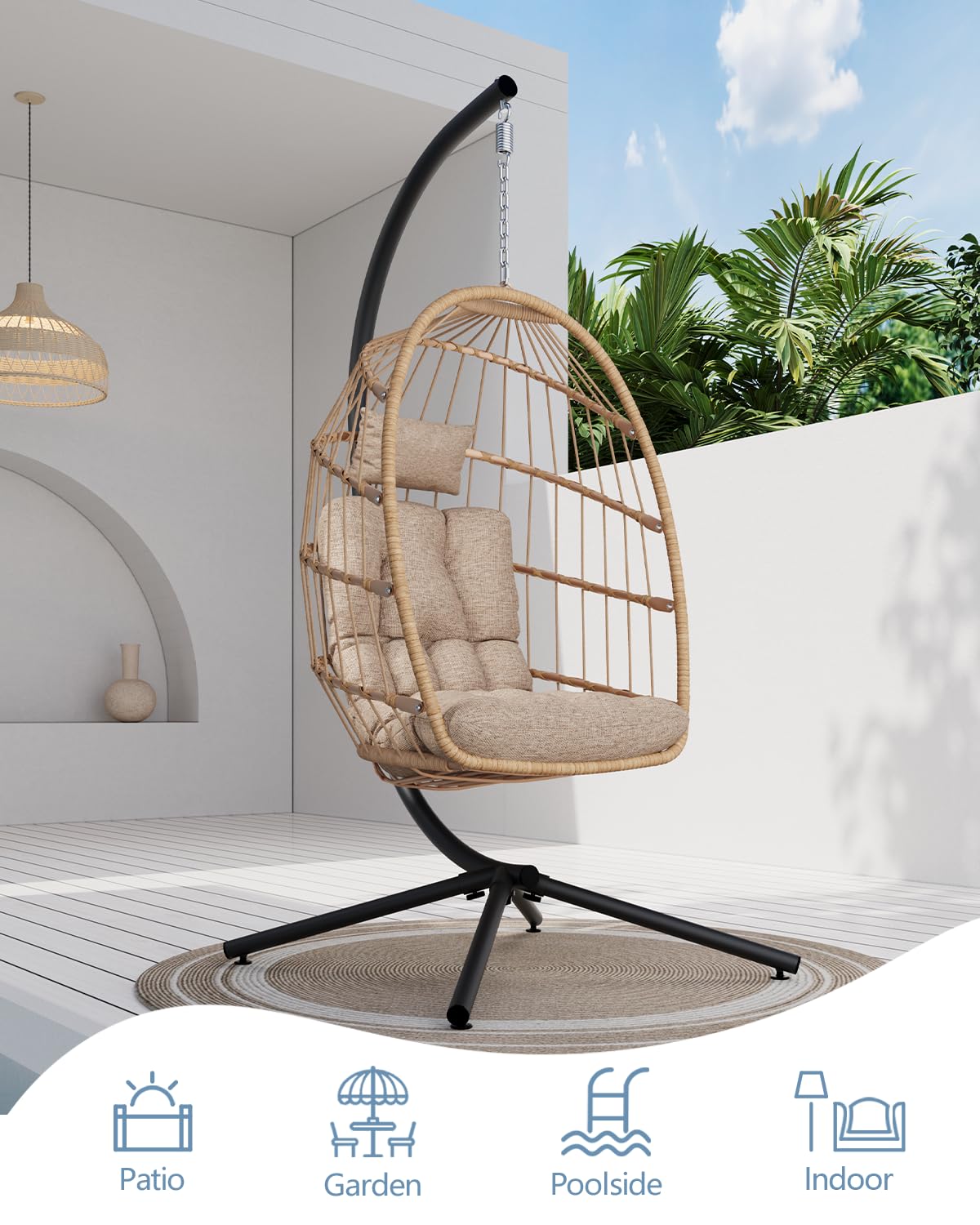 Heavy-Duty & Rust-Resistant Build: Made with a powder-coated steel frame and hand-woven all-weather wicker, our hanging egg chair supports 350 lbs and resists rust, fading, and wear better than most outdoor egg chairs