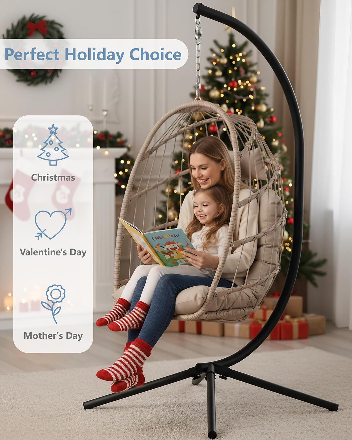 Stable & Well-Balanced Base: Equipped with a wide, anti-tip base and secure suspension system, this egg chair provides reliable support indoors or outdoors