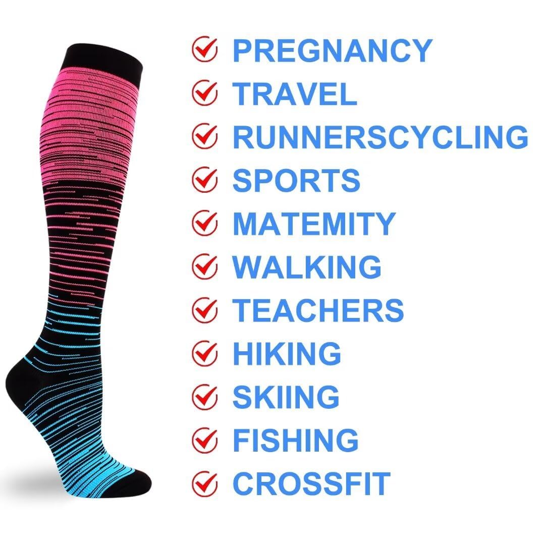 GREAT INVESTMENT FOR YOUR FEET: The compression socks are great to runners, athletes, fitness workouts, hiking, tennis, cycling, office workers, airplane travelers, or anyone on their feet all day