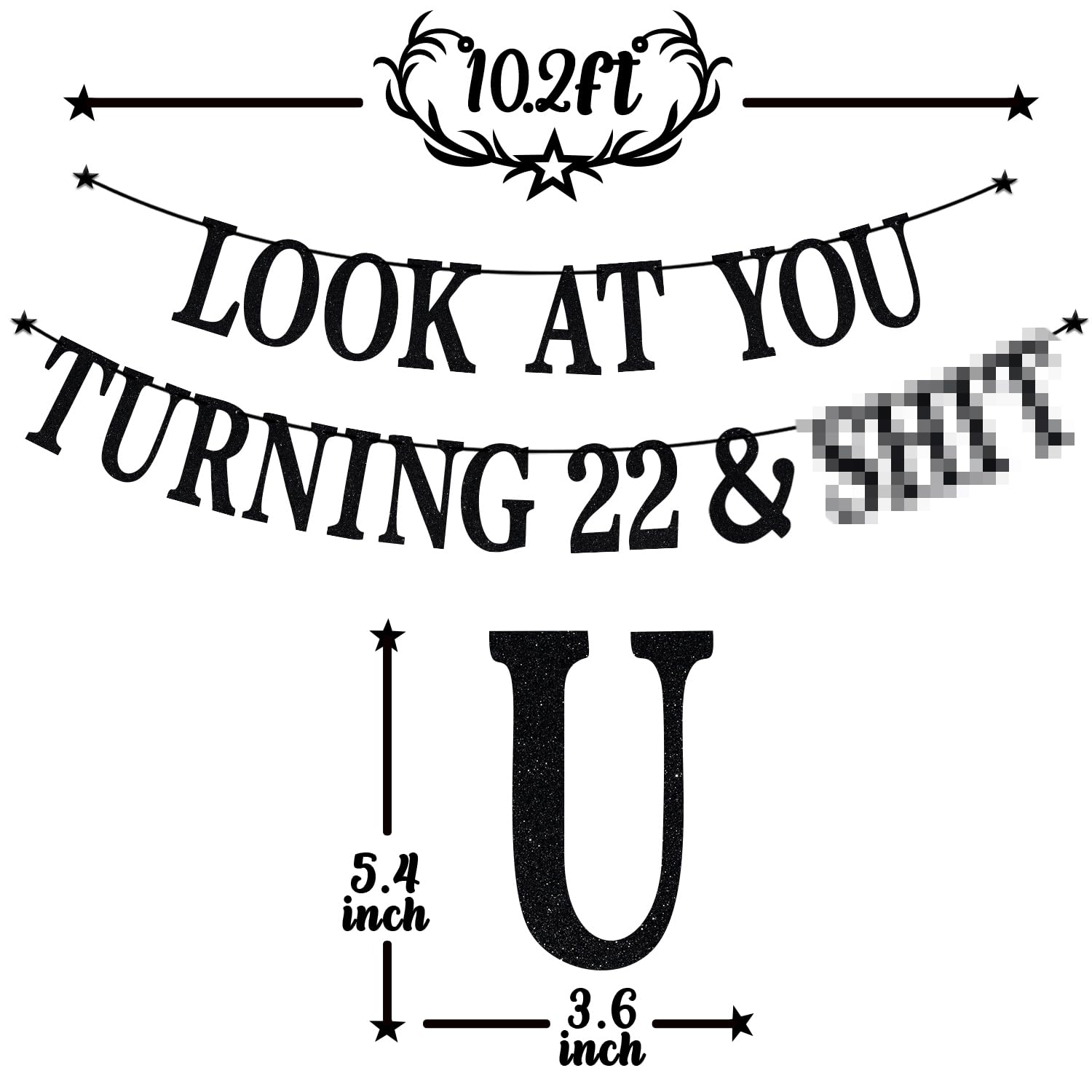 Received included: Letter cards spelling the phrase "Look at You Turning 22 & Sh*t". Awesome decorations: It is very suitable for the 22nd Birthday party. Special party decorations can add an enjoyable and active atmosphere to these scenes, leaving a happy and unforgettable memory. High quality: Banners are made of glitter premium cardpaper. They are rigid and reusable. Easy to DIY: The card and the rope are separate, you only need to spend a little time to assemble. Choose us and believe us: We support the concept of customer first and product first. If the quality or damage occurs during transportation, we will solve it.