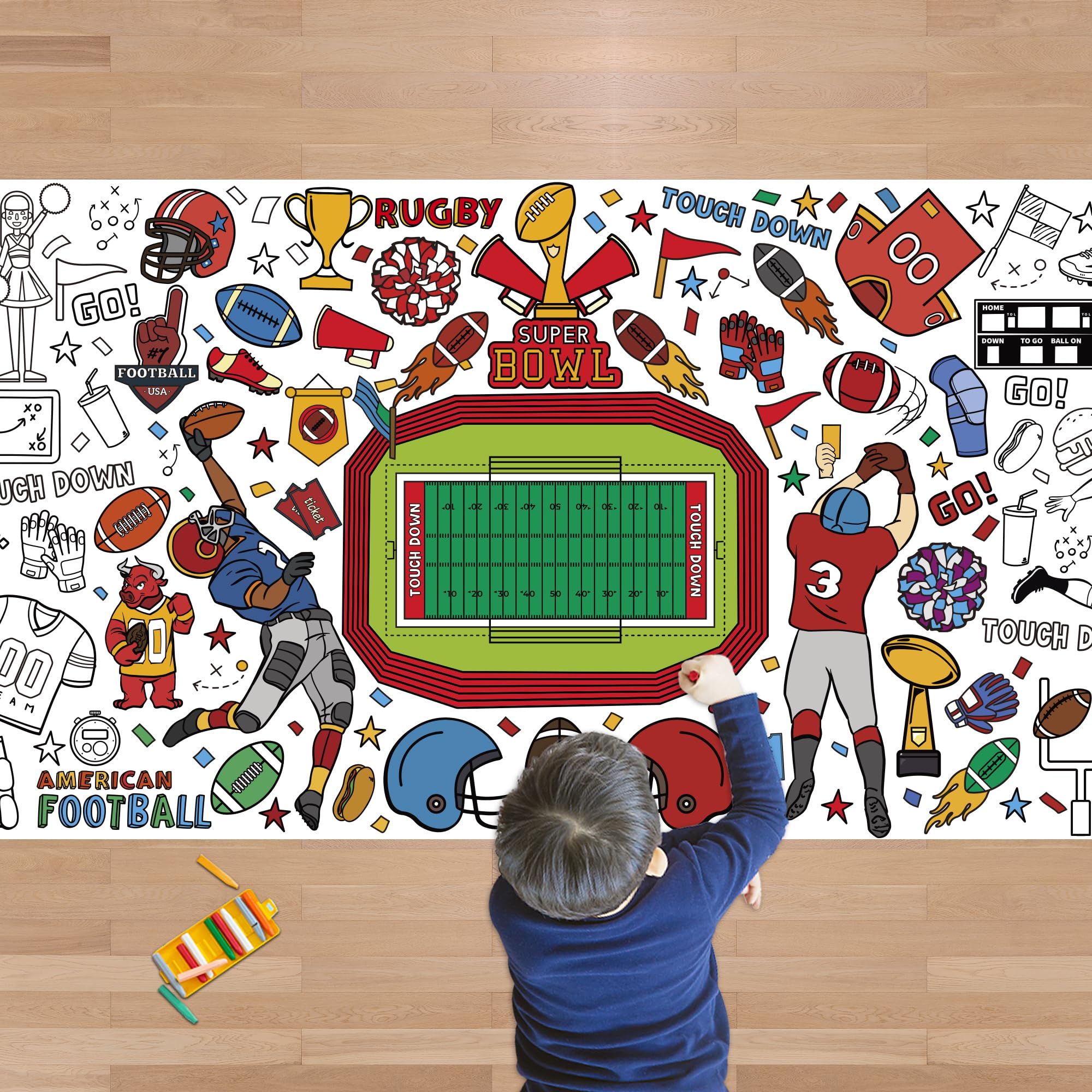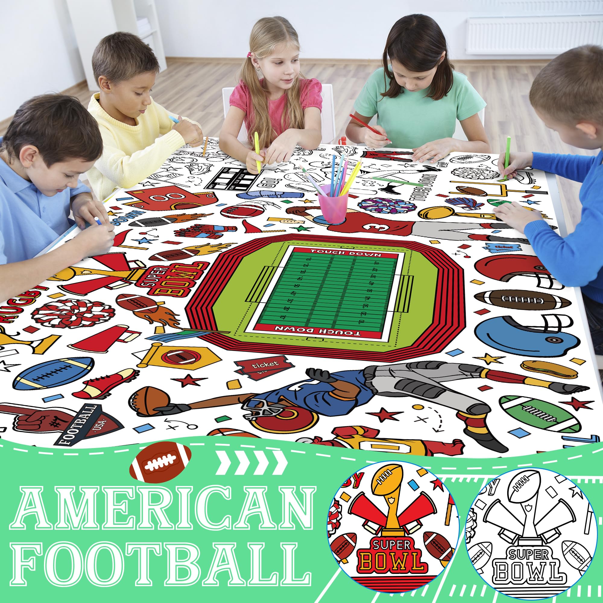 [Beautifully Designed Crafts]:Great Football gifts for kids!Get ready to celebrate Football in the most creative way! This coloring poster/tablecloth is perfect for kids and adults who love to express their artistic side.