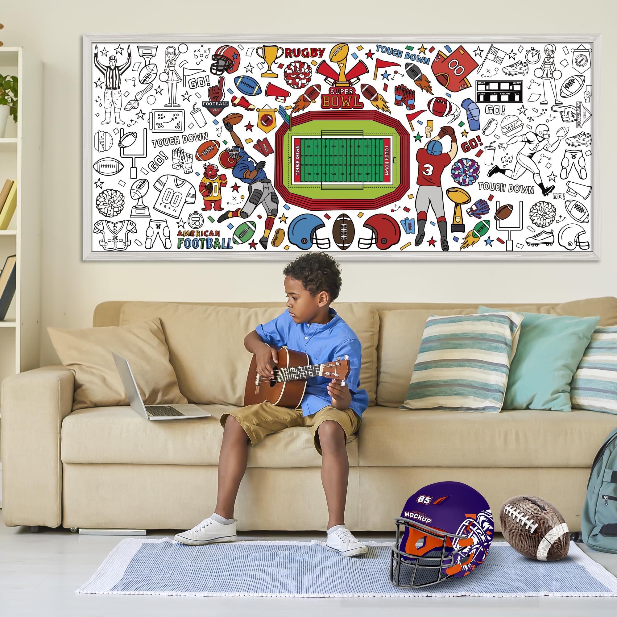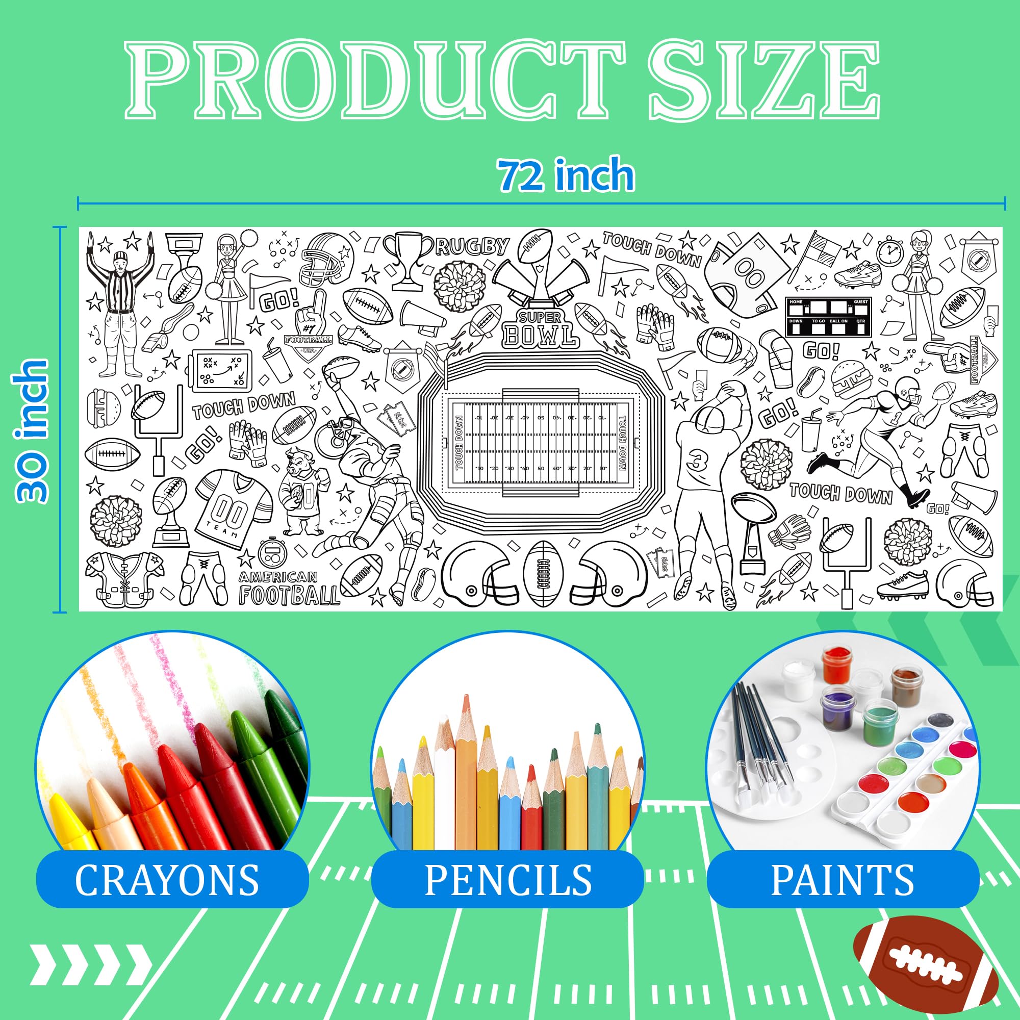 [Giant Coloring Poster]:Football banner.The size of this large coloring poster not only helps create a large arts and crafts area...it also can serve as a tablecloth, keeping your table clean from the kid's messes.Football party decorations 2026.