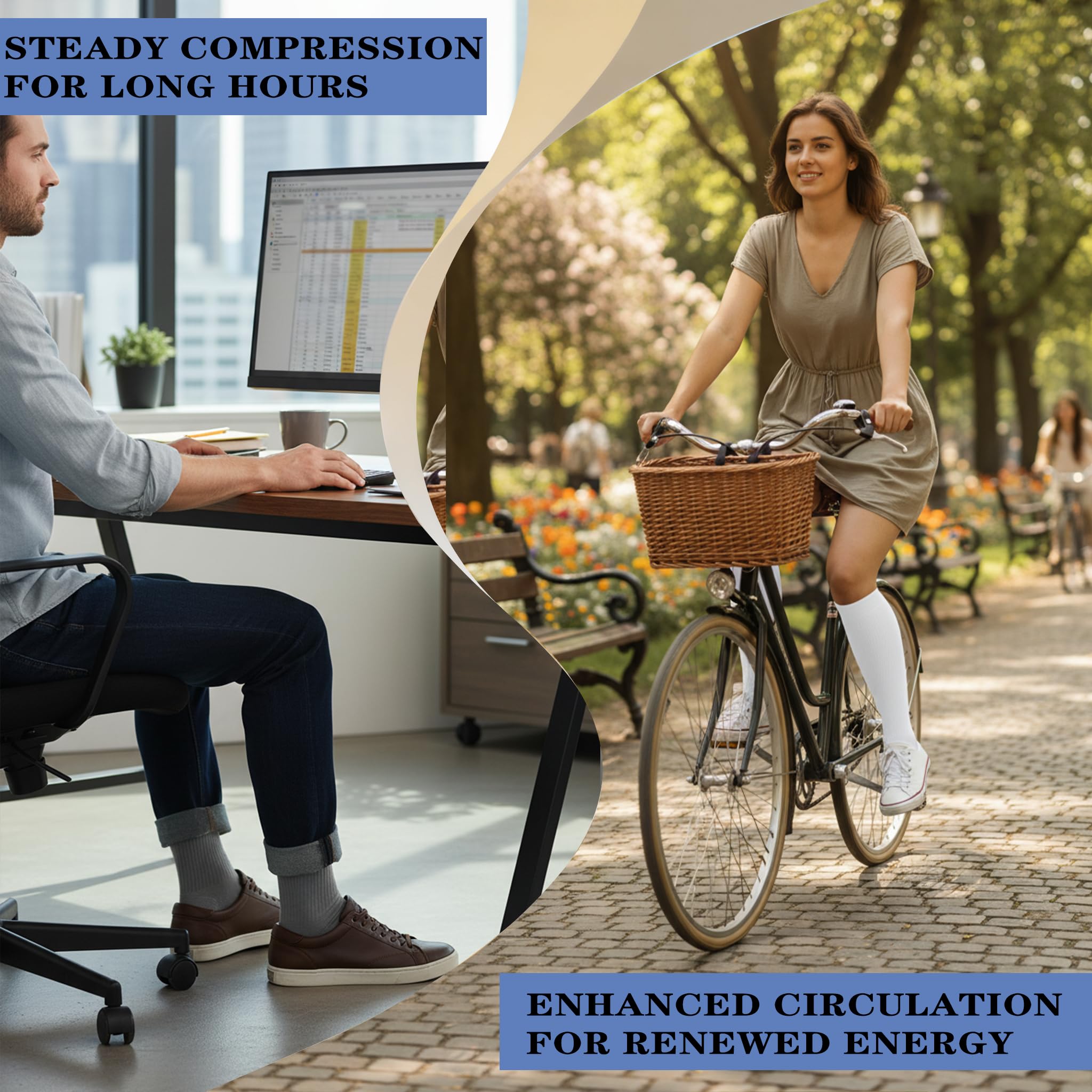 REDUCE INJURIES - Provide mild squeezing for warmness and enhance blood moving through your legs. Remove stress and stimulate every cell, relieves symptoms varicose veins and excess fluid retention. Help relieve pain & discomfort related to plantar fasciitis, Provides true graduated compression to support your legs, reduce fatigue, soreness, cramping and prevent injuries at the same time.