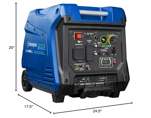 The Westinghouse iGen5000DFcv Dual Fuel Inverter Generator is a premium power solution to meet your portable power needs whether you're camping or on the go. With a TT-30R RV Ready Outlet, two 20A household outlets, and built-in USB ports, this generator is ideal for recreational activities or as an emergency backup source. It's engineered for maximum fuel efficiency with variable engine speed to produce only the power you need at any given time, running up to 18 hours on a 3.4-gallon gas tank. As a dual fuel generator, the iGen5000DFcv operates on gasoline or propane for versatility wherever you are. At less than 3% THD, the iGen5000DFcv is perfect for running sensitive electronics like LCD/plasma televisions, laptops, tablets, or mobile devices that require clean, stable power. It features a lightweight, compact design with wheels and an extendable suitcase-style handle, making this model effortlessly more portable than traditional generators. The LED Data Center has an automatic rotating digital display to keep you up to date for maintenance with real-time information. The iGen5000DFcv features automatic low oil and carbon monoxide (CO) shutdown, voltage regulation, and overload protection, complete with a 3-year limited warranty and Lifetime Technical Support, backed by our nationwide Westinghouse service network.