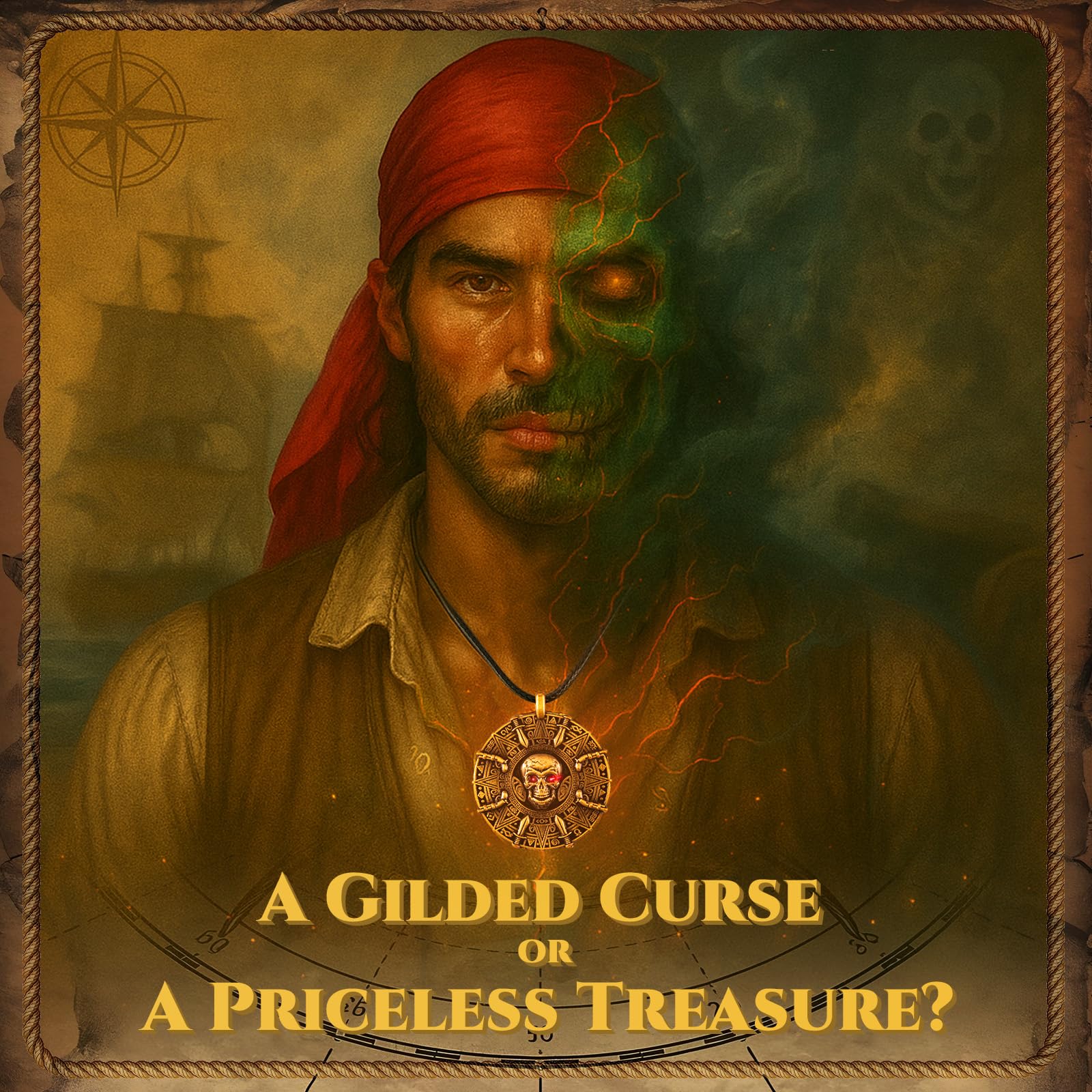 ใ๐ดโ๏ธ๐๐ฒ๐ฎ๐๐๐ฟ๐ถ๐ป๐ด ๐ง๐ต๐ฟ๐ฒ๐ฒ ๐ฃ๐ถ๐ฟ๐ฎ๐๐ฒ-๐๐ป๐๐ฝ๐ถ๐ฟ๐ฒ๐ฑ ๐๐ต๐ฎ๐ฟ๐บ ๐๐ฒ๐๐ถ๐ด๐ป๐ใ The Cursed Skull, a golden relic shrouded in dark legend; the Gun & Sword, symbolizing the steel and fire every pirate lives by; and the Aztec Symbols, etched with ancient whispers of power and mystery.