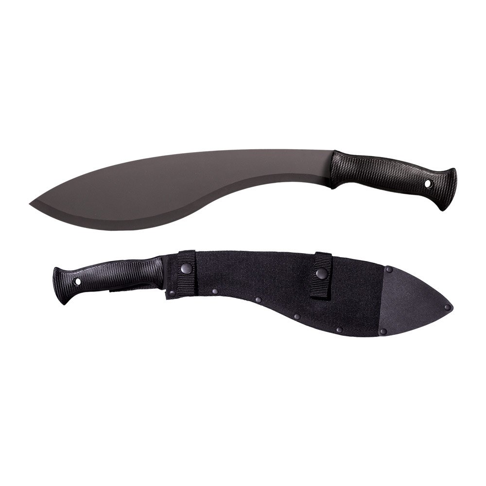 There's no single edged weapon that can out-chop or out-cut a good Kukri. Of course it's true that the best Kukris, like the LTC and Gurkha models, can be somewhat expensive. While those "thoroughbreds" perform extraordinarily well for the money that they cost, it sometimes seems that What's required is a good, inexpensive, "workhorse" model. The Kukri machete is that workhorse. It features the distinctive weight-forward balance of our "top-of-the-line" models, and always presents its edge on an angle so it's guaranteed to "Bite" deep with every stroke. This knife, with its included, sturdy cordura sheath is a solid value-a bargain priced Kukri- ready for long, hard work. Specifications: - weight: 16 oz. - blade thick: 7/64" (2.75mm) - blade length: 13" - handle: 5" long. Polypropylene - overall: 18" - steel: 1055 carbon steel W/black baked on anti rust matte finish - sheath: cordura sheath