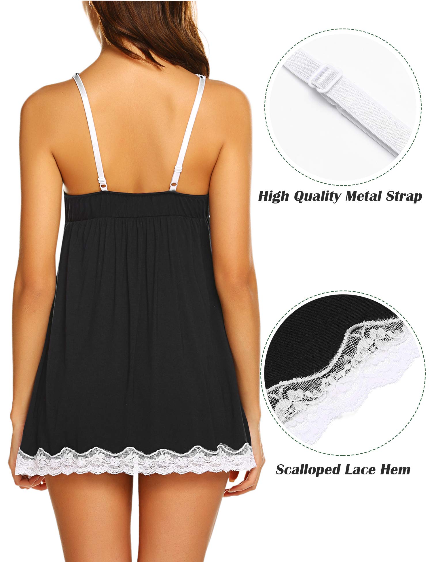 Design: Avidlove lace nightgowns featuring adjustable Spaghetti straps, V-neckline with bow decorate, Lace trims at neckline and hem, A-line silhouette hits at mid-thigh. Chemise sleepwear for women is super comfy and versatile, it can be a slip under your clothes, like coat or sweater, or wear to bed as a nightie, loungewear