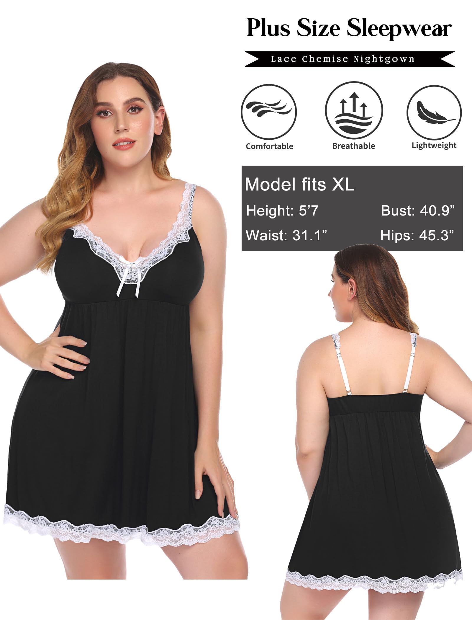 Material: Lace chemise nightgown is made of lace and modal material. Ultra soft, breathable, elastic, very comfortable for wear and also great for supremely comfy loungewear