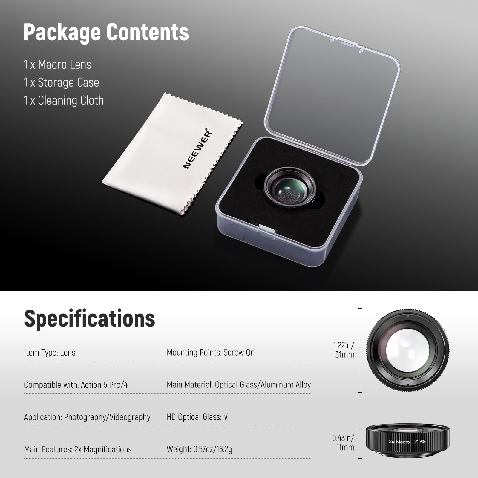 【For Nano/Action 5 Pro/Action 4】 Compatible with DJI Osmo Nano, Action 5 Pro, and Action 4. Also works with NEEWER AC066 Camera Cage for Osmo Nano and other content creator essential photography accessories or influencer must have action camera gear. Note: Remove the Osmo Nano protective case before use